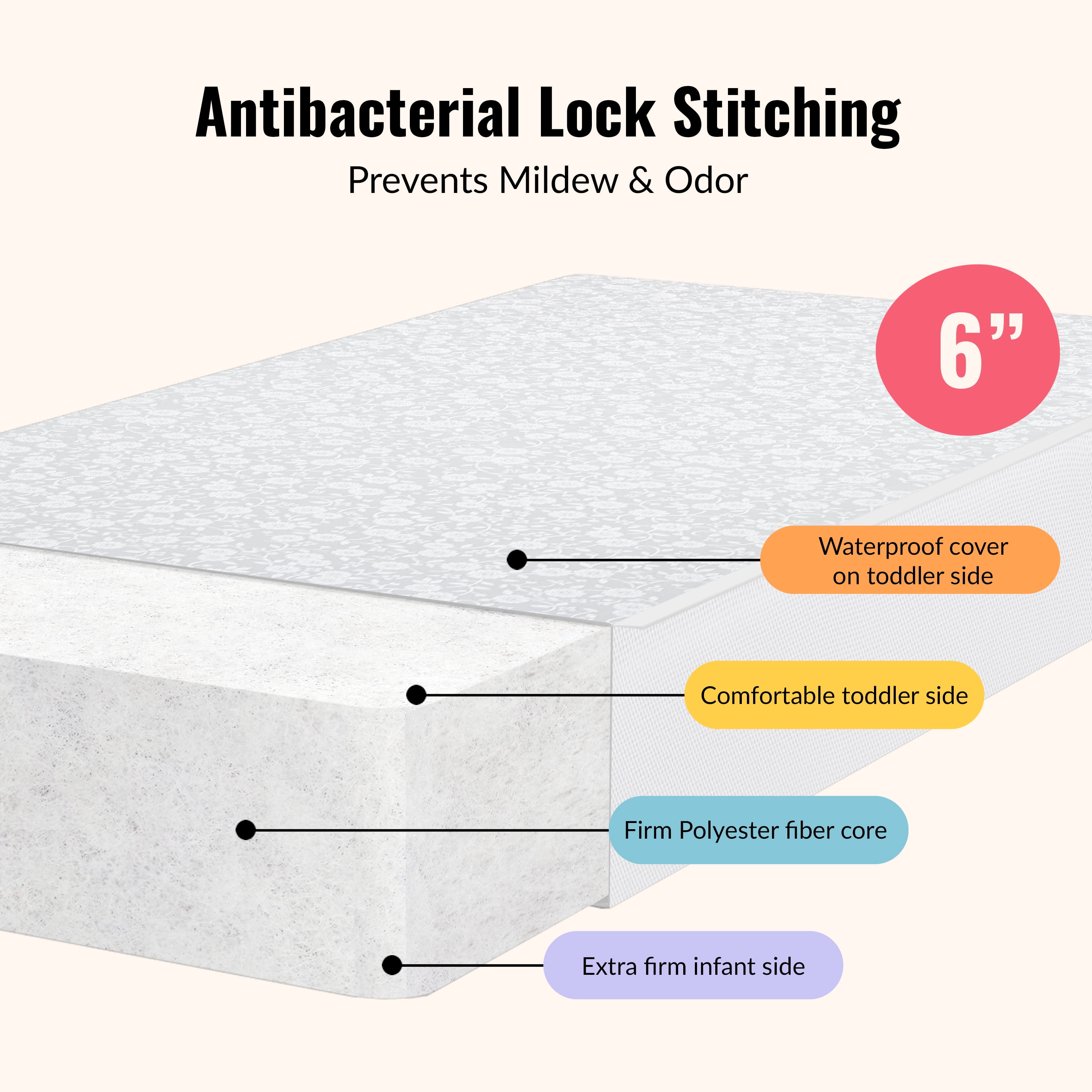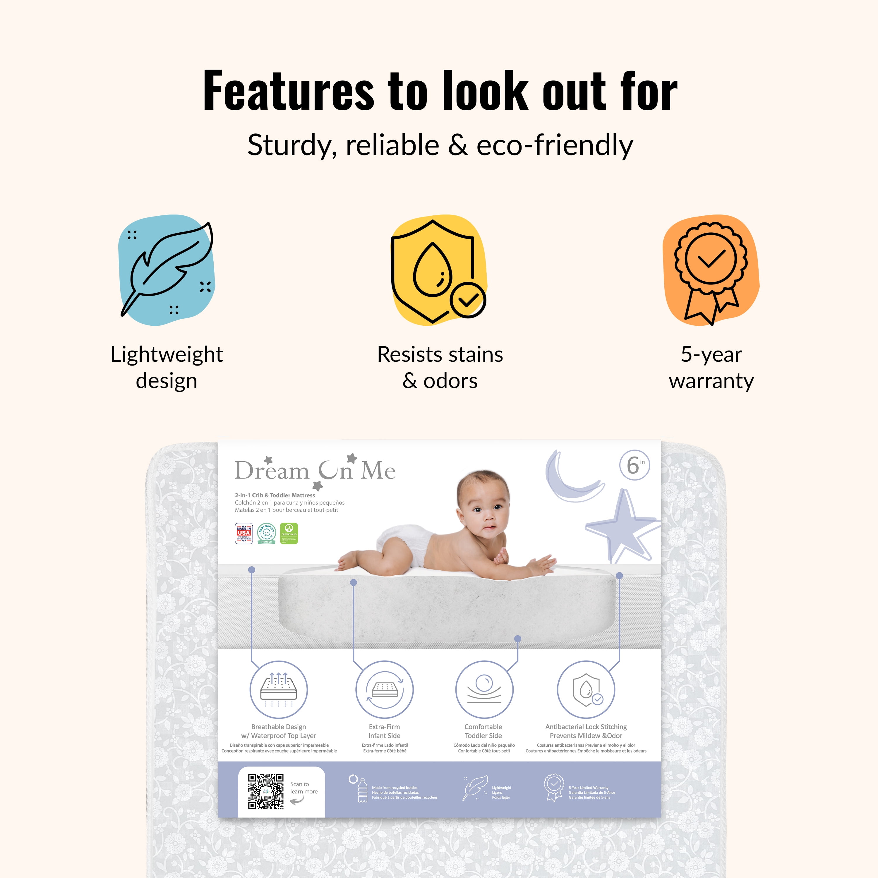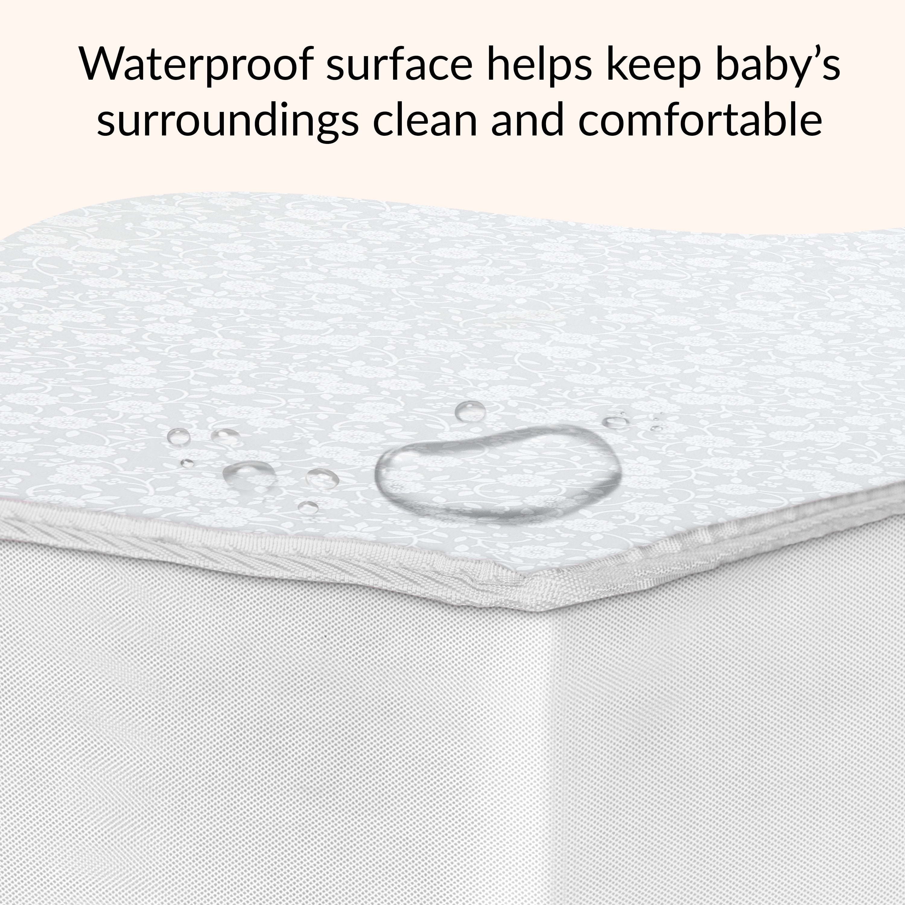 Breathable Mattress cover Promotes airflow Laboratory tested for air/water vapor permeability 2 Hypo-allergenic layers offer cushioned comfort for infants and toddler Reinforced- waterproof cover and binding resist liquids and stains Wipe clean with mild soap and warm water Safety Advice: Please ensure Mattress covers or fitted sheets are not too tight or loose over a crib mattress to practice safe sleeping. Passes all Flammability tests (16 CFR 1632 /1633) and also pass phthalate, lead, and toxicity tests GREENGUARD Gold Certified for a healthy indoor environment for your baby JPMA certified to meet or exceed all safety standards set by the CPSC and ASTM Reversible design allows mothers to choose the Breathable white side of the printed side.