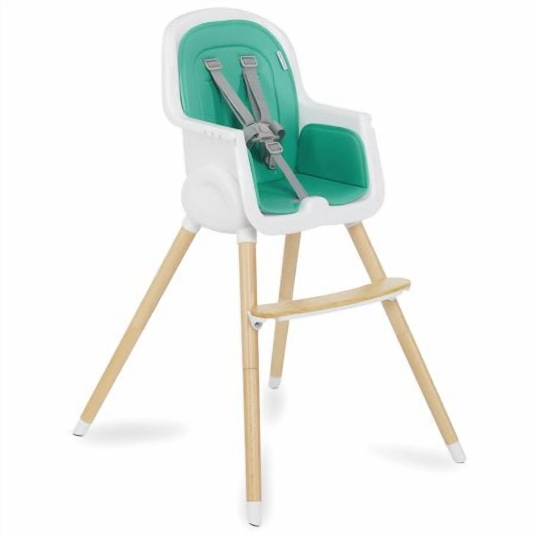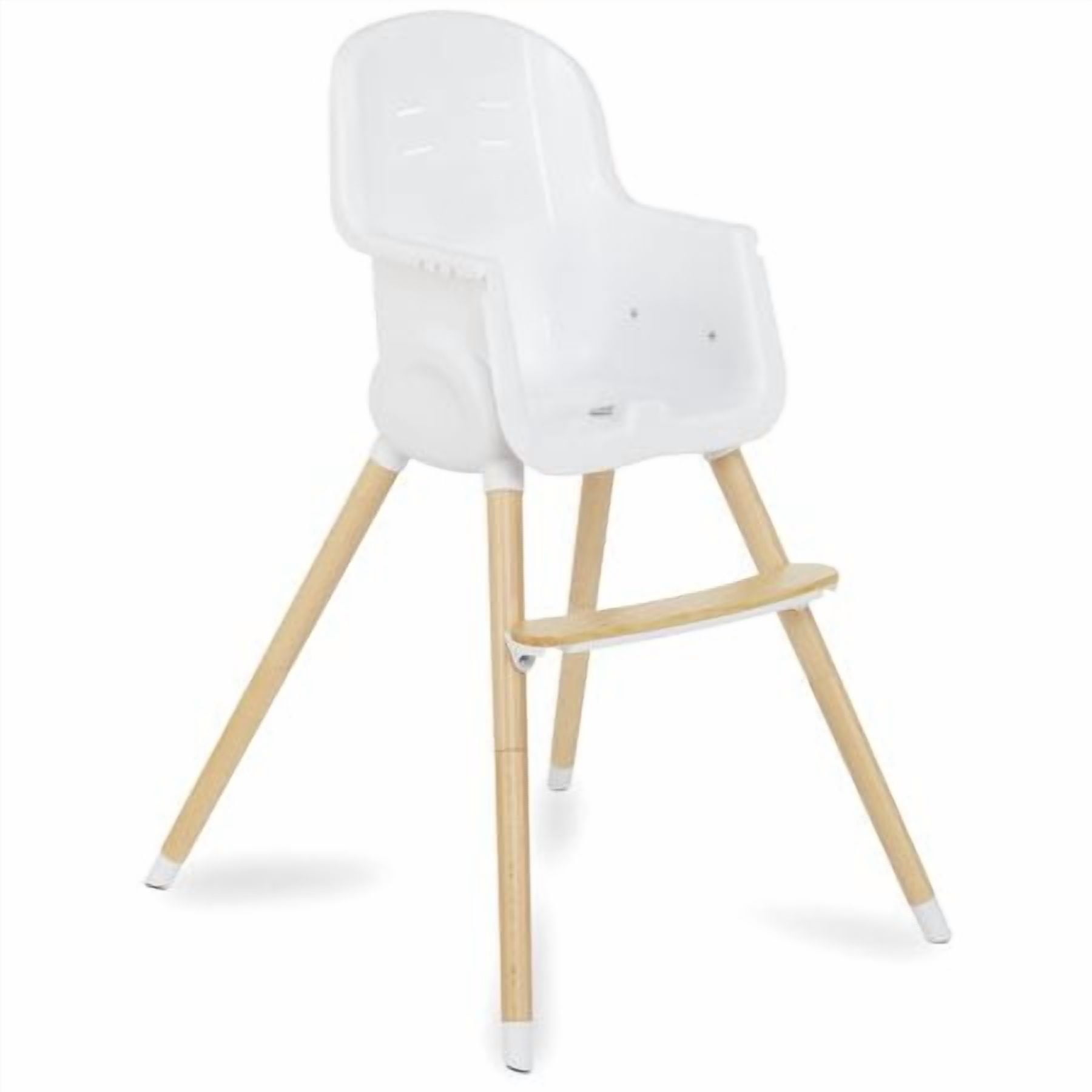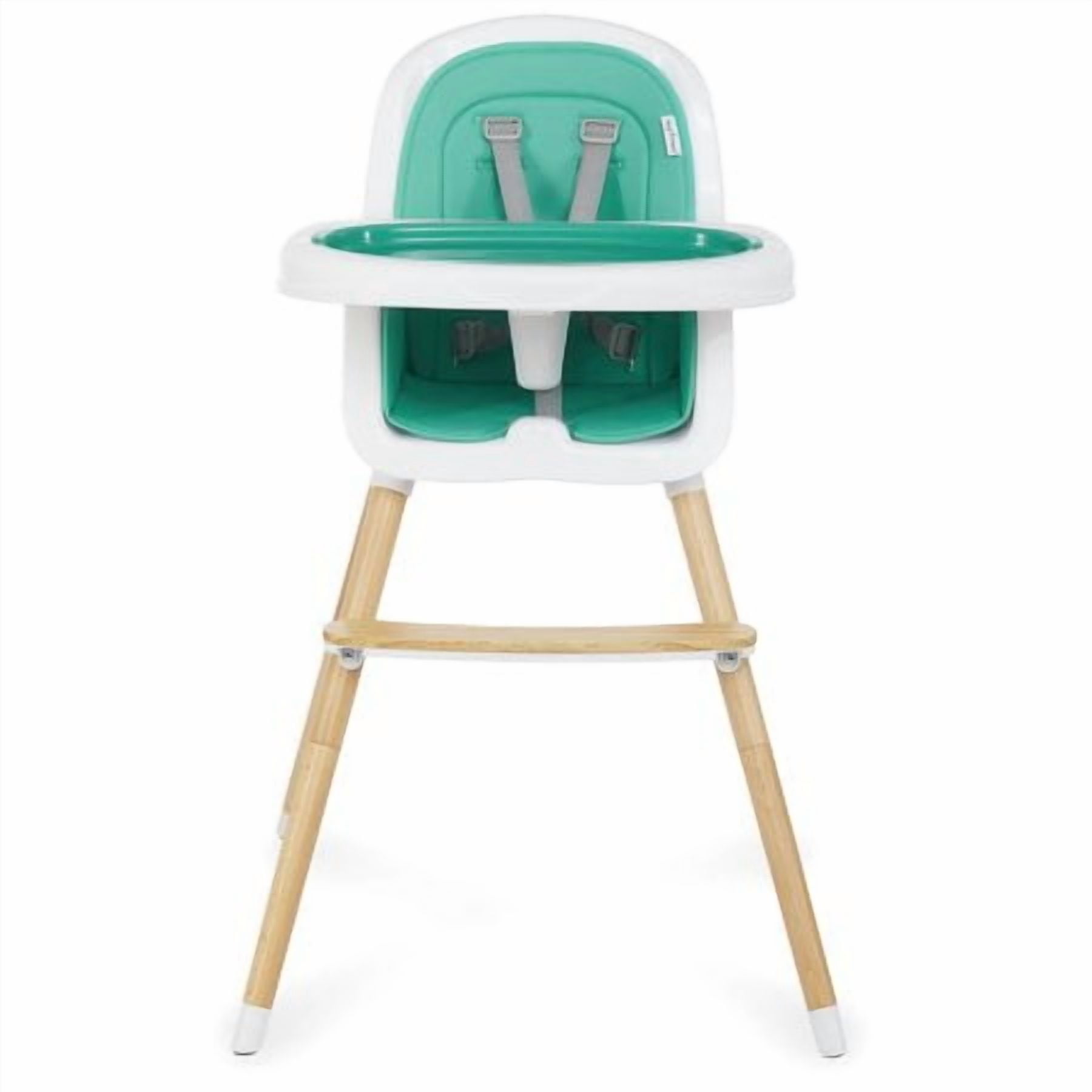 • High Quality wood legs with non-skid feet. • Easily converts in to toddler chair. (Conversion kit included) • PU seat cover can be easily wiped clean. • Tray has 3 positions to support your growing child. • Tray has a removable insert for easy cleaning. It is even dishwasher safe! • Tray can be stored on the back of the highchair. • 5-point safety harness can be raised to support your growing child. • 5-point harness is removable for Junior Chair use. • Lightweight • Age range: 6m+