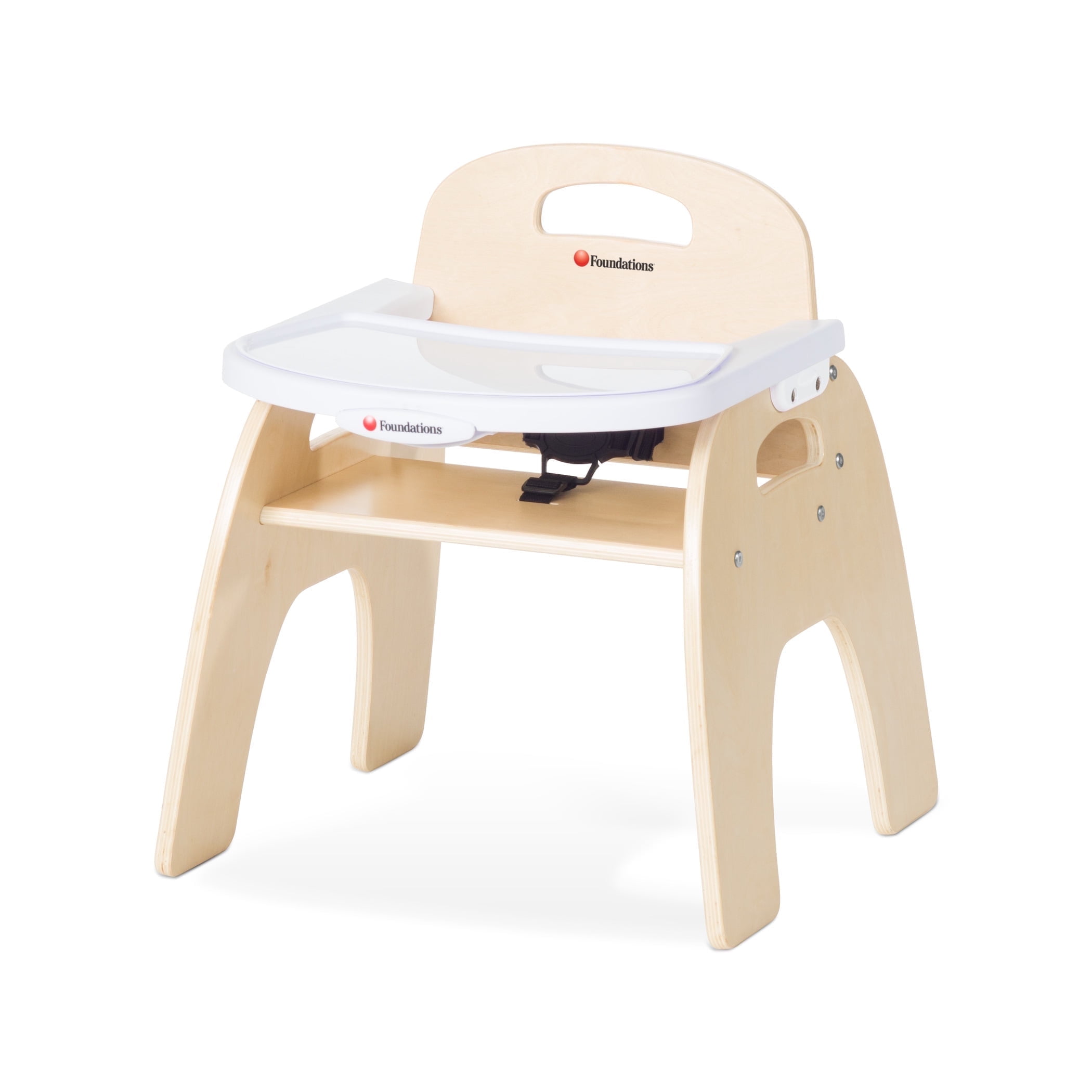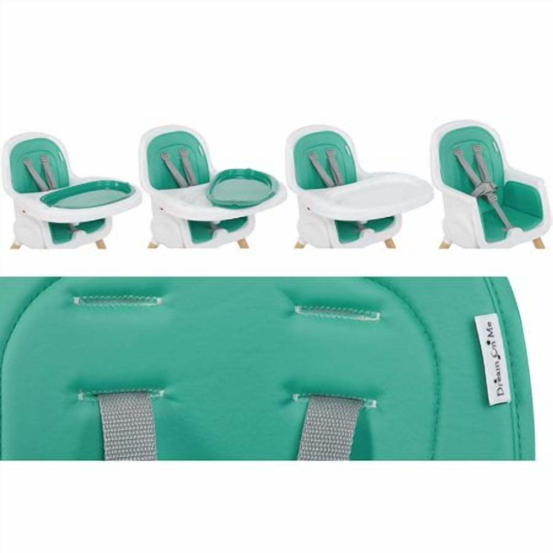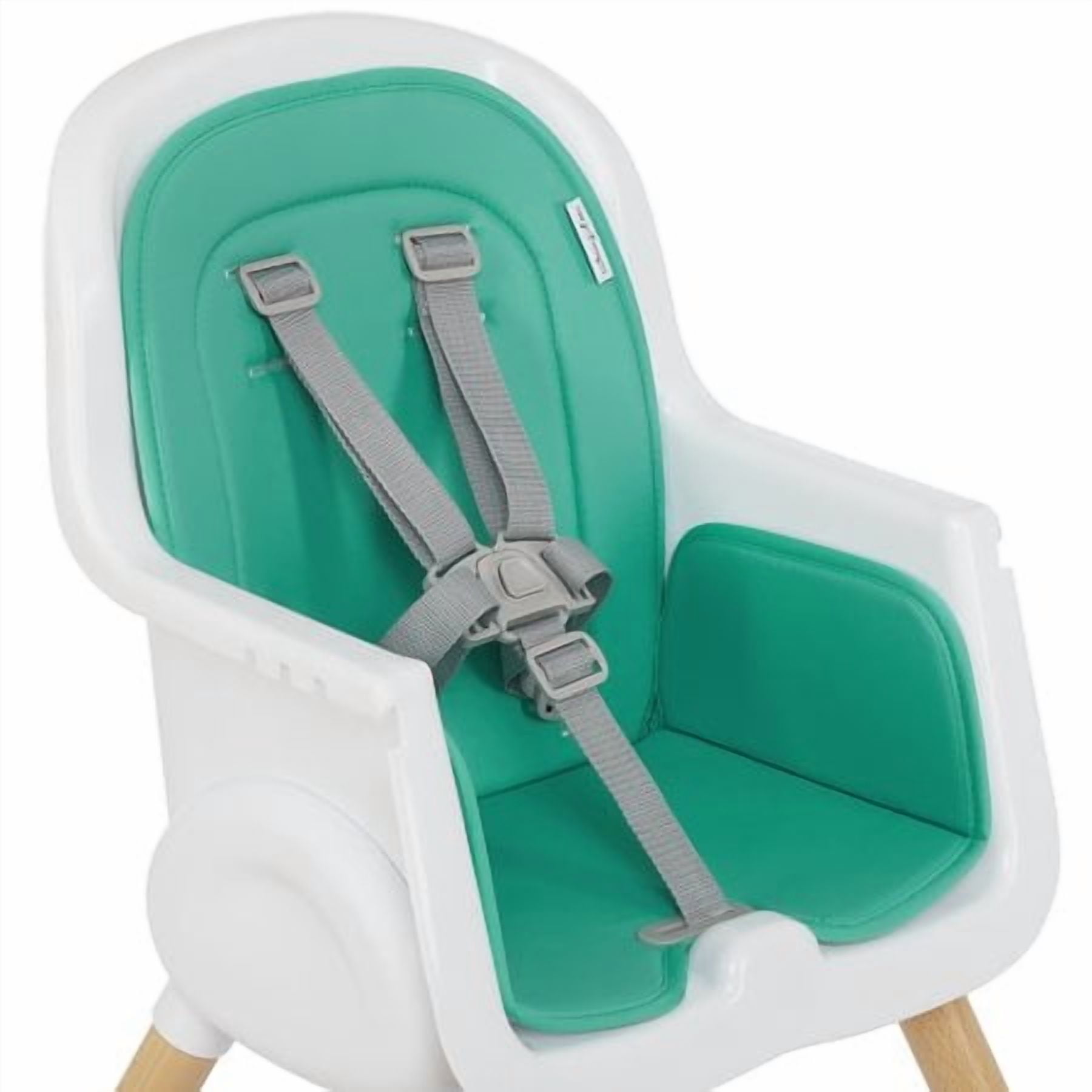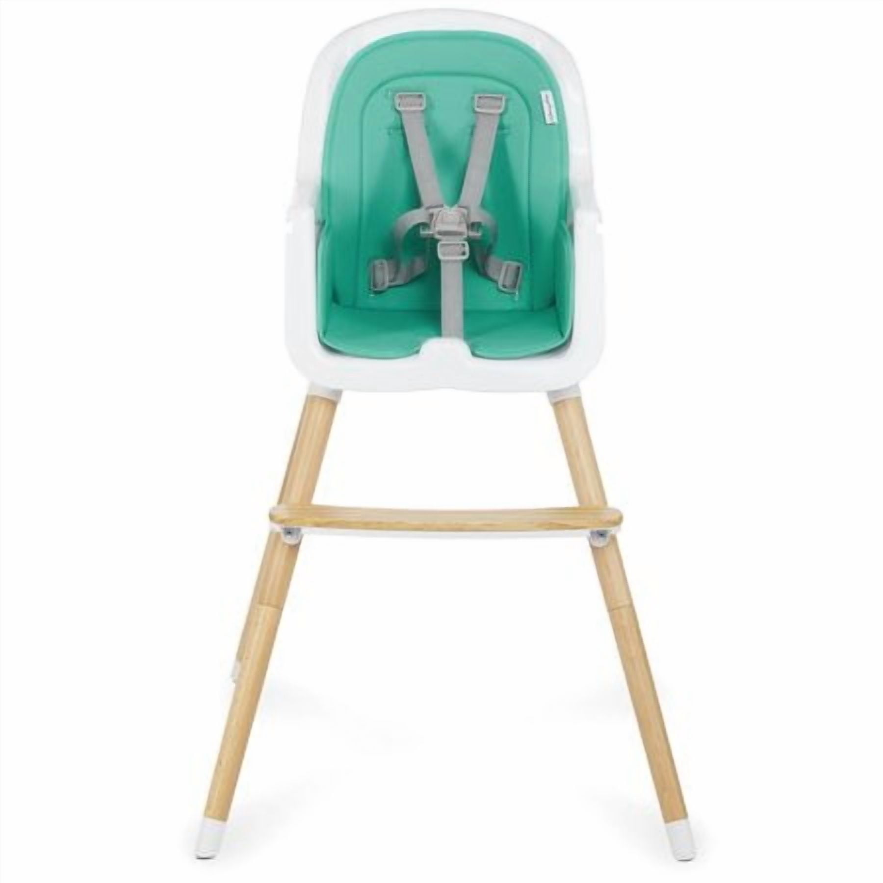 • High Quality wood legs with non-skid feet. • Easily converts in to toddler chair. (Conversion kit included) • PU seat cover can be easily wiped clean. • Tray has 3 positions to support your growing child. • Tray has a removable insert for easy cleaning. It is even dishwasher safe! • Tray can be stored on the back of the highchair. • 5-point safety harness can be raised to support your growing child. • 5-point harness is removable for Junior Chair use. • Lightweight • Age range: 6m+