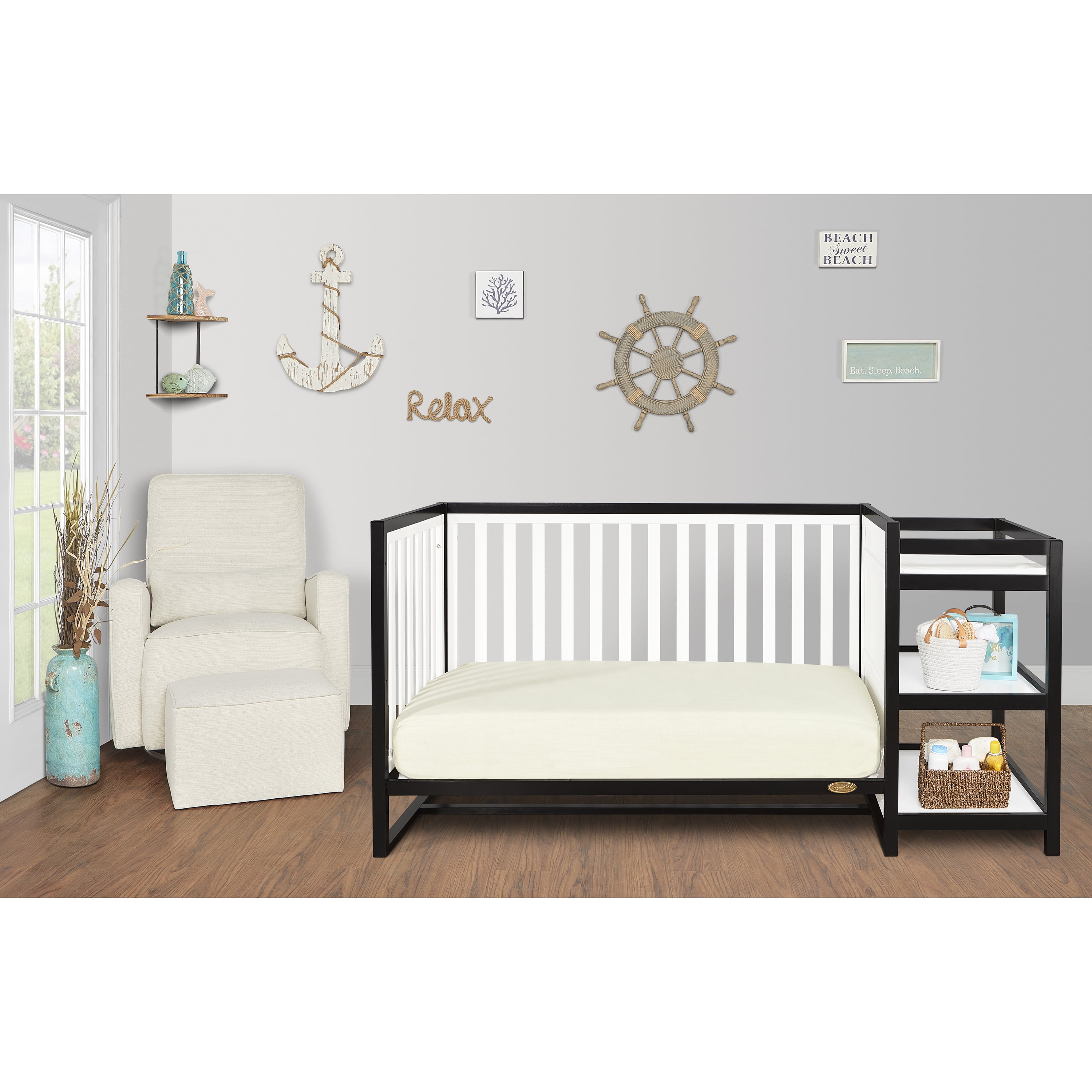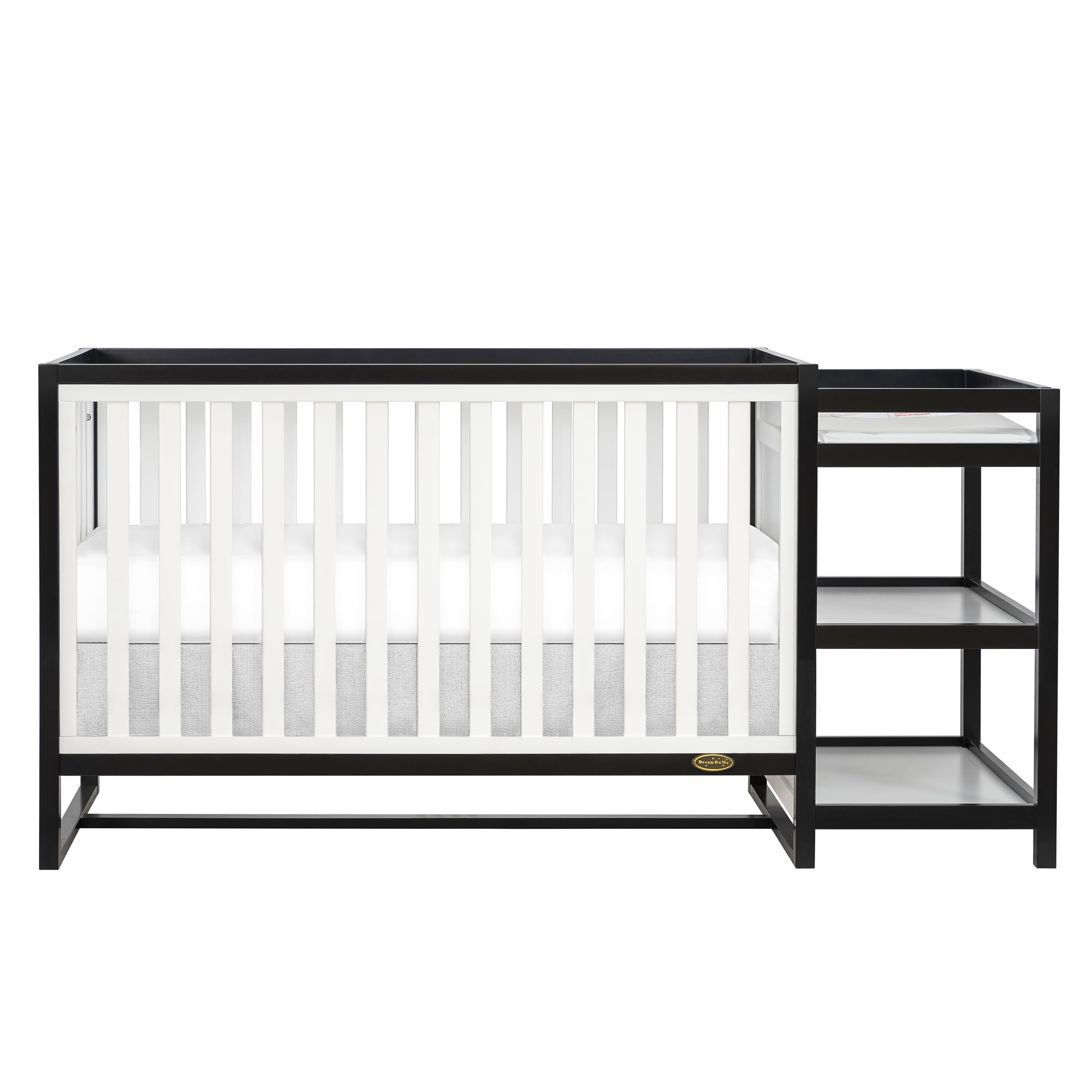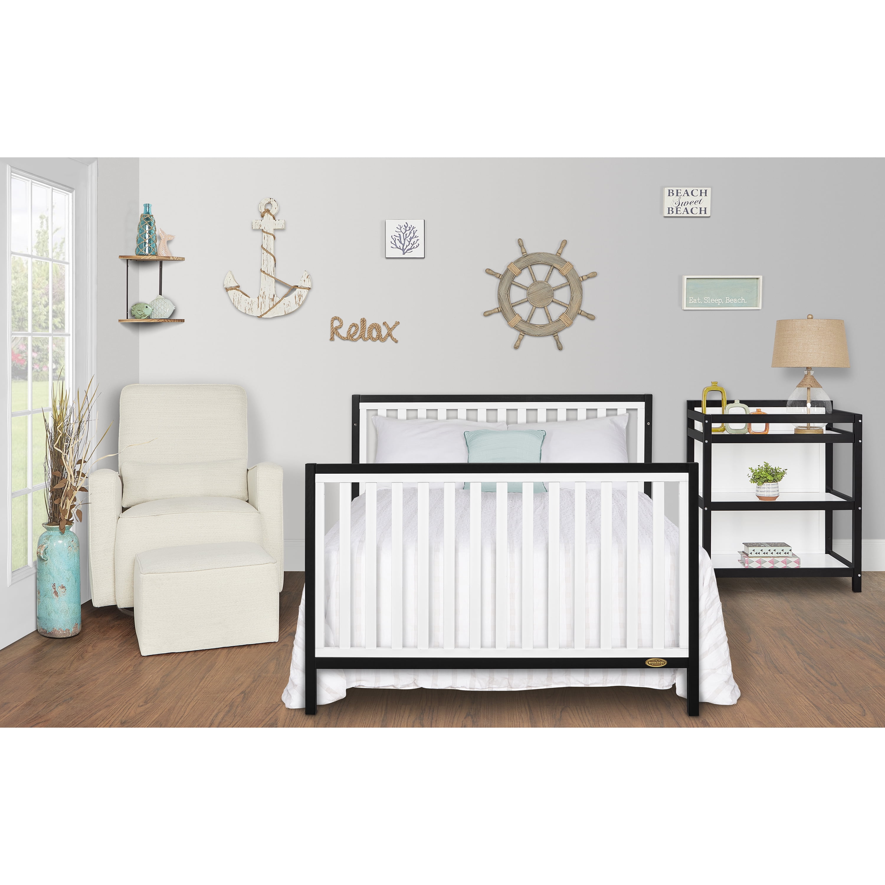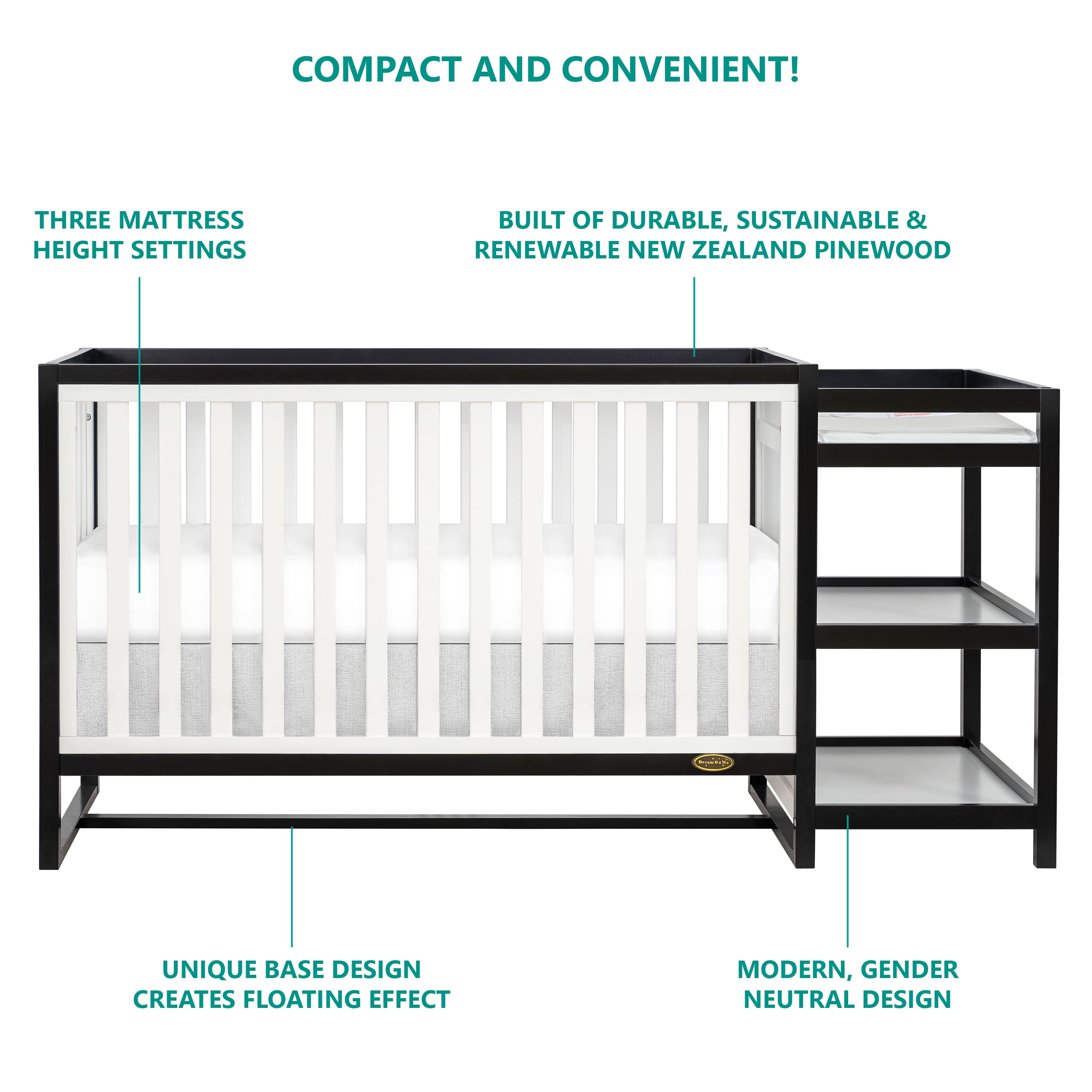 Dream On Me Milo 5-In-1 Convertible Crib and Changing Table I Free Changing Pad, Black And White 5-IN-1 CONVERTIBILITY: The Milo easily converts from a crib into a toddler bed (conversion kit sold separately) and daybed. Changing table includes pad and 2 shelves for storage. GROWS WITH YOUR CHILD: The Milo features the convenience of 3 mattress height positions that you can change as your baby grows. For the best fit use any Dream On Me/Evolur full-size, non-toxic, Greenguard certified crib mattress- TRENDY DESIGN: Built of sustainable, renewable, sturdy New Zealand pinewood, the Milo boasts a modern, gender-neutral vibe with subtle routing lines, square feet and soft fluting on the footboard & headboard. Pick from four solid/two-tone finishes SAFETY FIRST: Side stationary rails mean added security. It’s JPMA certified to meet /exceed all safety standards set by the CPSC/ASTM. All our products are tested by 3rd party labs for lead/other toxic elements to meet/exceed CPSC/ASTM safety standards