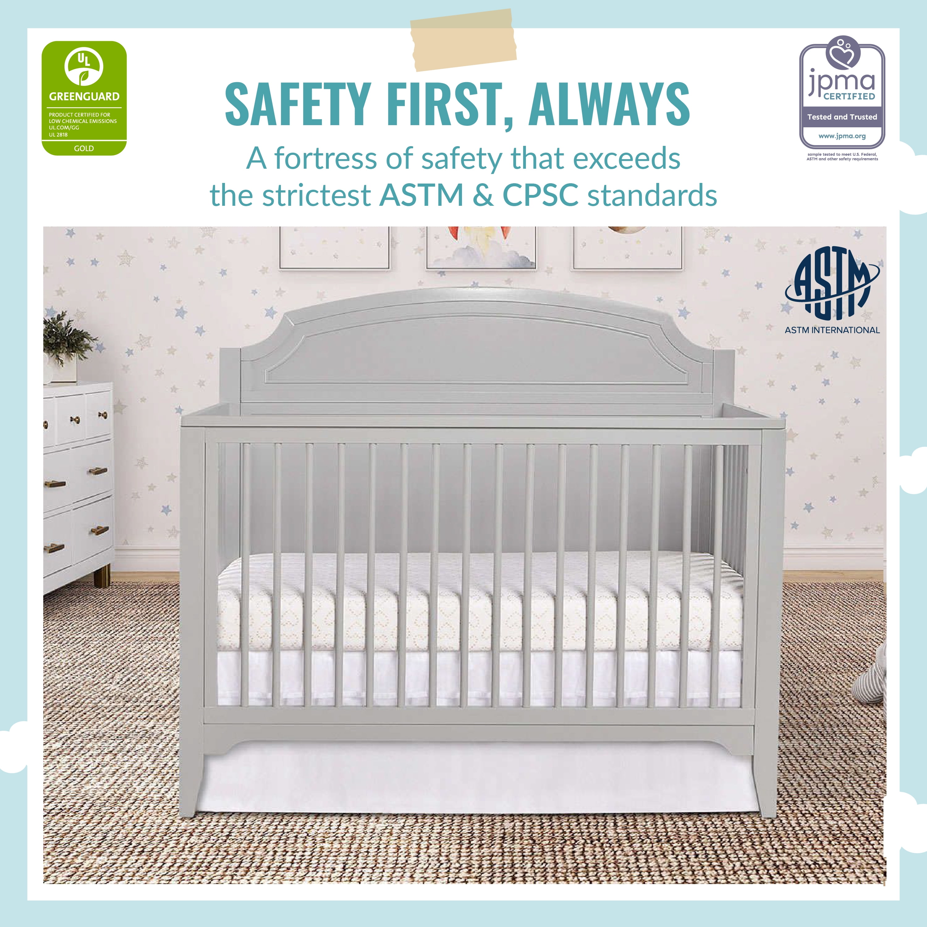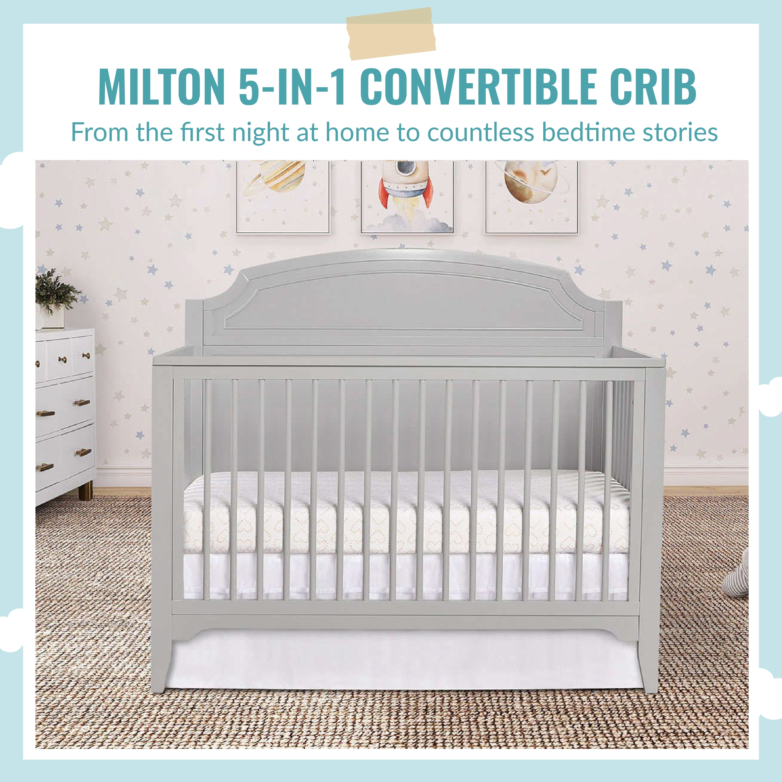 Dream On Me Milton 5 in 1 Convertible Crib made with Sustainable New Zealand Pinewood: 5 IN 1 CONVERTIBILITY: Modern and long-lasting, this crib effortlessly converts from a standard-size crib to a toddler bed, daybed & full-size bed (conversion kit sold separately). UTMOST SAFETY: Not only is the crib JPMA & Greenguard Gold certified, but it also meets/exceeds the ASTM & CPSC standards, providing utmost safety for your baby. SOLID & STURDY: The Milton 5-in-1 Convertible Crib is built of sustainable New Zealand Pinewood and sturdy wooden spindles, with a child-safe, non-toxic finish. THOUGHTFULLY & CONVENIENT: This convenient crib is easy to spot or wipe clean and comes in 3 alluring finishes that complement your nursery – White & Natural, Pebble Grey and White. PRODUCT DIMENSIONS: Product dimensions are 54.5” L x 29.5” W x 48” H, with a weight of 55 Lbs.