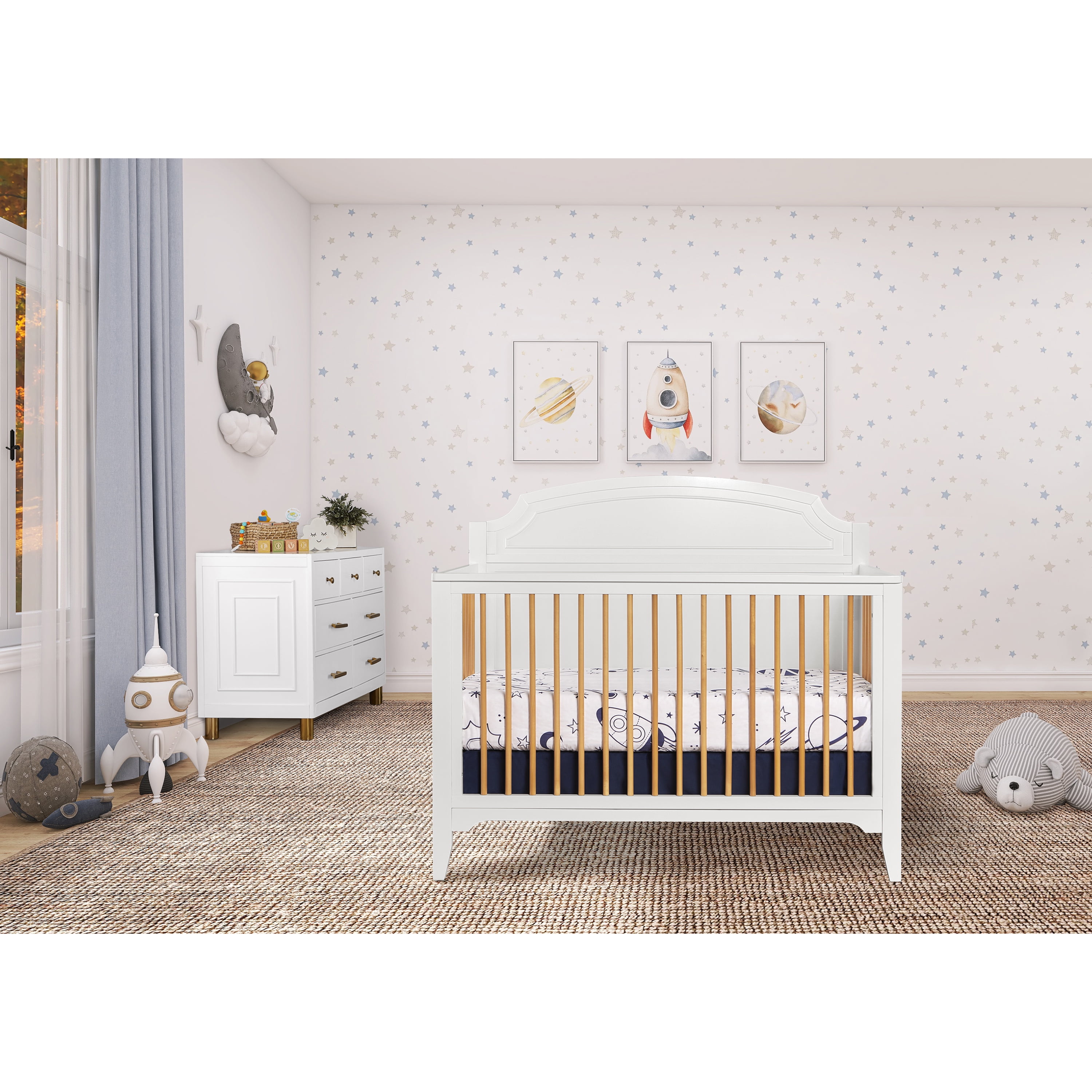 Dream On Me Milton 5 in 1 Convertible Crib made with Sustainable New Zealand Pinewood, White And Natural