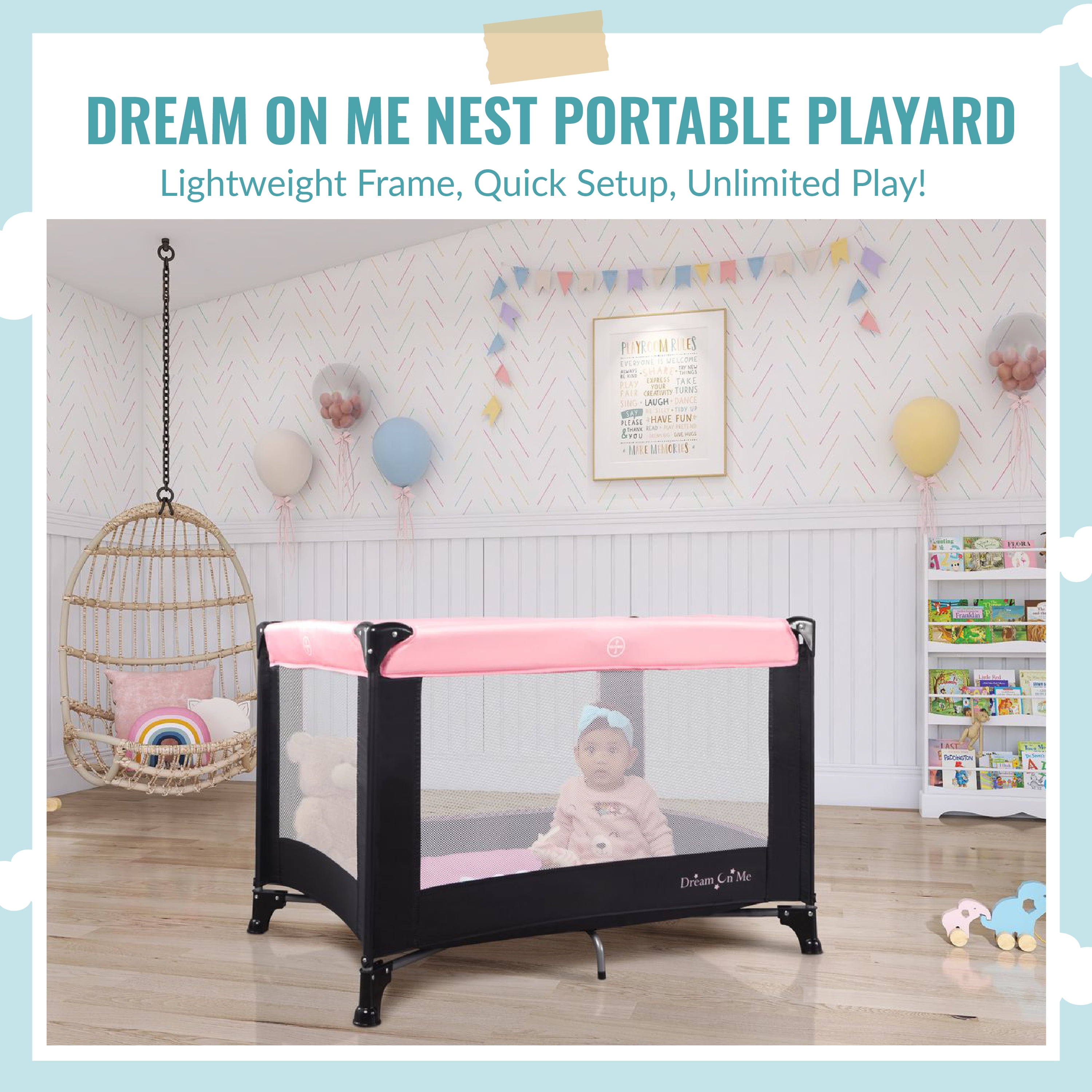 The Nest Portable Playard is an award winning hassle-free playard – the perfect blend of safety and convenience at the best possible price. The Nest offers unmatched convenience and portability. It’s lightweight aluminum frame allows you to carry it around easily indoors, ensuring your child is always nearby. Assembly is fuss-free and takes seconds, thanks to a no-tool assembly and quick fold mechanism. It folds & stores compactly in the tote bag provided, making it the ideal travel companion. Perfect for vacationing or when you are visiting grandma! Little wonder that it was a winner at the 2020 National Parenting Product Awards. The Nest is made of safe and comfortable polyester foam fabric. The four airy mesh sides allow easy breathability and easy visibility – for you and LO! It includes a comfortable folding mattress pad ideal for play and even a quick nap. It boasts a contemporary design and comes in five finishes. To clean, wipe with a damp cloth and allow to air dry. It meets all applicable CPSC/ASTM standards. Product dimensions are 40″ L x 28″ W x 27.5″ H inches; it weighs 16.85 pounds. It is intended for children under 36″ inches in height (or when a child is able to climb out).