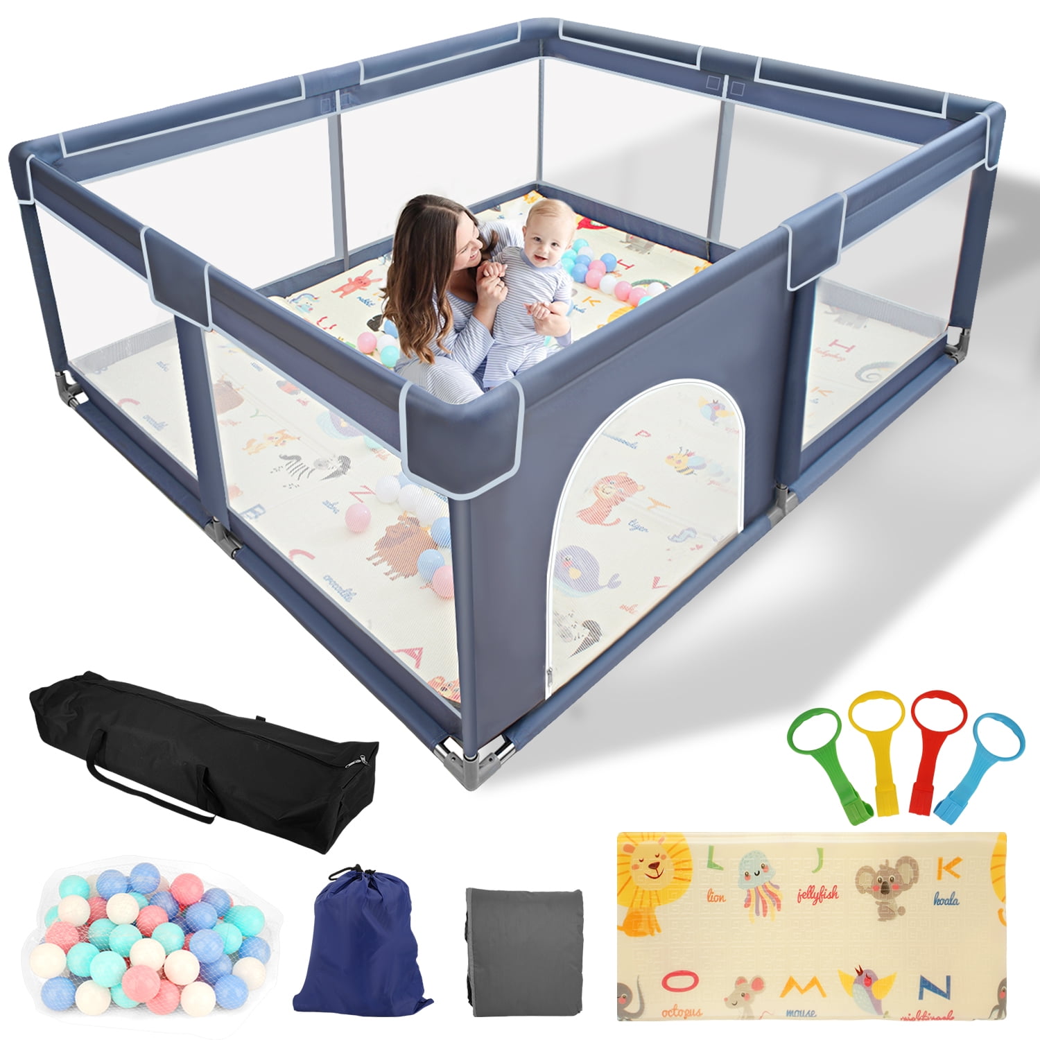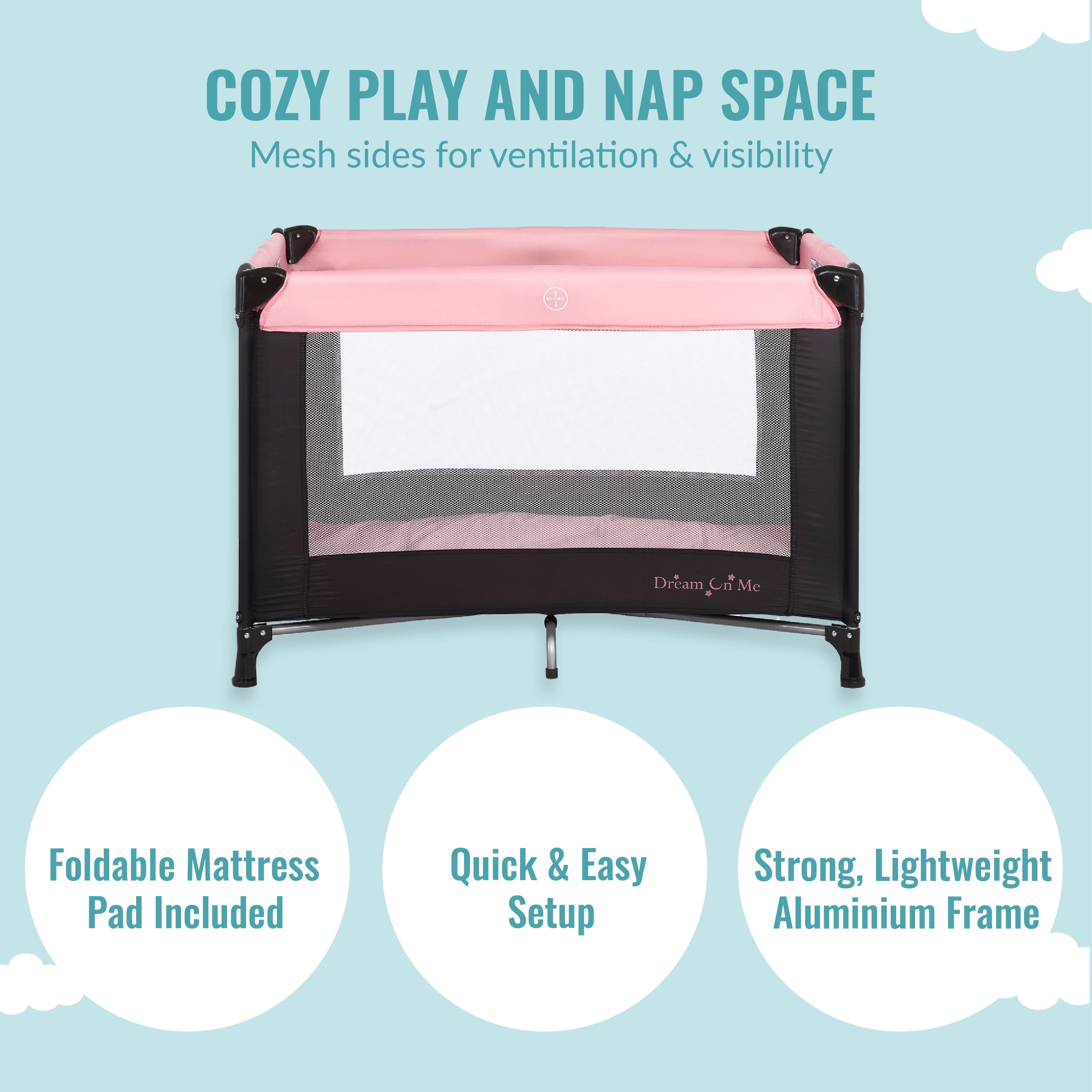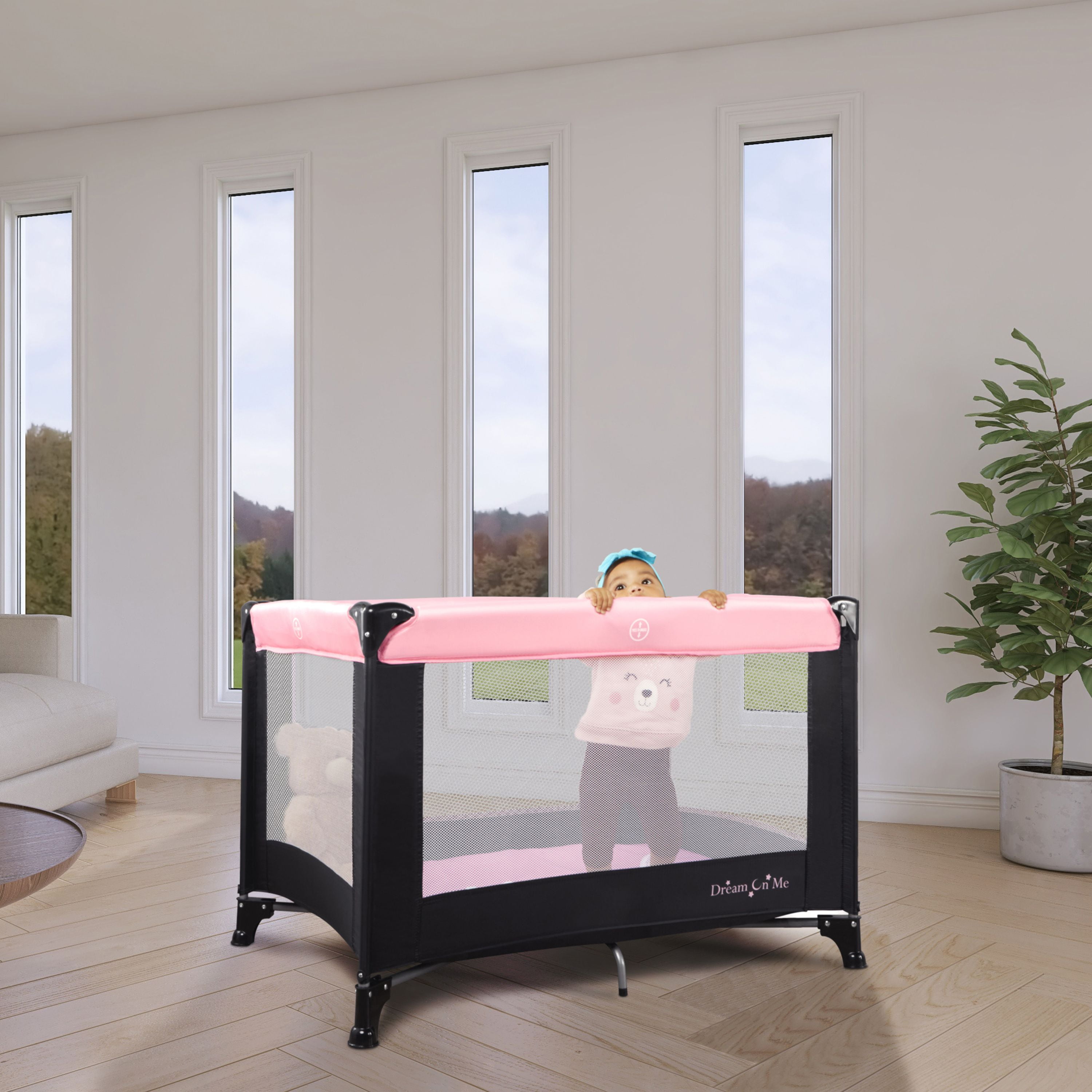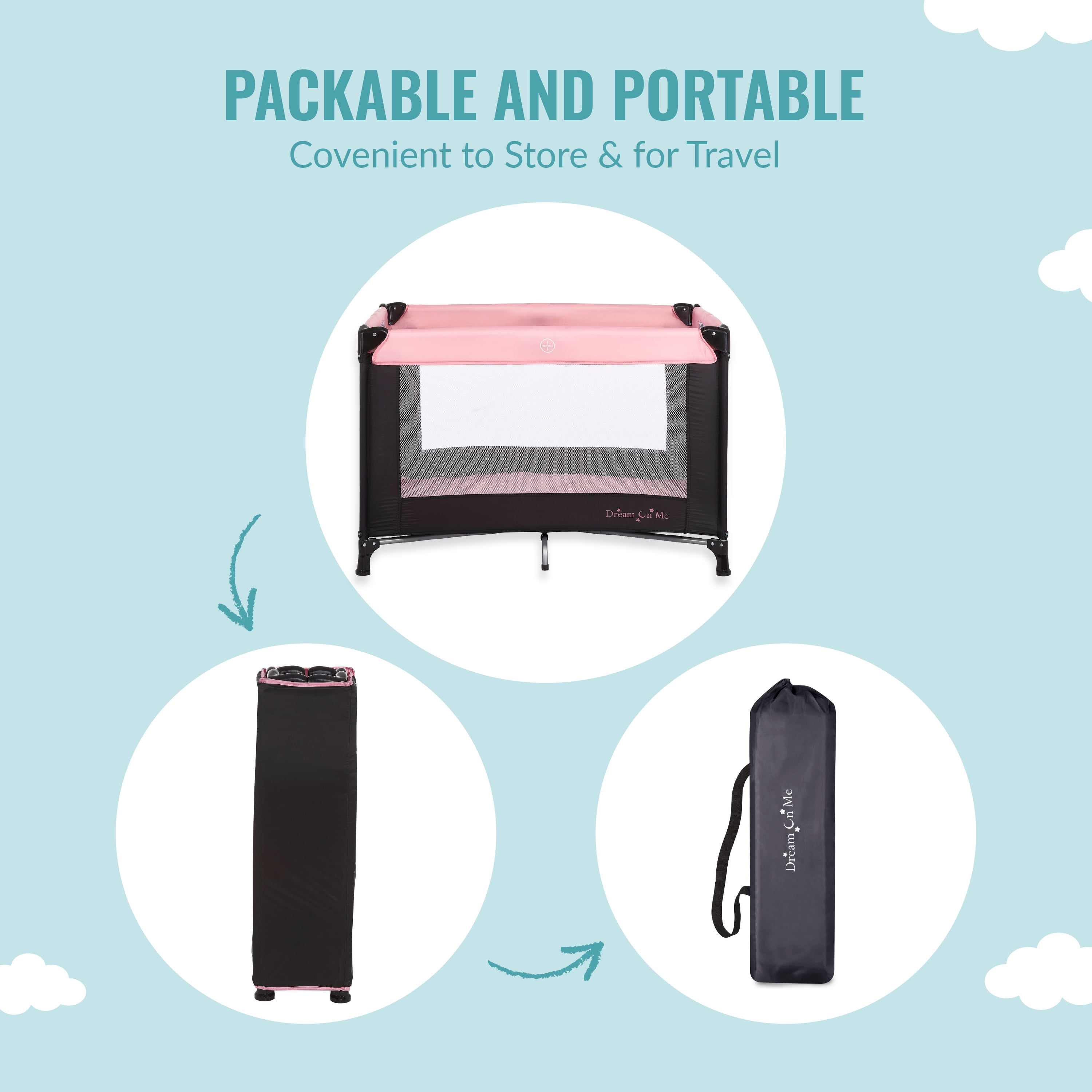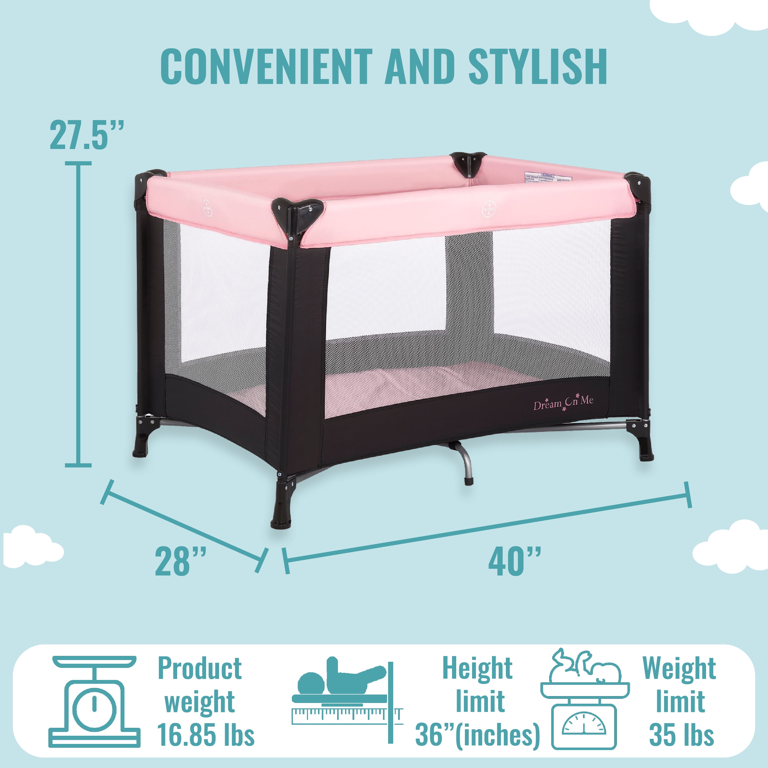 Quick & Easy Set up Mesh Sided Full Size Playard. Folds easily for Travel and storage Travel Bag included. Easy Tote Handle. Meets all CPSC and ASTM standards