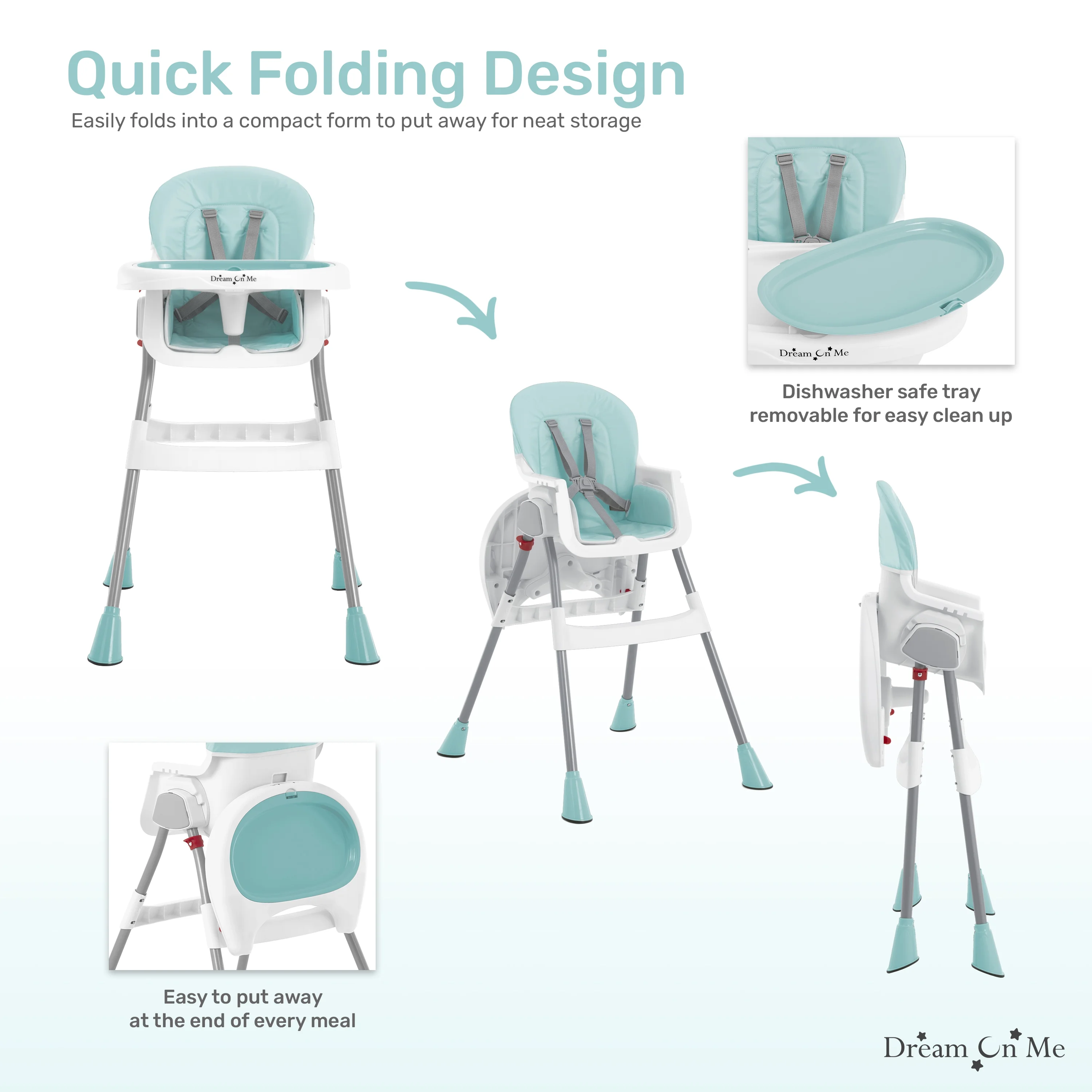 Dream On Me Portable 2-in-1 Table Talk Baby High Chair, Convertible, Compact and Light Weight, Aqua