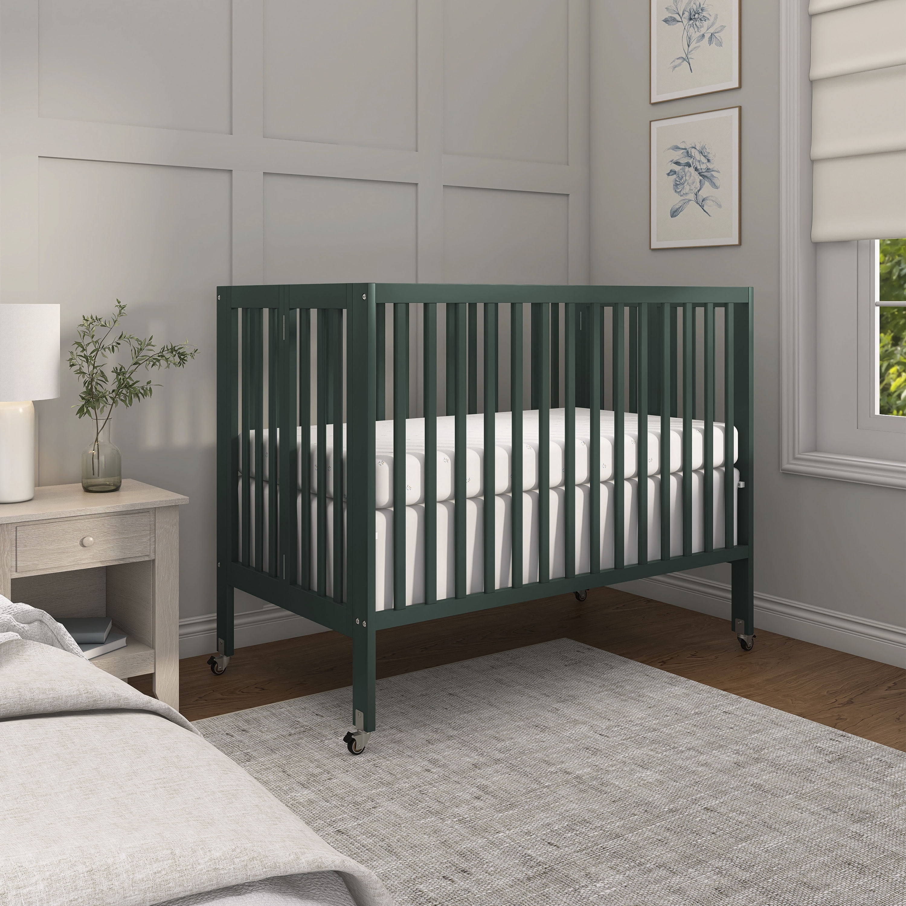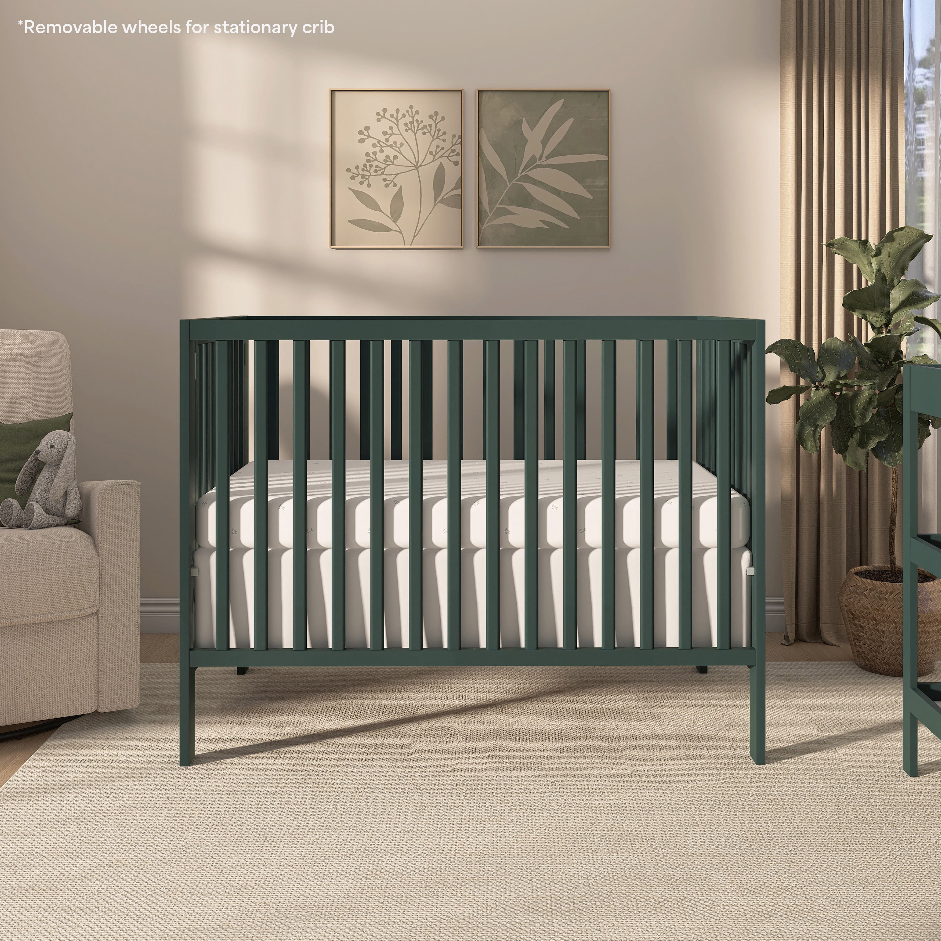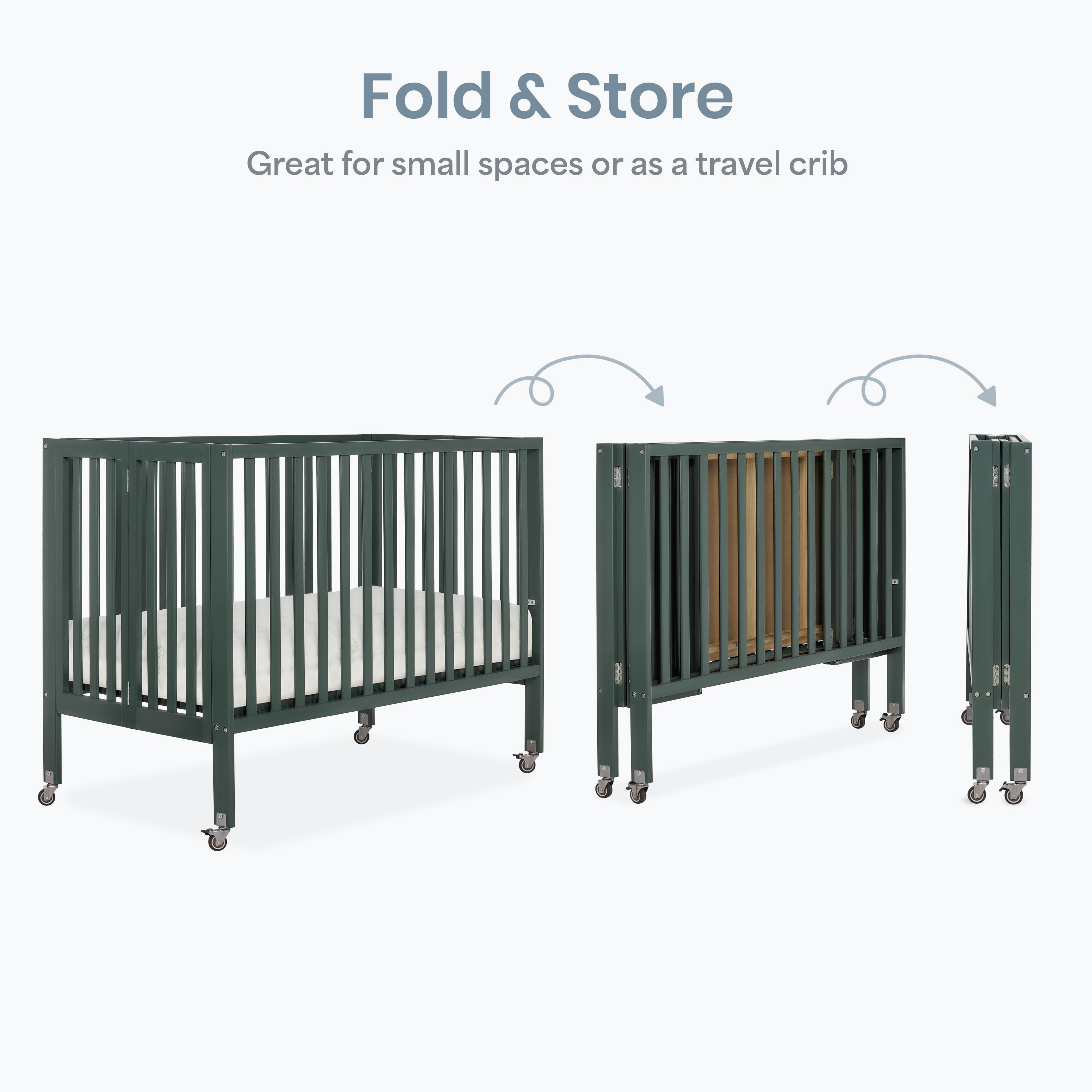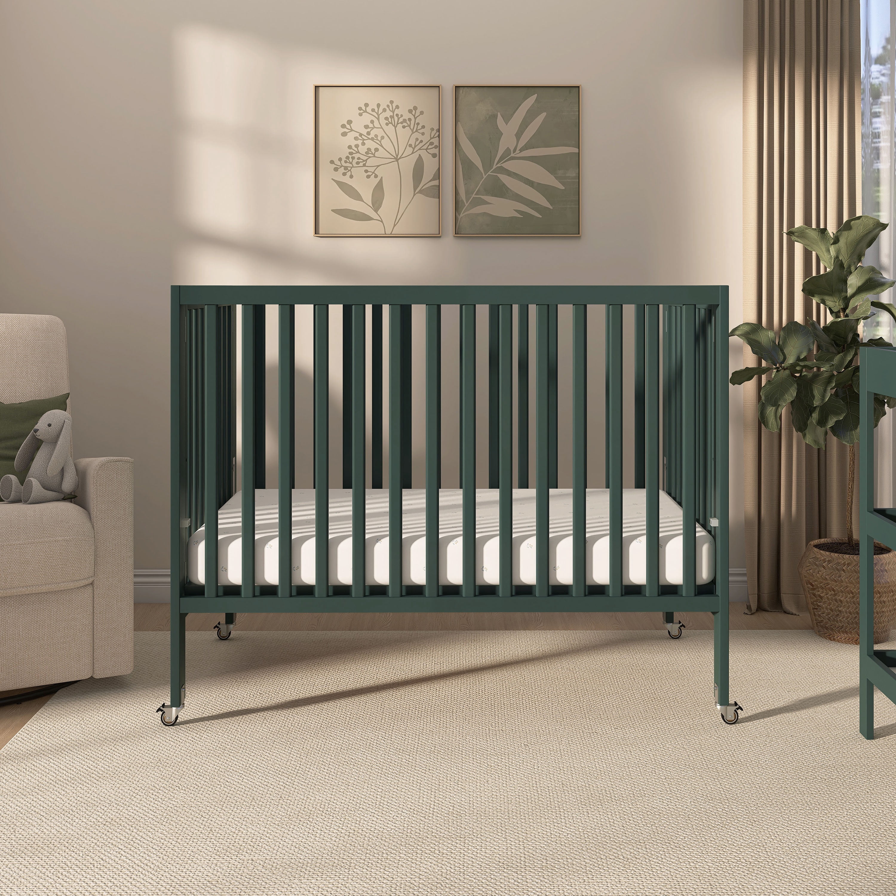 Dream On Me Quinn Full-Size Folding Crib, Removable Wheels, Modern Nursey, Adjustable Mattress Support, Patent Folding System in Olive