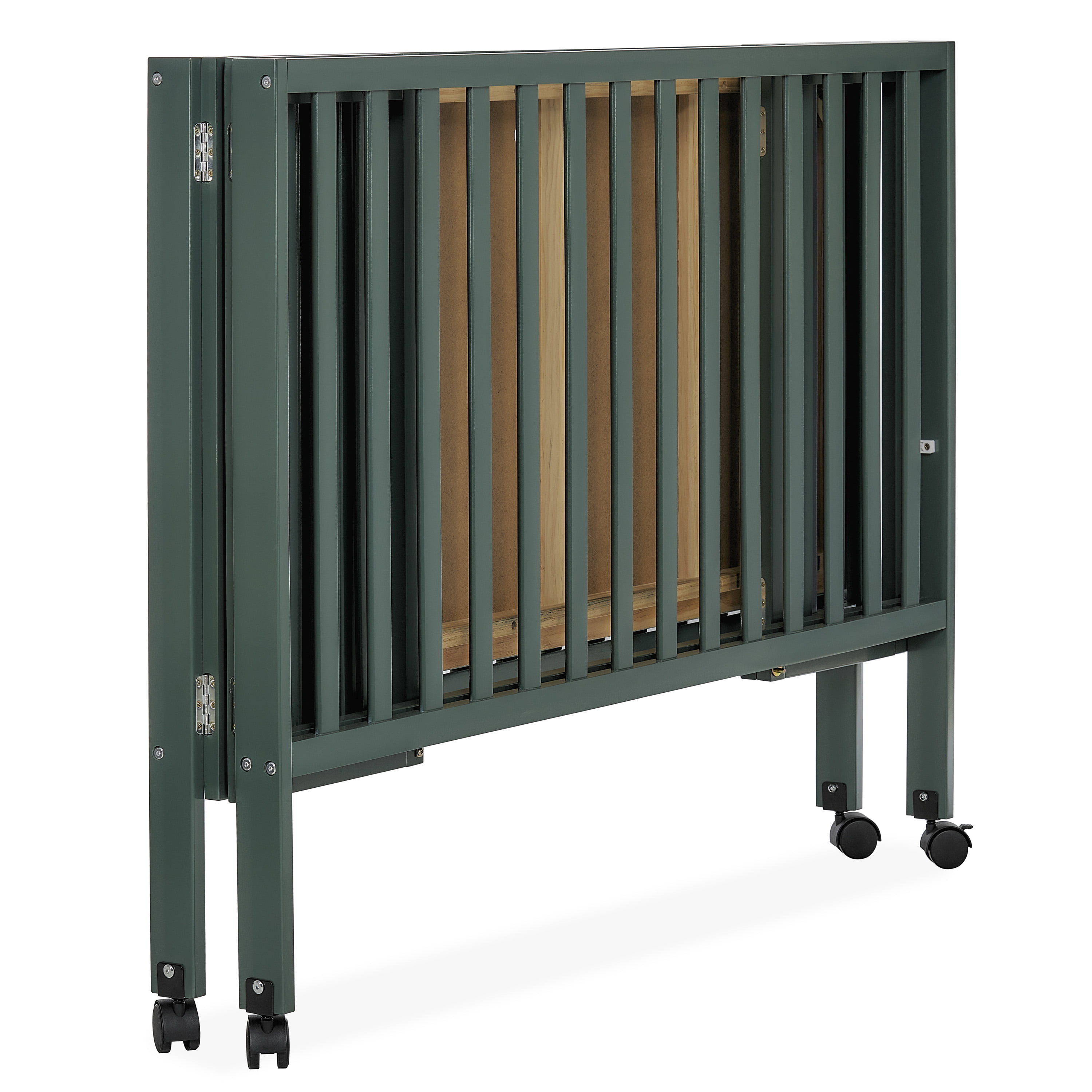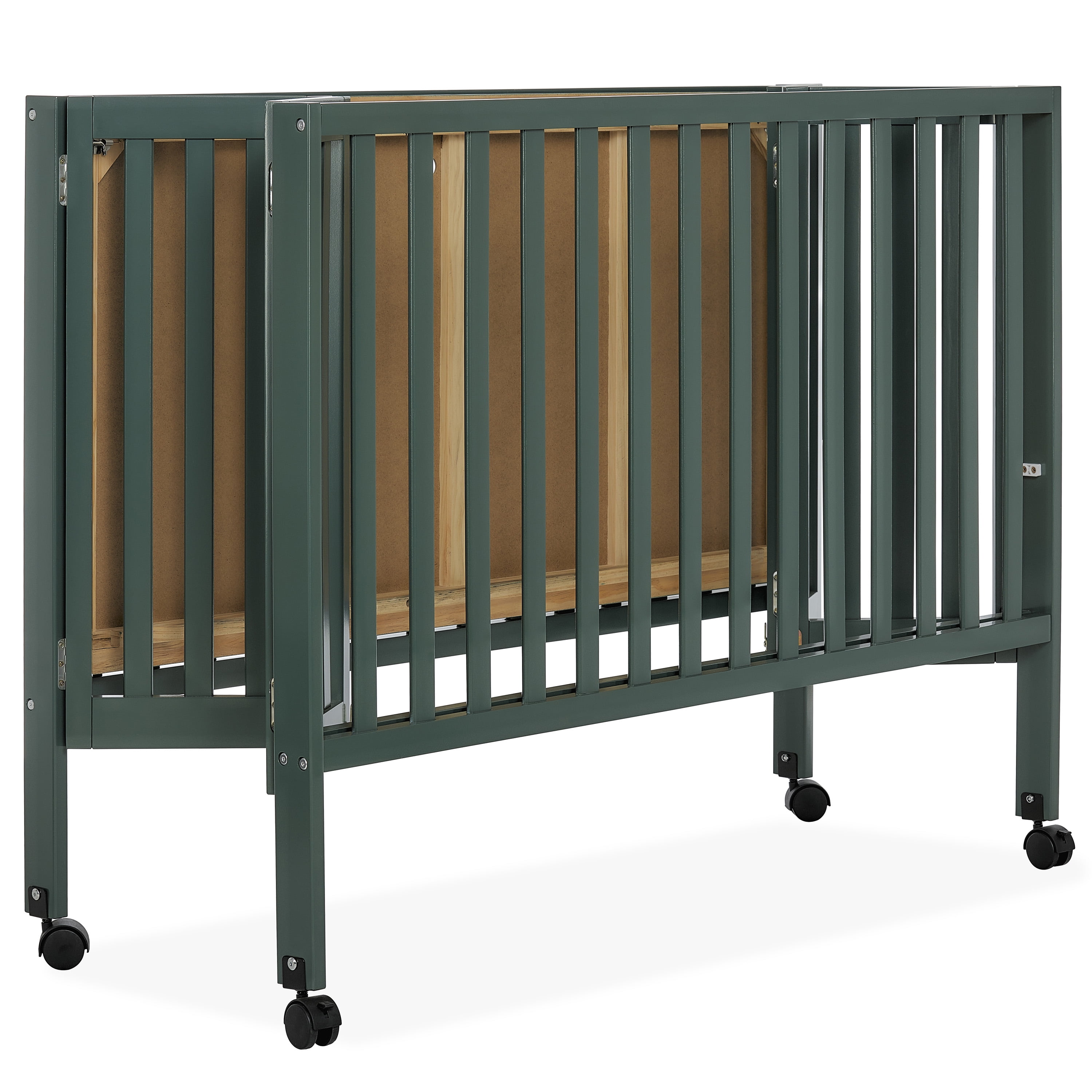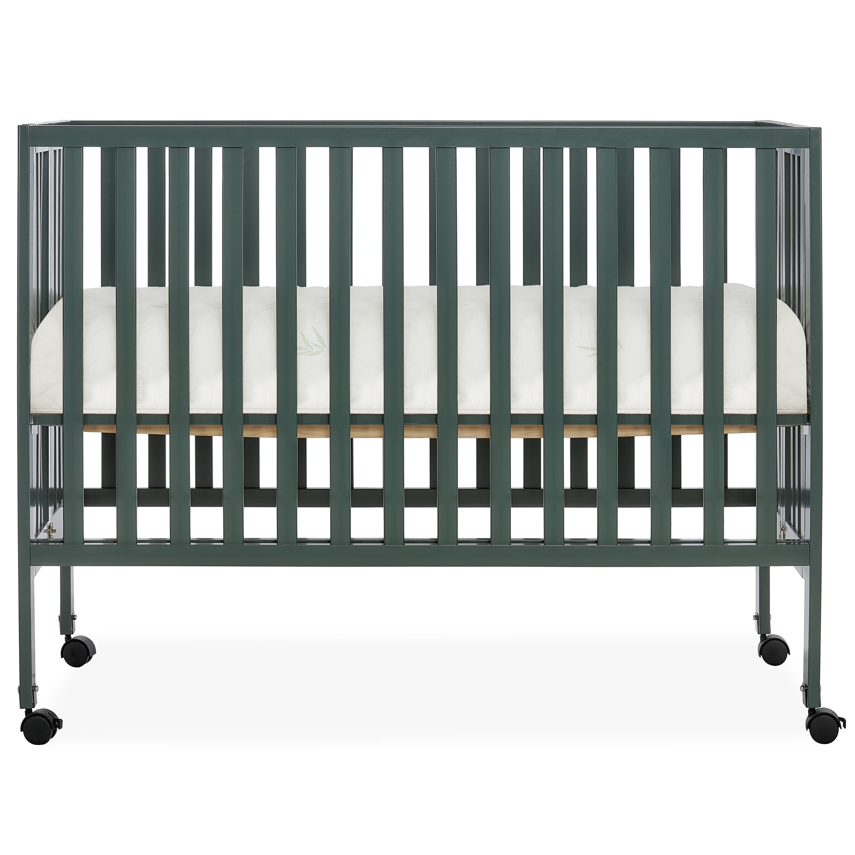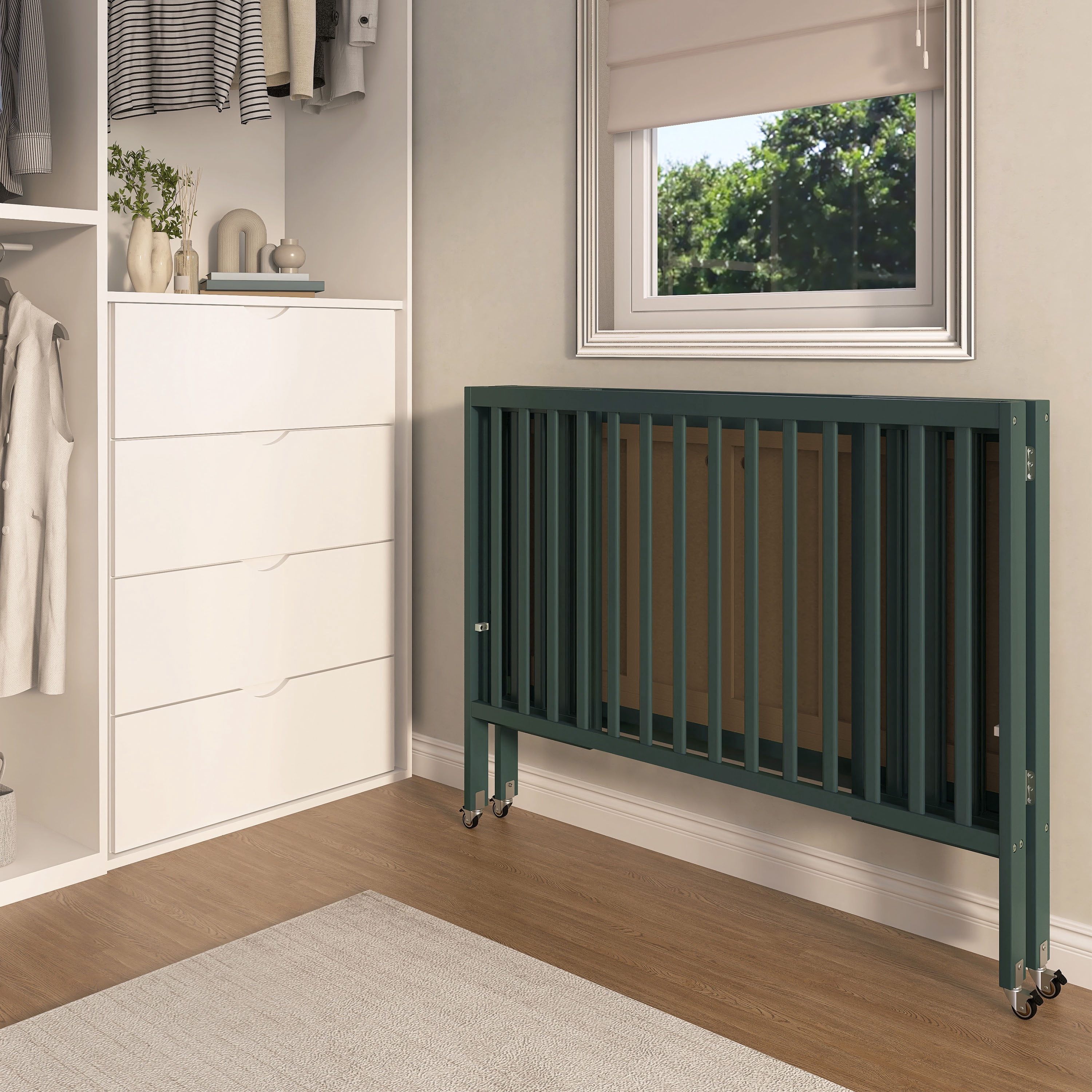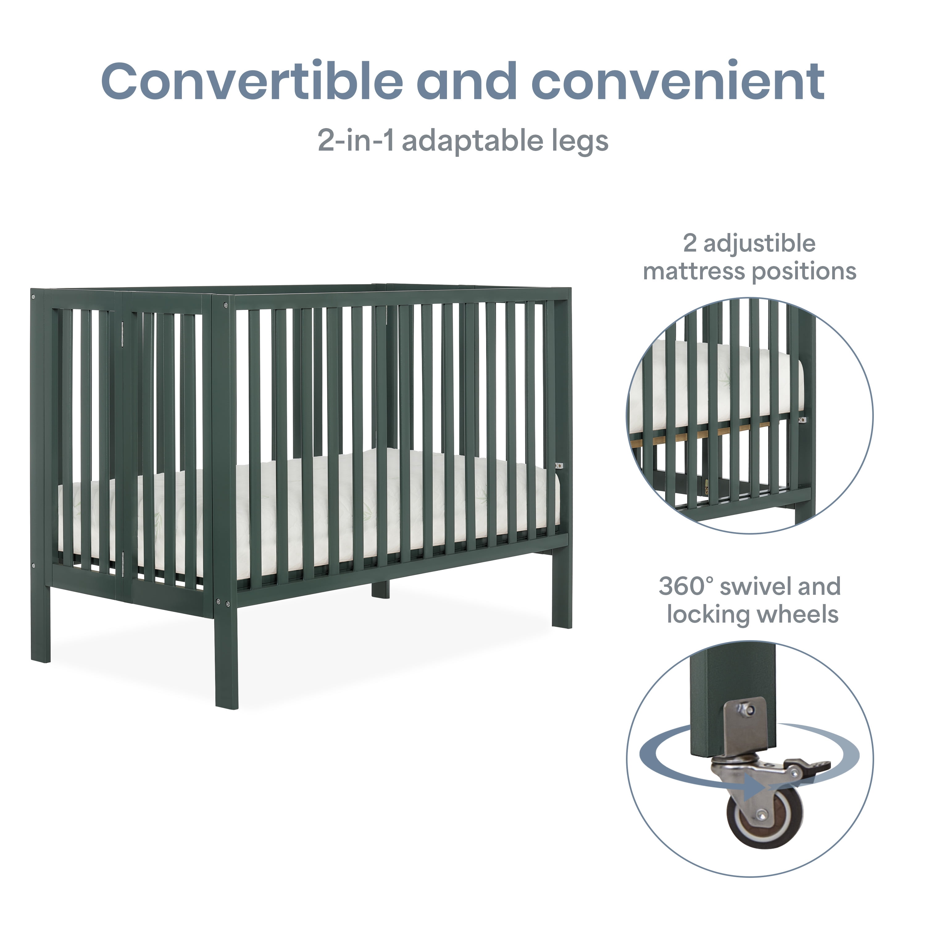 Dream On Me Quinn Full-Size Folding Crib, Removable Wheels, Modern Nursey, Adjustable Mattress Support, Patent Folding System in Olive