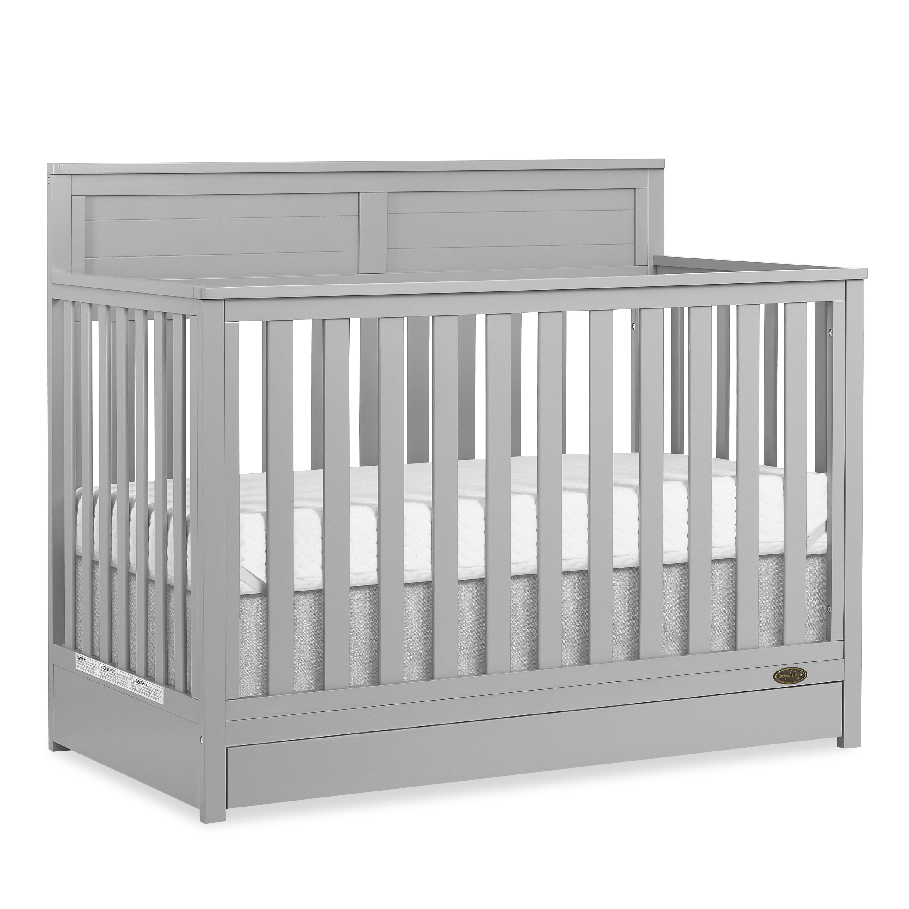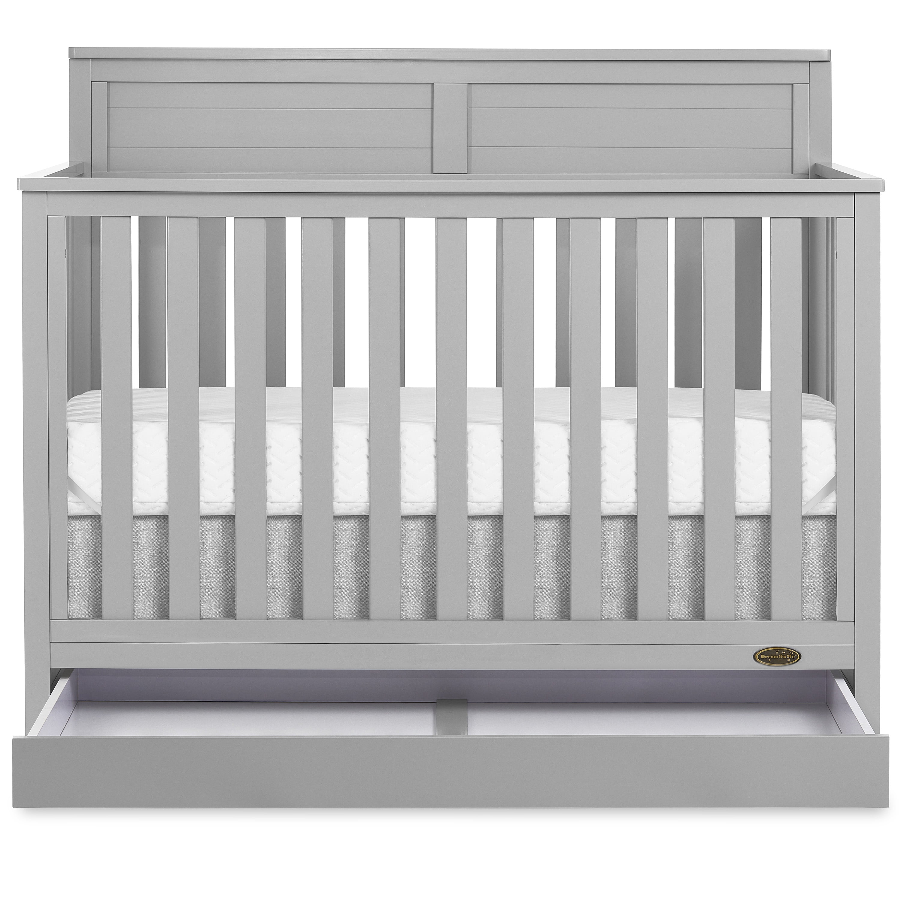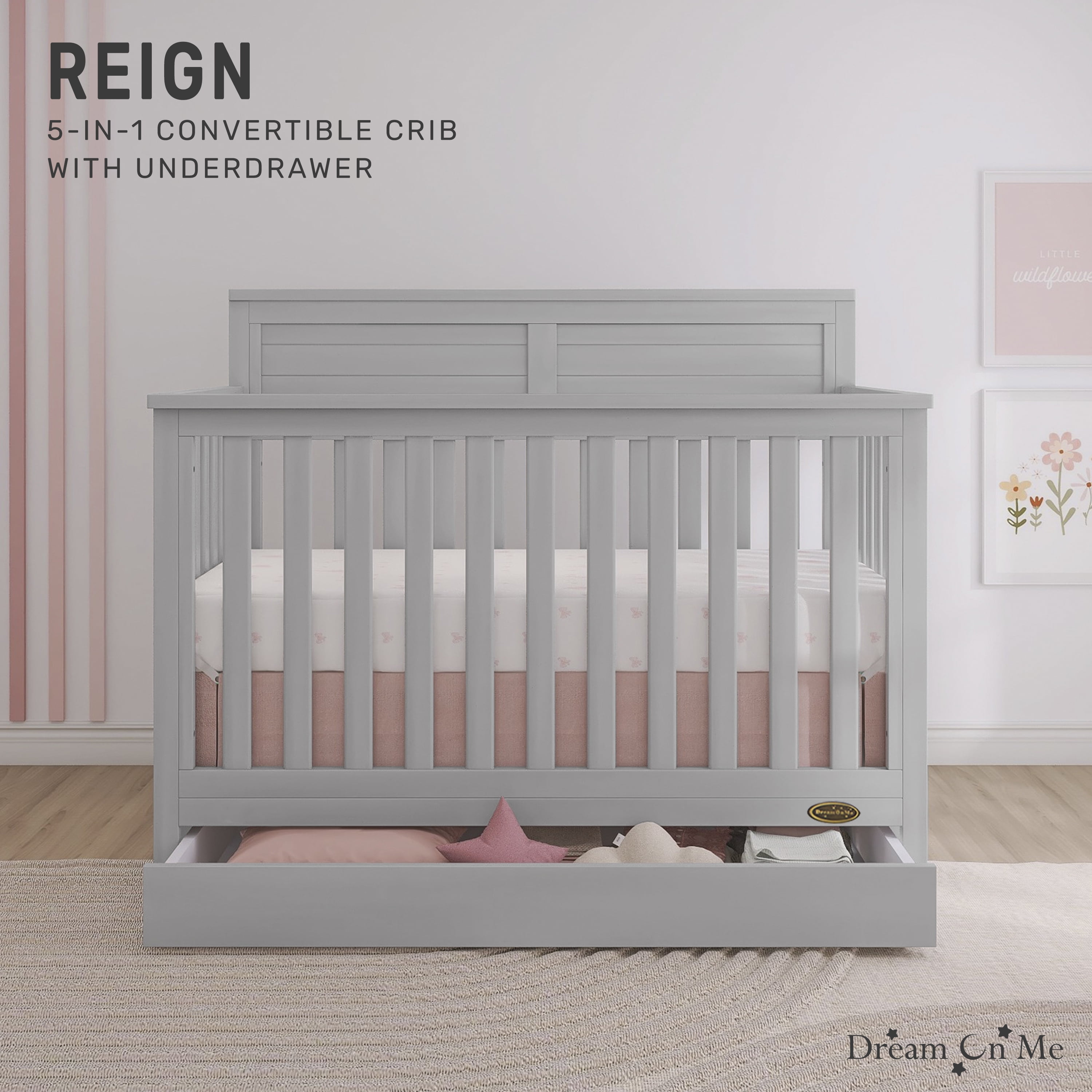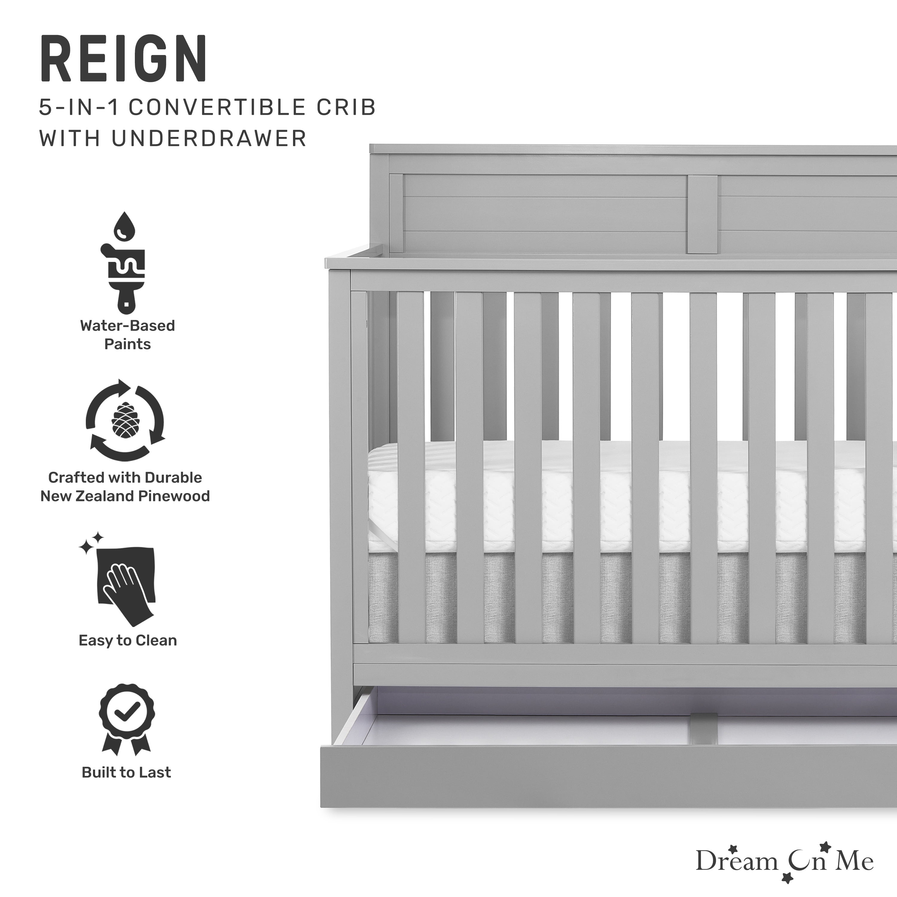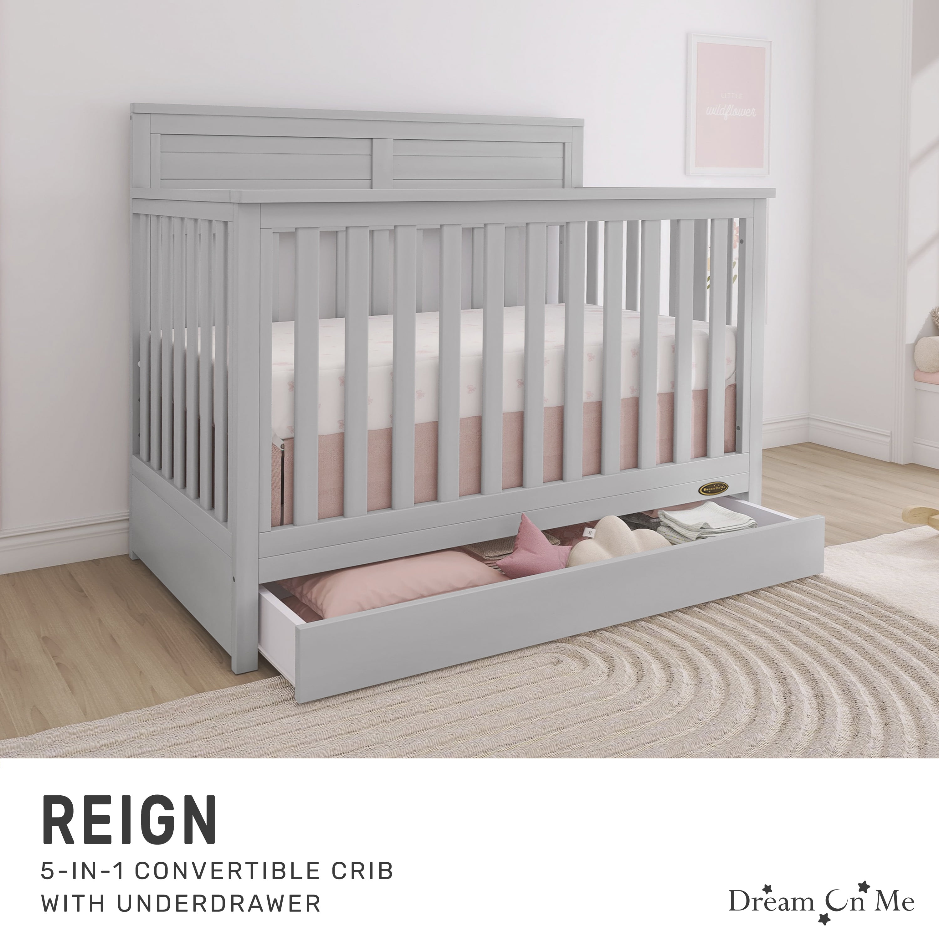 Dream On Me Reign 5 in 1 Convertible Crib with Under Drawer in Pebble Gray