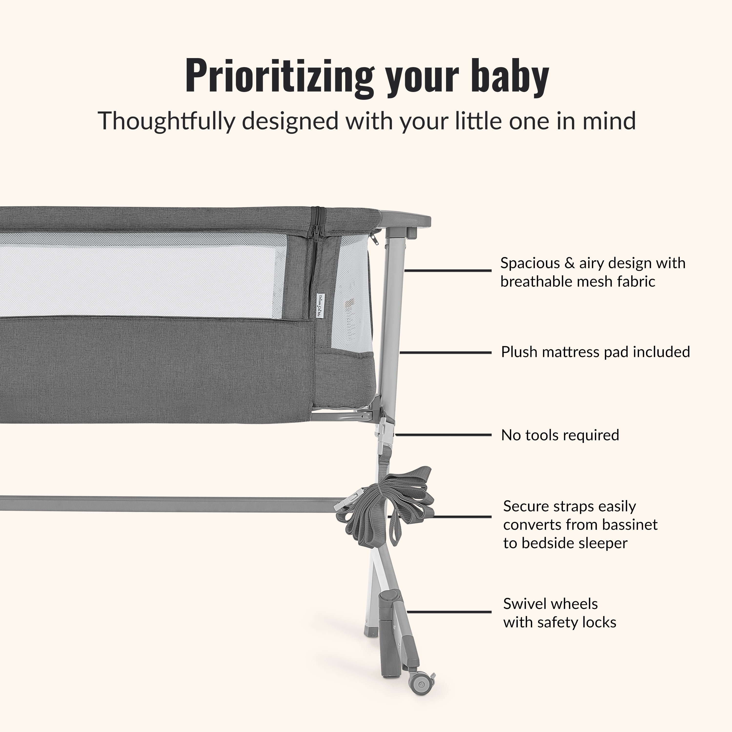 Dream On Me Skylar Bassinet and Bedside Sleeper, JPMA Certified, Easy to Fold & Carry, Grey