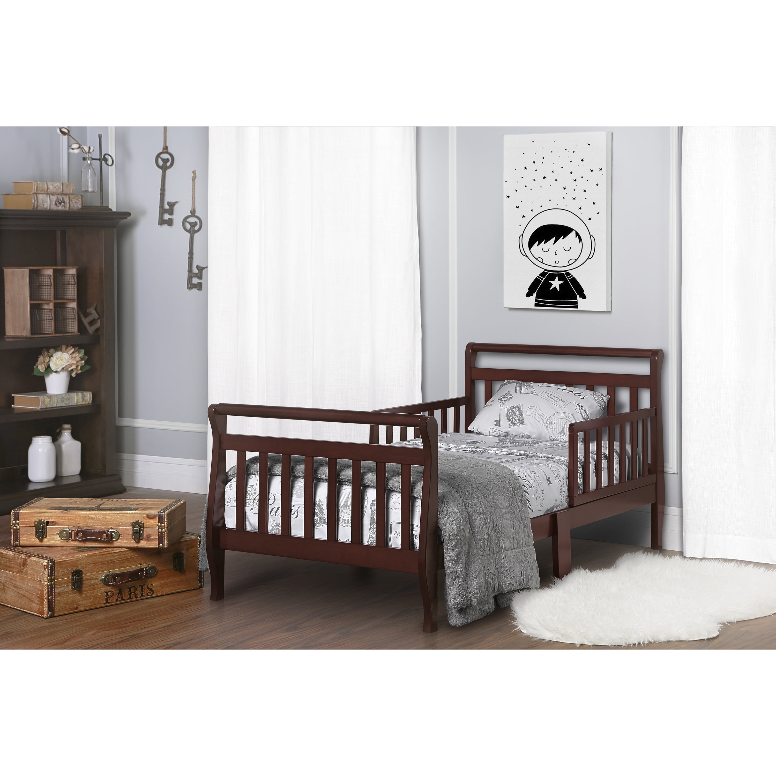 - The Dream On Me Classic Sleigh Toddler Bed features a classic sleigh design with curved footboards and headboards and will seamlessly blend with your other furniture. It is made of solid wood and makes a beautiful addition to any toddler room.