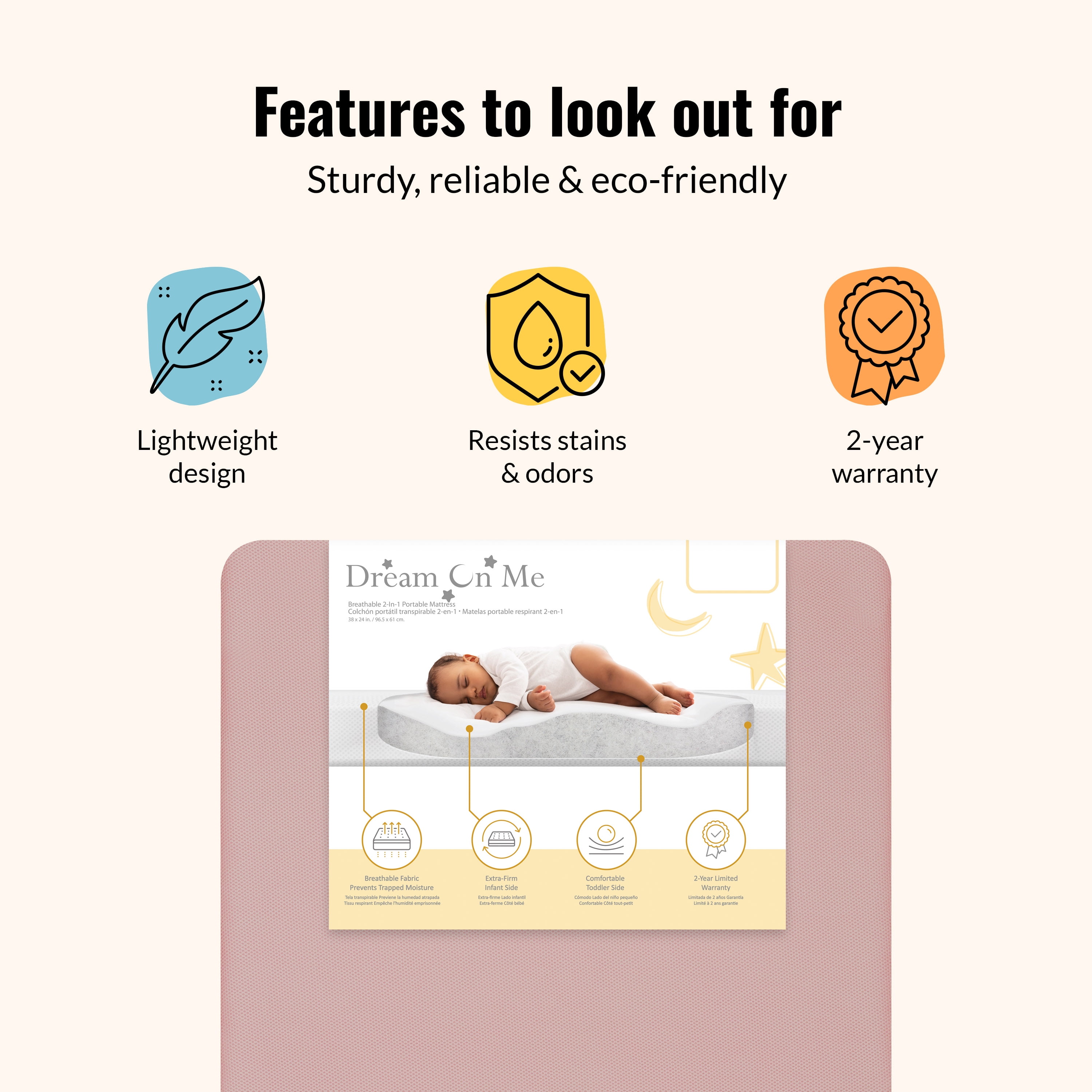 Dream On Me Snuggles Breathable Extra Firm Baby Portable/Mini Crib Foam Mattress, Dusty Rose
