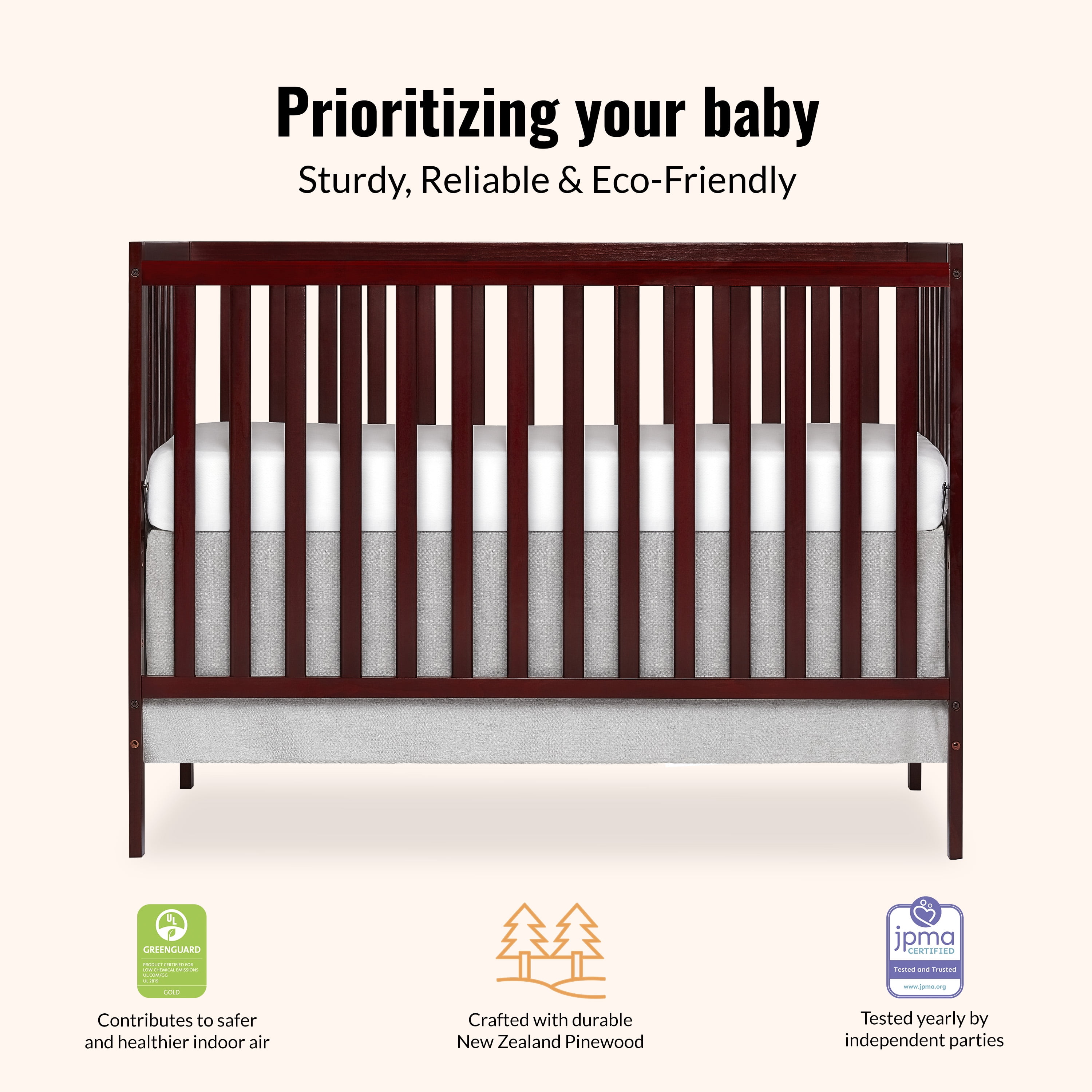 Dream On Me Synergy 5-in-1 Convertible Crib in Cherry, Greenguard Gold Certified
