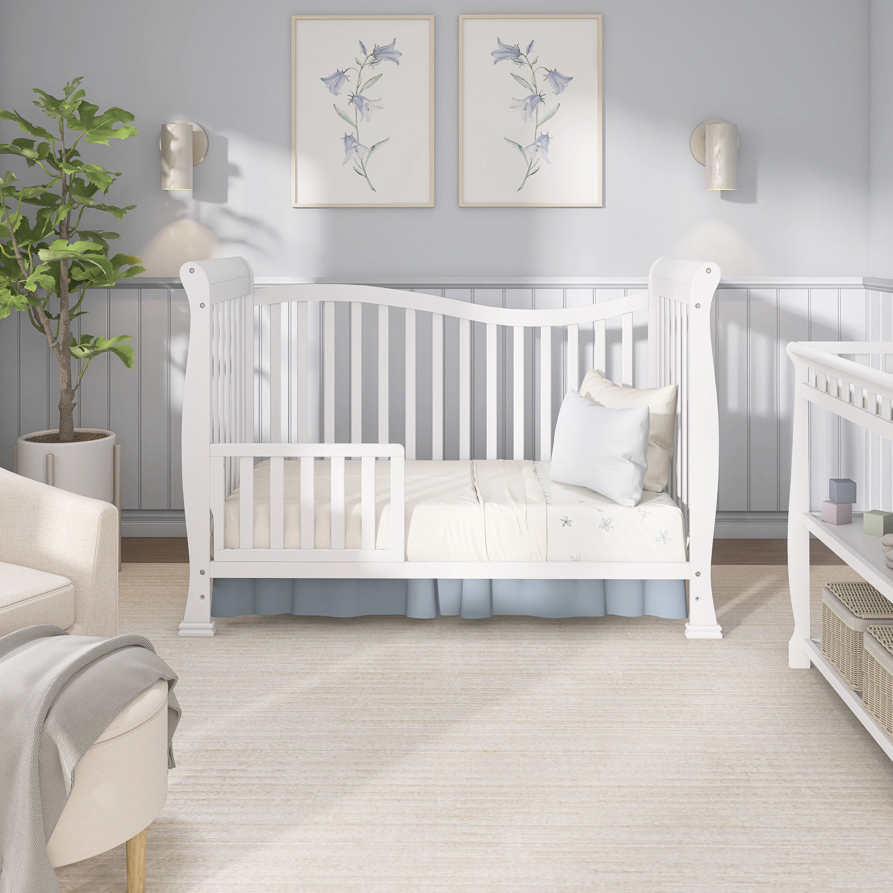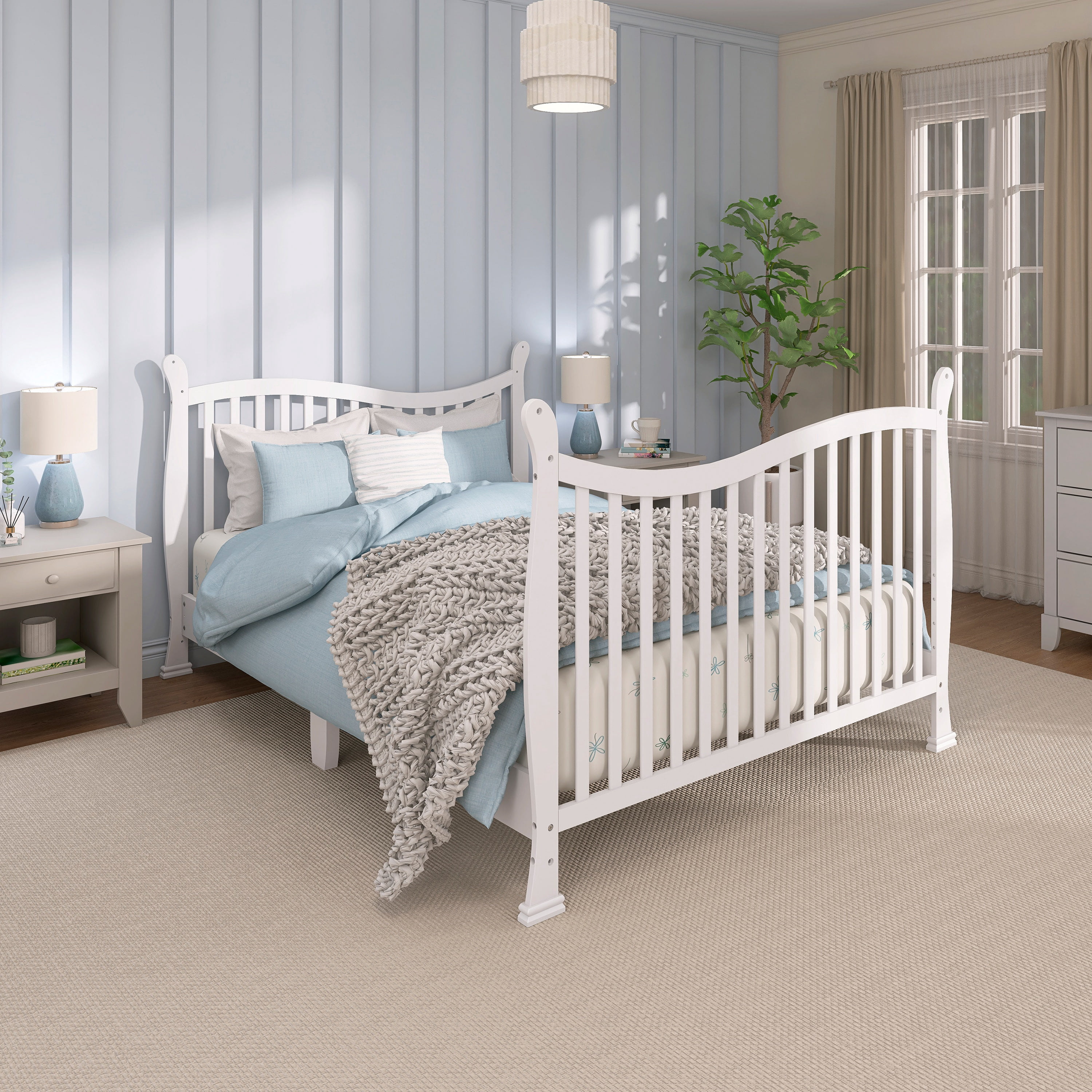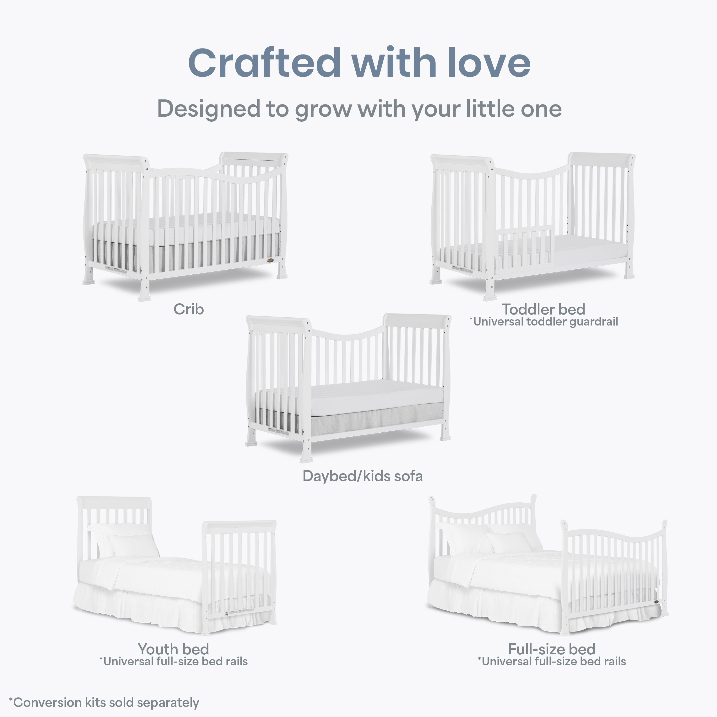 Designed with timeless appeal, the Violet 7-in-1 Crib from Dream On Me is built to grow with your child. It features a beautiful flowing design that will coordinate with a wide variety of decorative styles. This unique 7-in-1 crib can transition easily to a comfy toddler bed, daybed, youth bed and full size bed as your child grows. It is also equipped with an easy-to-use four-position mattress support system for added adaptability. This crib is available in a range of finishes. All Dream On Me cribs meet all applicable ASTM and CPSC standards.
