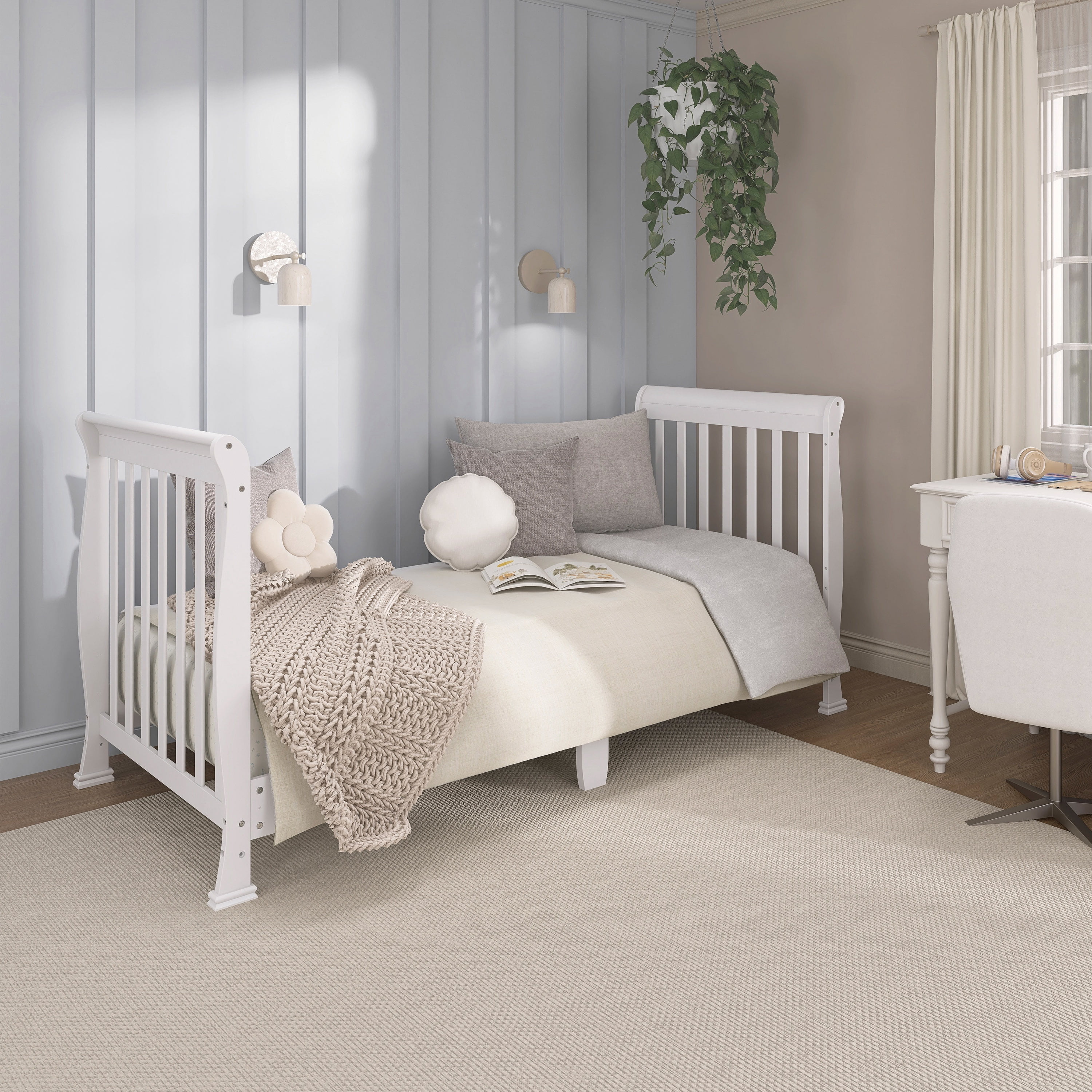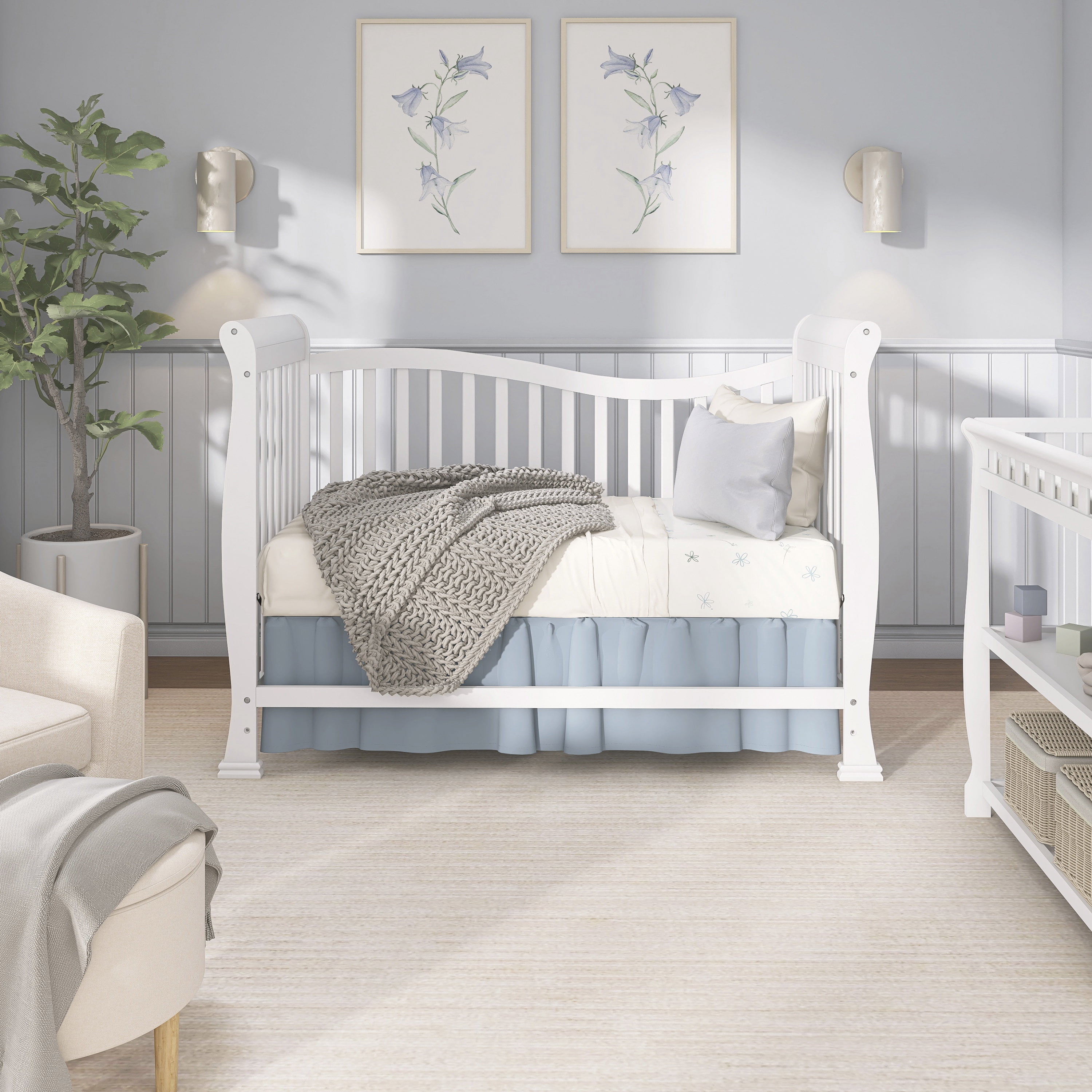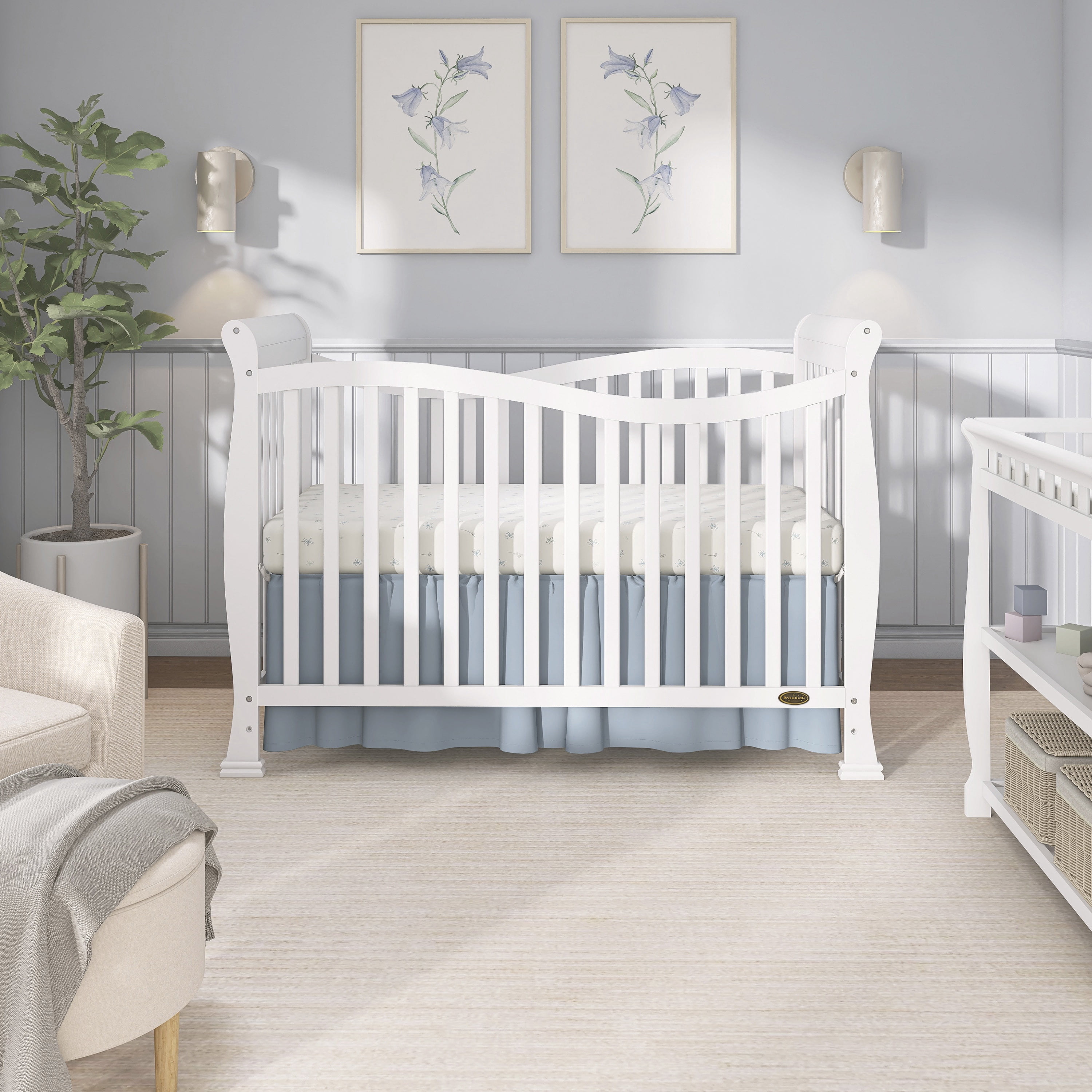 Designed with timeless appeal, the Violet 7-in-1 Crib from Dream On Me is built to grow with your child. It features a beautiful flowing design that will coordinate with a wide variety of decorative styles. This unique 7-in-1 crib can transition easily to a comfy toddler bed, daybed, youth bed and full size bed as your child grows. It is also equipped with an easy-to-use four-position mattress support system for added adaptability. This crib is available in a range of finishes. All Dream On Me cribs meet all applicable ASTM and CPSC standards.