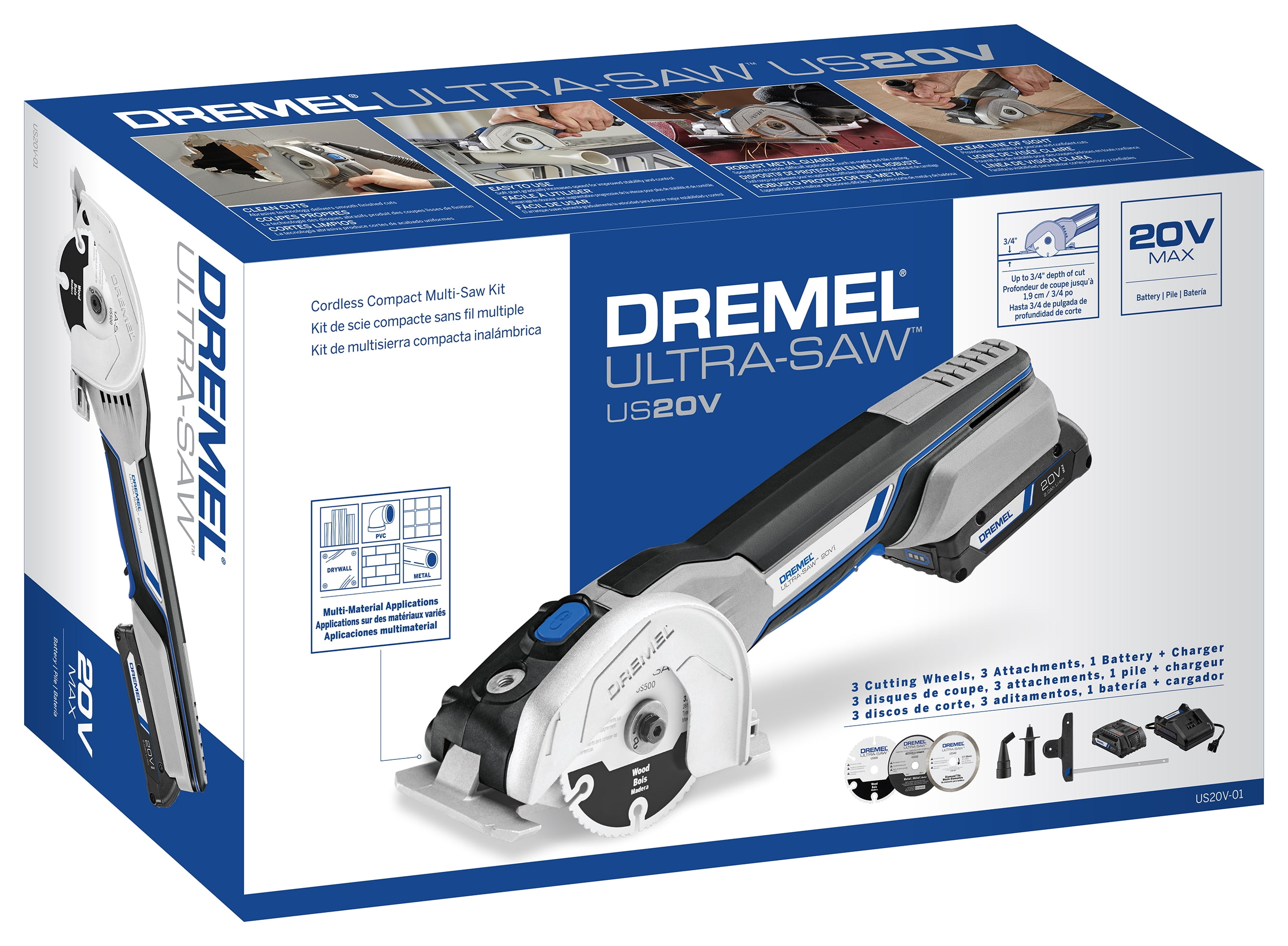 Dremel US20V-01 – 20V Max Cordless Ultra-Saw 1 Battery Tool Kit, (3) Cutting Wheels & Storage Bag, Ideal for Flush Cutting, Plunge Cutting and Surface Preparation