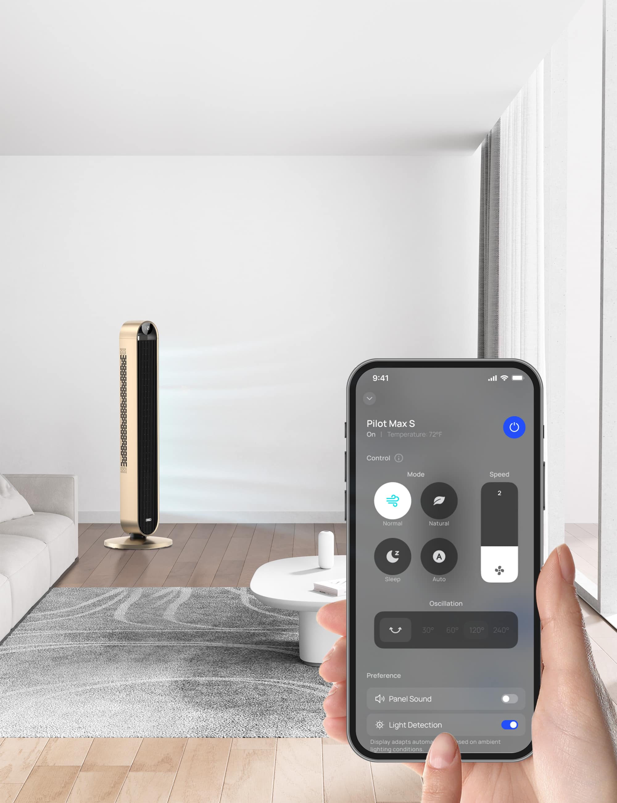 With the Dreo app, you can control your smart tower fan from anywhere. Adjust settings while you’re in another room, at the office, or out walking the dog. Plus, Pilot Max is compatible with Amazon Alexa and Google Assistant, so you can use your fan without lifting a finger