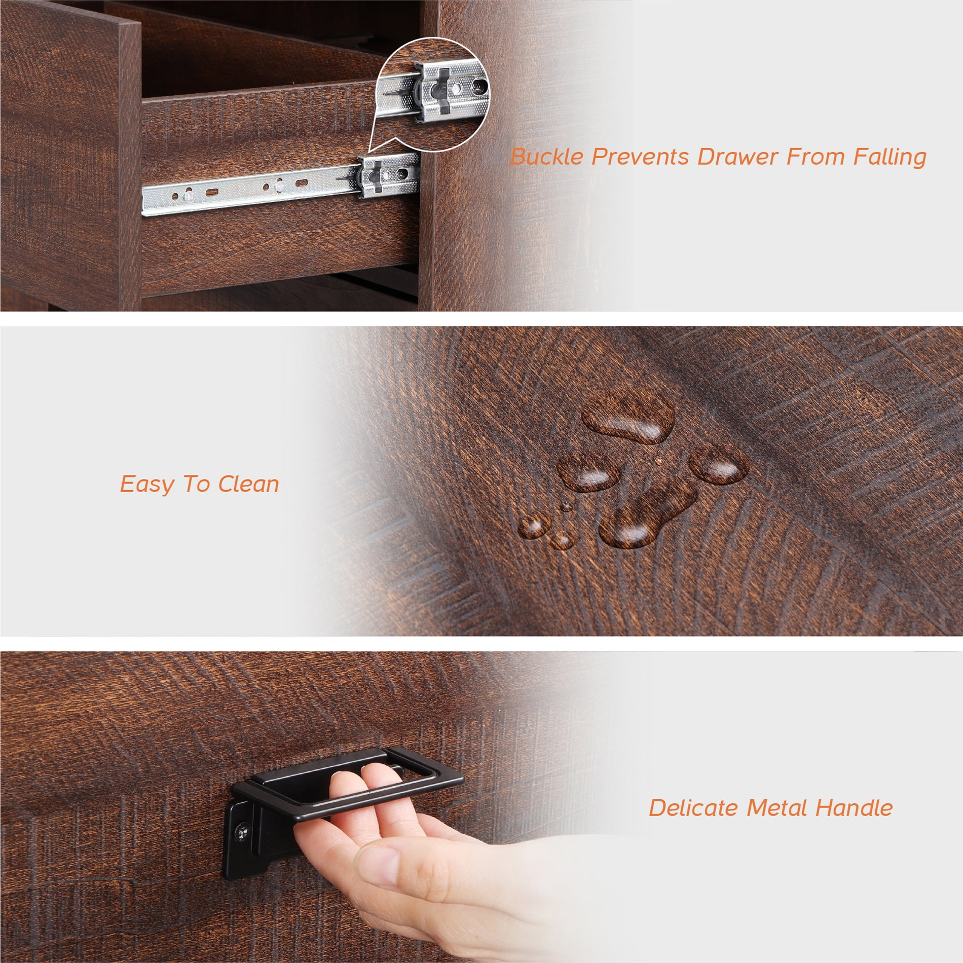 【Farmhouse Charm Dresser】Infusing any bedroom with warmth and coziness, this rustic dresser creates a welcoming atmosphere. Its natural wood texture lends authenticity and character to your living space, while the vintage design evokes a sense of nostalgia and style. 【Storage Solution】Overall Dimensions: 31.9″” Hx 15.3″” Dx 47.2″”W. The bedroom dresser features 6 small drawers, providing versatile storage for organizing items such as shirts, underwear, socks, baby essentials, and children’s toys. The spacious 47.2″” x 15.3″” countertop is ideal for lamps, decor, or photos. This can help organize your stuffs separately and orderly. 【Versatile Functionality】Beyond serving as a traditional dresser, this piece of furniture offers versatile functionality. Use it as a vanity in your bedroom, a storage cabinet in your study or office, or even as a stylish accent piece in your entryway or hallway, adapting to your changing needs and preferences effortlessly. 【Modular Design】This chest of drawers features highly compatible side tables that can be used independently or combined to enhance storage flexibility and space utilization.Additionally, it comes with a matching TV stand and coffee table, ensuring a unified style across your furniture. 【Easy to assemble】AII Drawers DIides Pre-instaIIed Advance.A clear instruction is included, which has straightforward illustrations and descriptions. Each screw and pin has its own code and boards are clearly labeled to help you easily understand the assembly process. 2 people are recommended to cooperate. An installation video guide is attached for help.