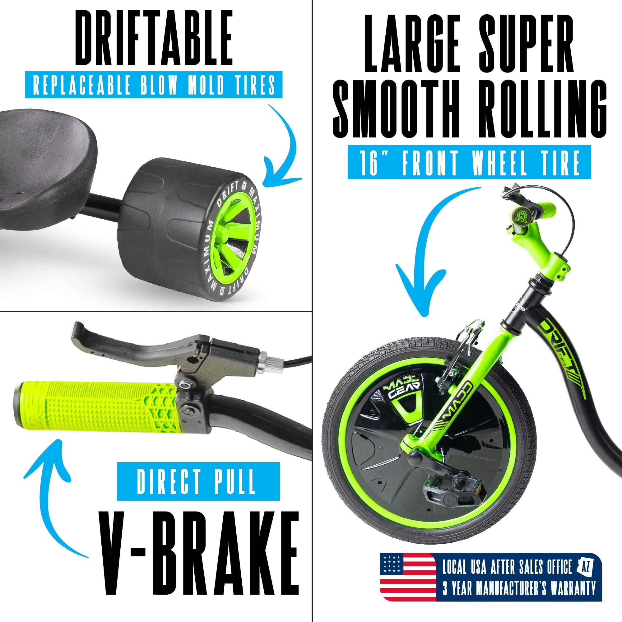 Drift Trike for Kids Ages 5+ with Adjustable Seat and 16″ Front Wheel – Madd Gear