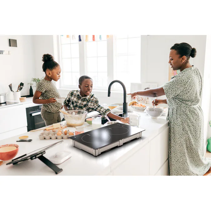- Energy efficient: the induction cooktop dual burner uses 120v that cooks food by electromagnets- that means that no heat is lost between the cooking surface and the pot making it energy efficient and cooks a lot easier and faster and fun