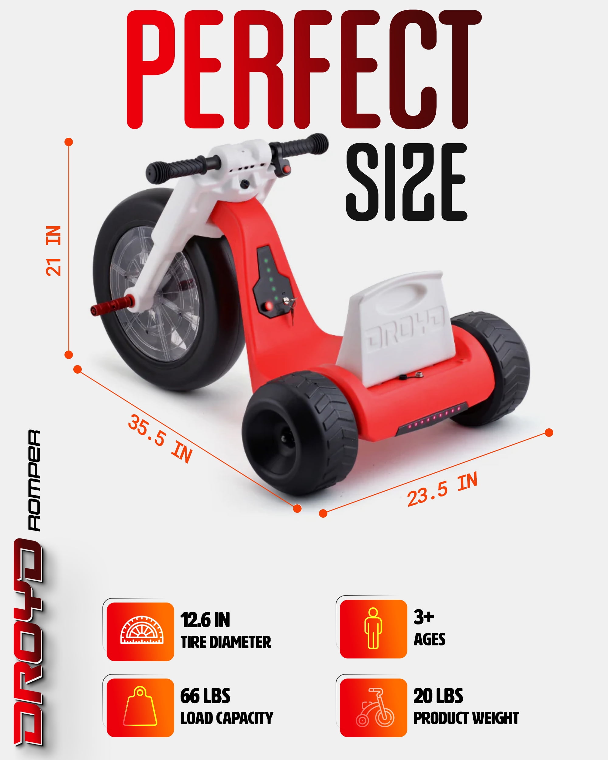 Droyd Romper Kids Electric Tricycle – Motorized Vehicle with Parental Speed Control, 24V Battery