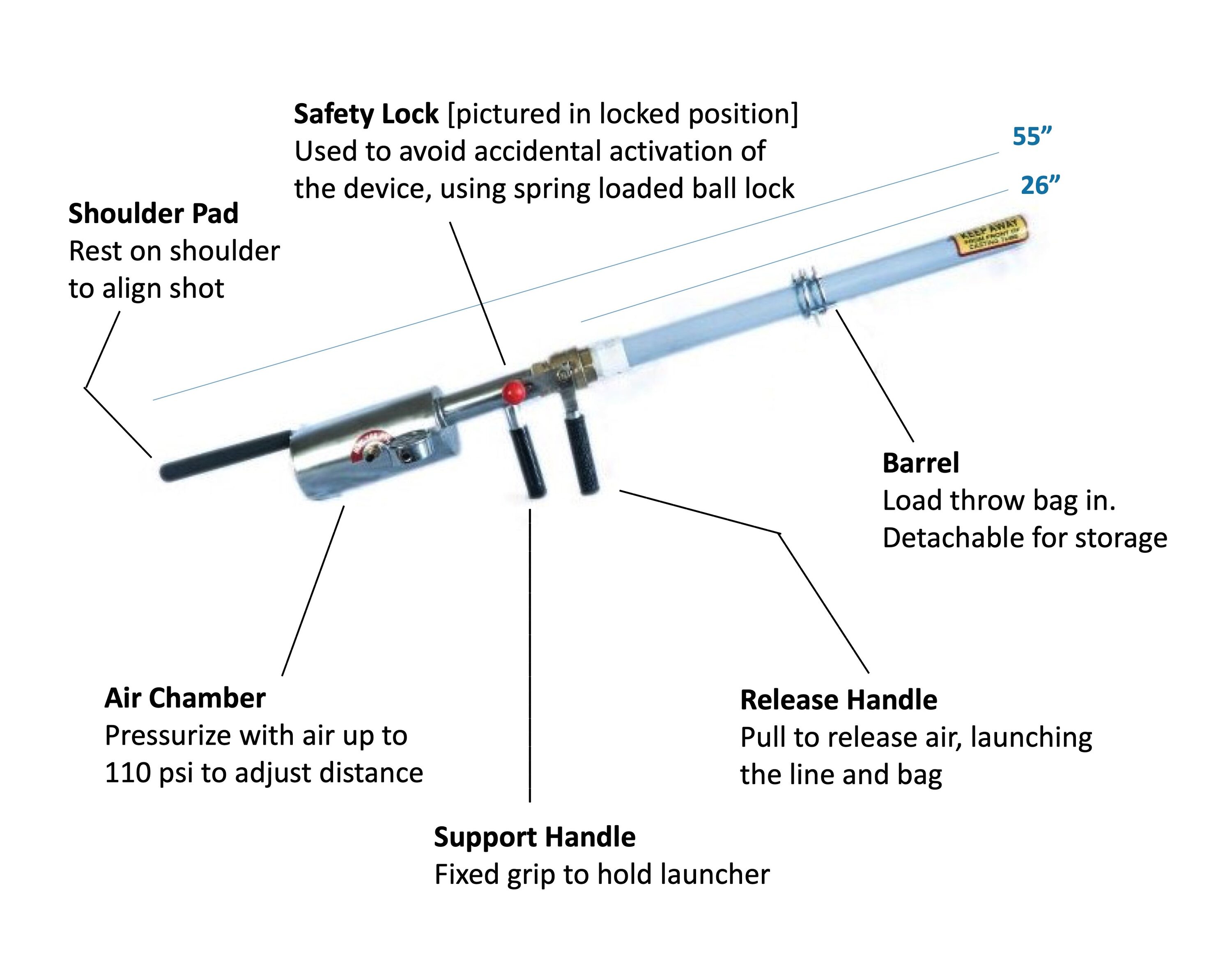 Contents Include: Throwline launcher unit, throw weight, throw line