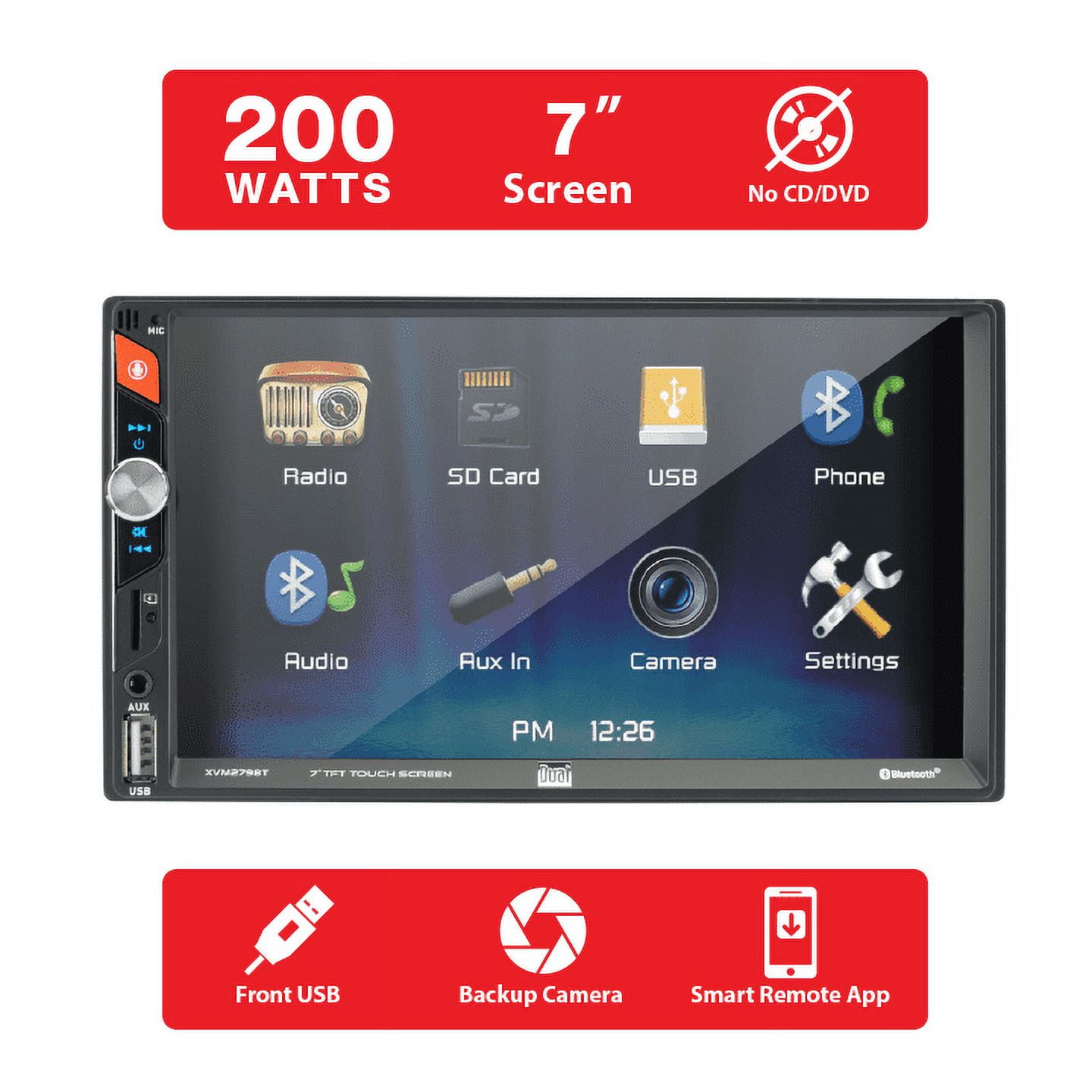 Dual Electronics 7″ LED Touchscreen Car Stereo Receiver – Double DIN, Bluetooth, USB – XVM279BT (New)