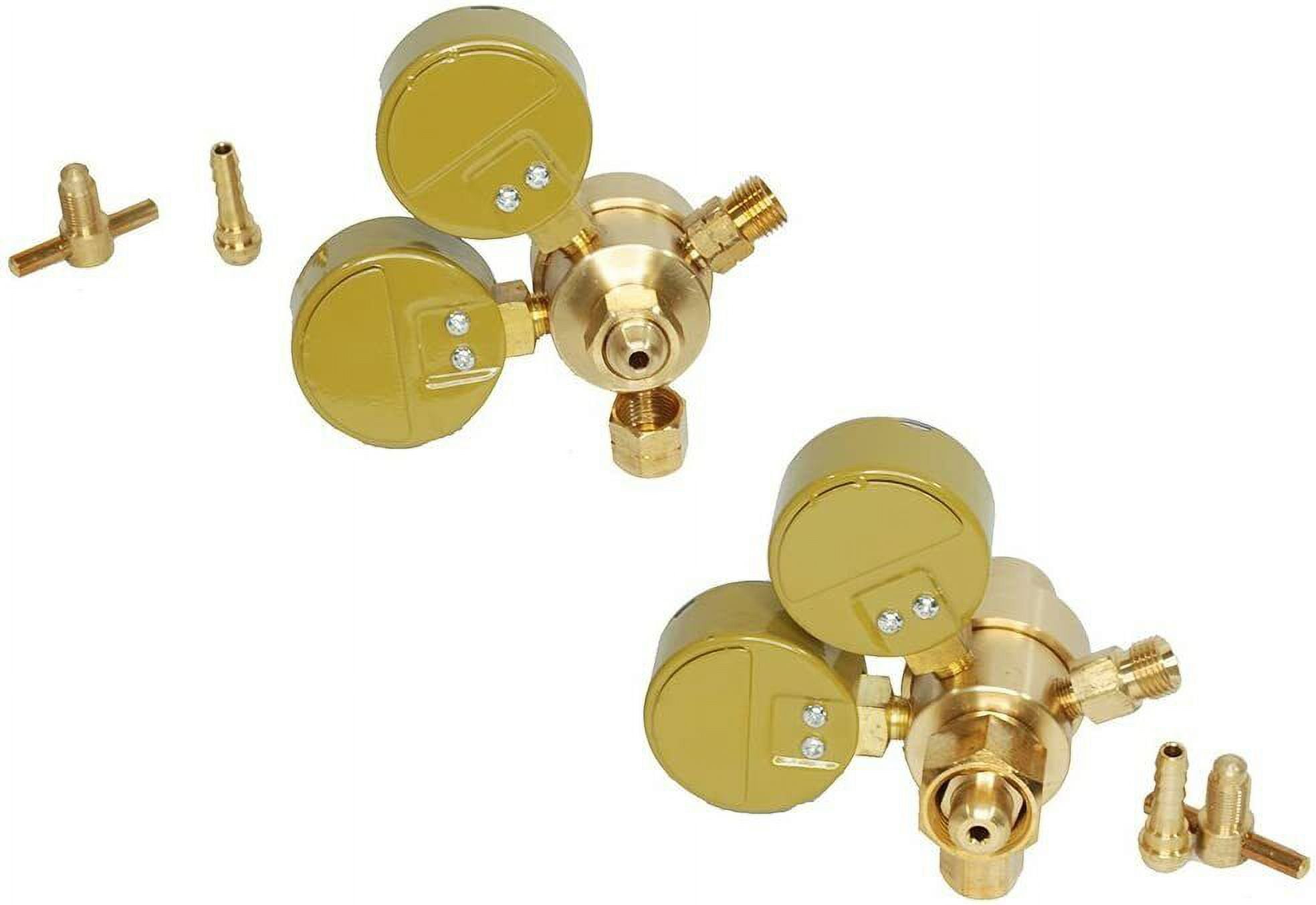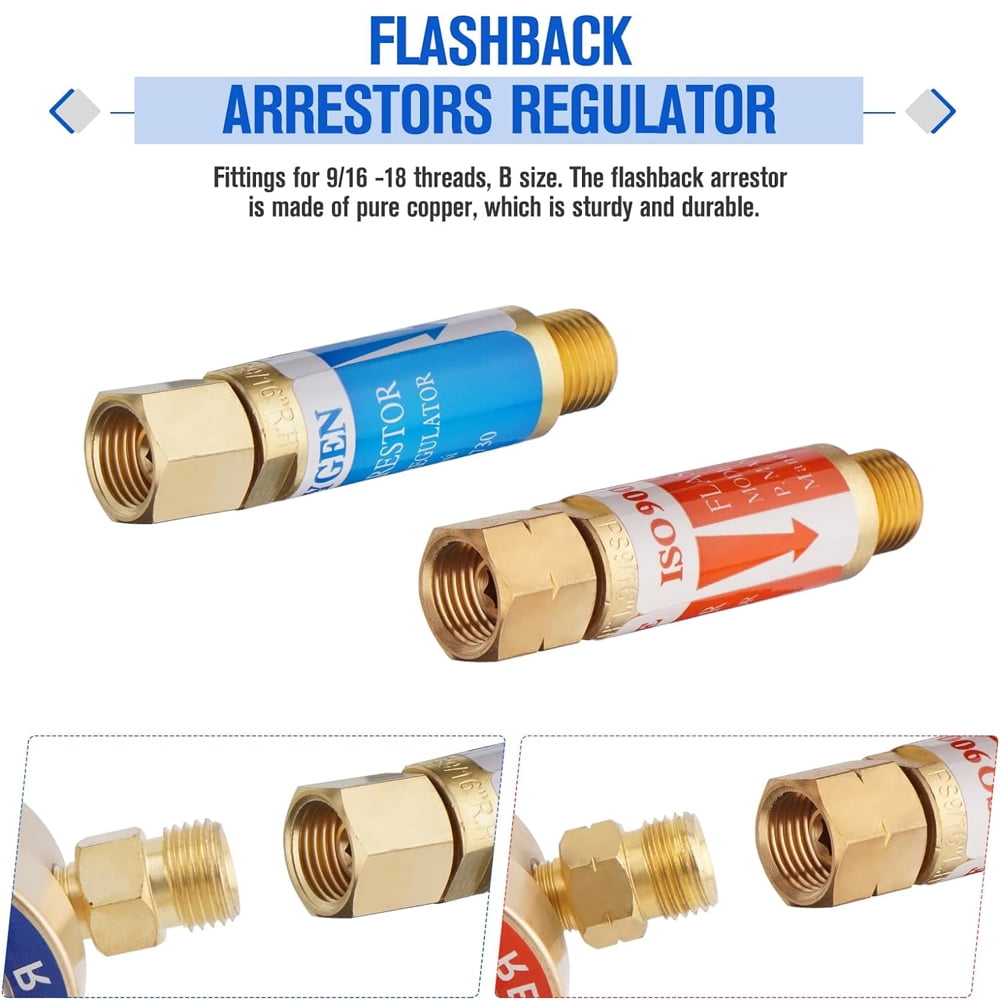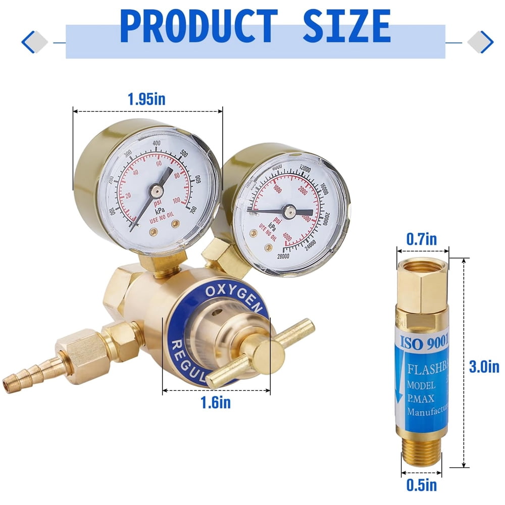 Dual Gauge Oxygen & Acetylene Regulator with Flashback Arrestors, End 9/16-18 Threads B Size for Welding Victor Gas Torch Cutting Replacement Oxygen and Acetylene Regulators for Victor Style Welding Kits. Single Stage Regulator with 2″ Diameter Gauges. It has a CGA540 Oxygen and CGA200 Acetylene Rear Entry. Compatible with Victor Type Kit