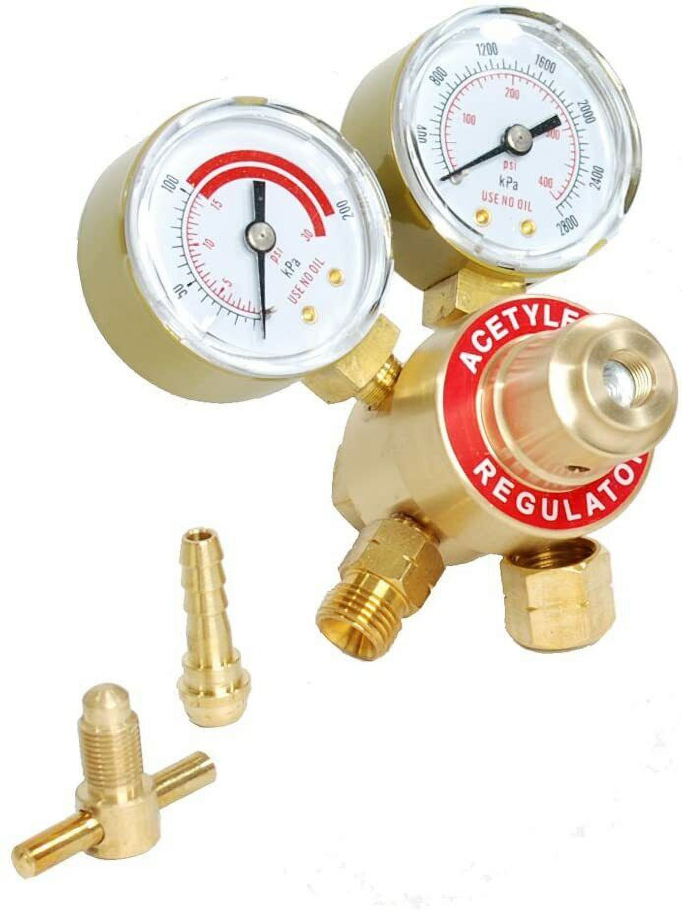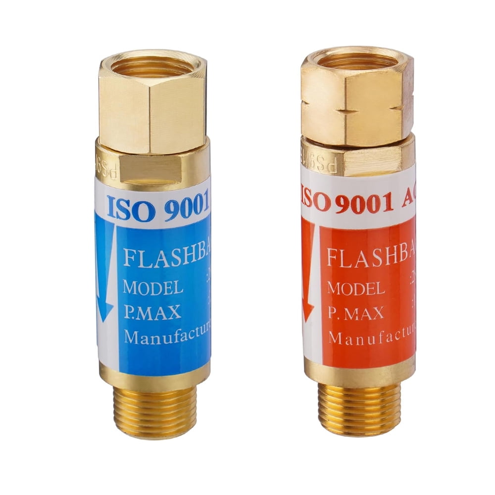 Description: These Oxygen and Acetylene Regulators easily replace the worn-out regulators in your welding kit. An ideal item to have on hand for any welder. Specifications: Material: Brass Oxygen Inlet: 0-4000 PSI Acetylene Inlet: 0-400 PSI Oxygen Outlet Pressure: 0-100 PSI Acetylene Outlet Pressure: 0-30 PSI Oxygen Fitting: CGA540 (Regulator fits small bottle tanks) Acetylene Fitting: CGA200 (Regulator fits small bottle tanks) Compatibility: Fits Most Victor Style Torch Sets Brand: Bang4Buck Condition: 100% Brand New Flashback Arrestors: ??APPLICATION: For installation between the regulator and hoses ??SPECIFICATION: Standard “B” Fittings (9/16″- 18 UNF) fits most twin hoses ??NOTE: The acetylene arrestor in this set can also be used for Propane or Mapp gas. ??CHECK VALVE: The one-way valve design allows the flashback arrestor to that gas can merely flow in one direction instead of back flow to prevent accidents. ??DURABLE MATERIAL: The flashback arrestor is formed by pure copper, which is sturdy and durable. The maximum bearing pressure of oxygen check valve is 20bar/290PSI. The maximum bearing pressure of acetylene check valve is 1.5bar/21PSI. Package Includes: 1x Oxygen Regulator 1x Acetylene Regulator 2 x Flashback Arrestors