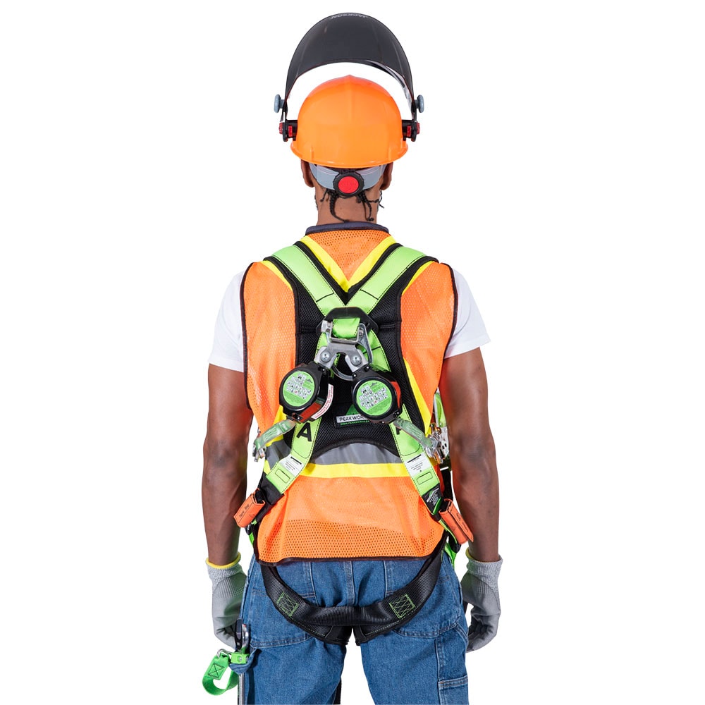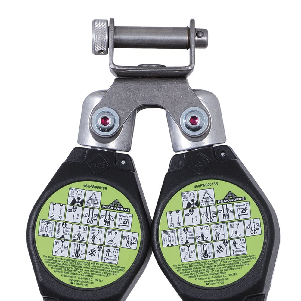 With an inertial breaking mechanism that locks into place, self-retracting lifelines are fall protection devices that immediately stop a fall within a few inches; Made from lightweight aluminum housing for maximum operator comfort and efficiency. The cable retracts to eliminate slack in the lifeline and offers workers a great amount of mobility from the anchor point; This 6 Ft. dual self-retracting lifeline is manufactured using 0.1 In. thick, 1 In. wide Dyneema Core, providing maximum protection. Ergonomically designed with rebar hooks for direct connection to most harnesses, our twin leg SRL features a centrifugal braking system, steel carabiner, steel snap hooks, a visual load indicator and a 310 Lb. combined weight capacity. Certified for use during vertical or horizontal applications, this product meets ANSI Z359.14-2012 and CSA Z259.2.1 standards and are used for many industrial and recreational functions, like rock climbing, emergency rescue, construction etc. Established in 2008, PeakWorks has been passionate about providing workers peace of mind when working at heights. As a full service fall protection provider, our focus on productive solutions combines pioneering services with feature-rich products and safety. Our product portfolio includes harnesses, belts, rescue products, retractable horizontal lifelines, and more. As active members of both the ANSI and CSA standards committees, we are committed to providing the safest and most advanced fall protection products in the industry.