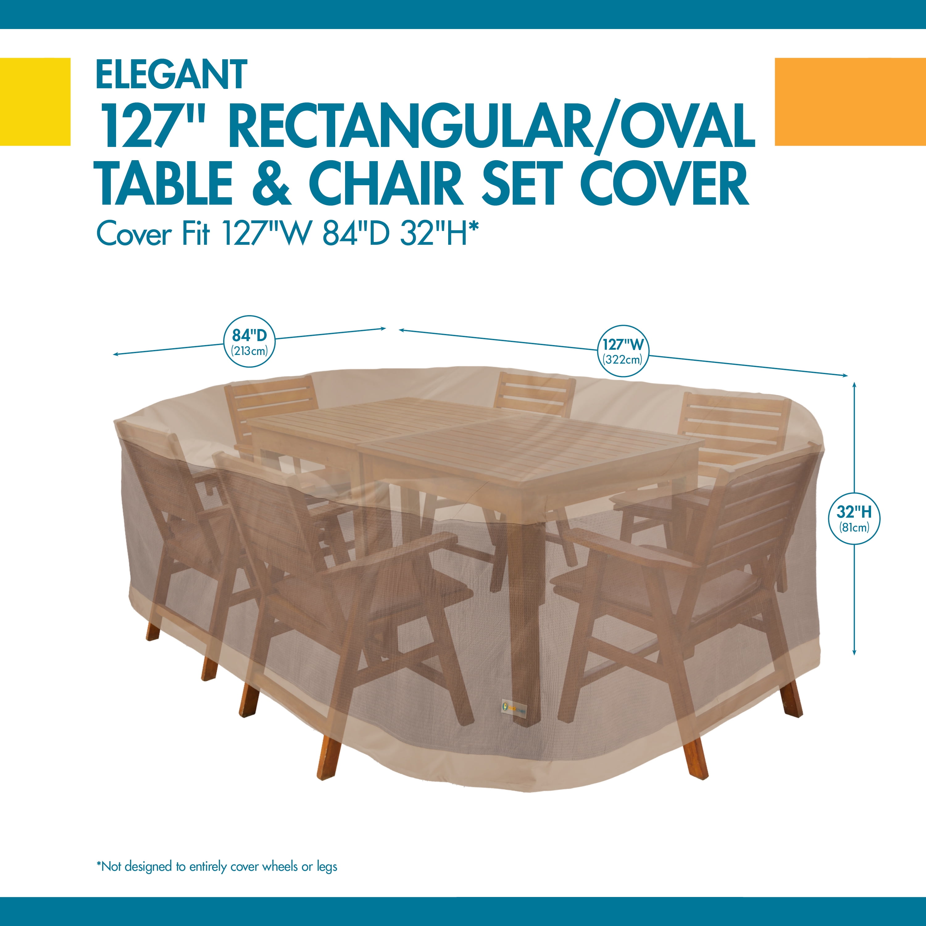 PATIO COVERS: Fits rectangular/oval patio tables & 6 patio chairs 127″L x 84″W x 32″H Two-year limited warranty 100% Waterproof – Ideal for high moisture climates Seam sealer tape applied during manufacturing process prevents water penetrating the cover at the seams UV stability added during material production to reduce fading A combination of nylon straps with side-release buckles firmly secures cover in place Duck Covers recommend you store cushions separately when not in use PATIO COVERS: Fits rectangular/oval patio tables & 6 patio chairs 127″L x 84″W x 32″H Two-year limited warranty Water-resistant fabric is ideal for high moisture climates Seam sealer tape applied during manufacturing process prevents water penetrating the cover at the seams UV stability added during material production to reduce fading A combination of nylon straps with side-release buckles firmly secures cover in place Duck Covers recommend you store cushions separately when not in use