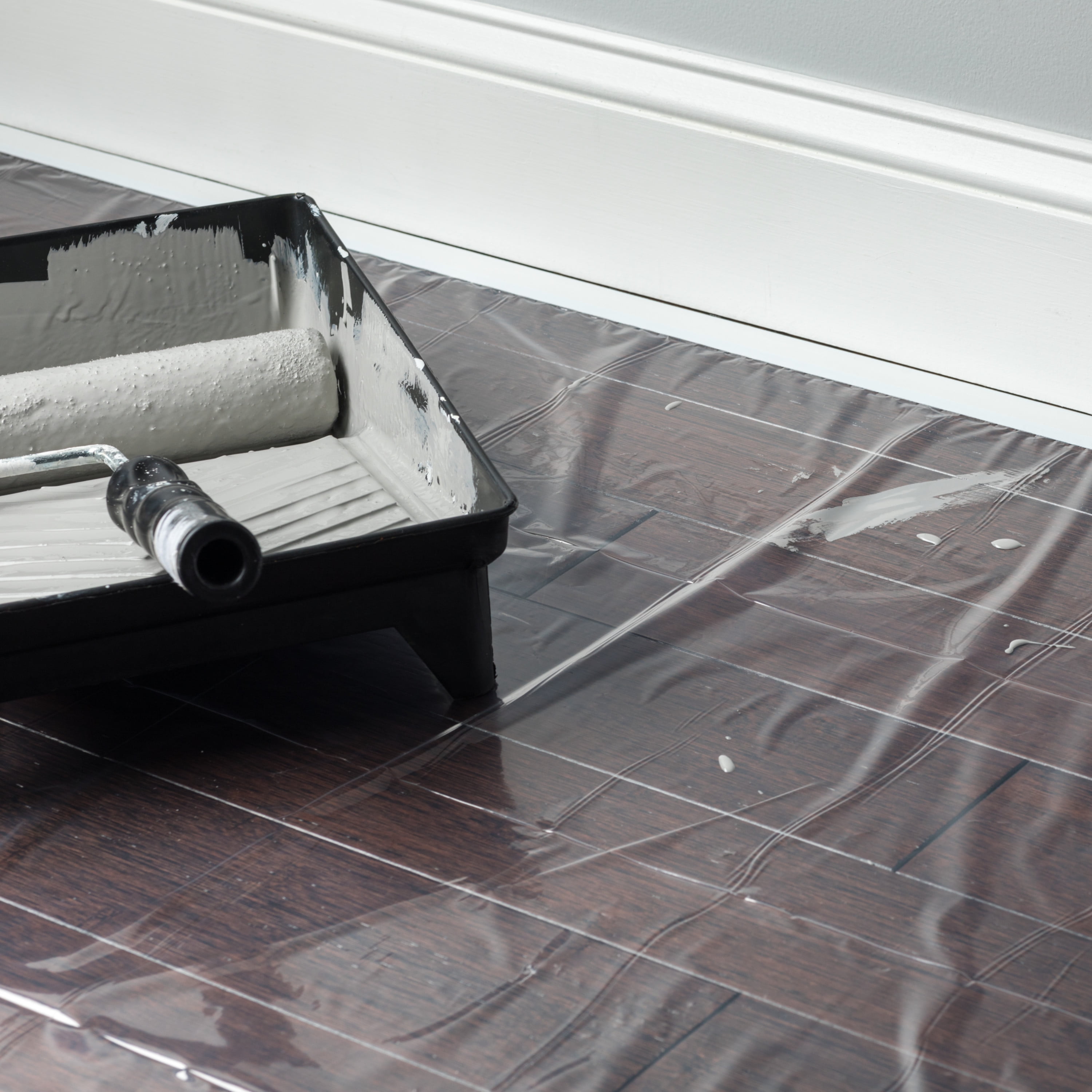Duck Pre-Taped Masking 22 in. x 100 ft. Clear Polyethylene Dropcloth, 6 pack Works on hard, durable surfaces like glass, wood and tile 4-week clean removal Indoor/outdoor use Plastic tube and cap for easy storage