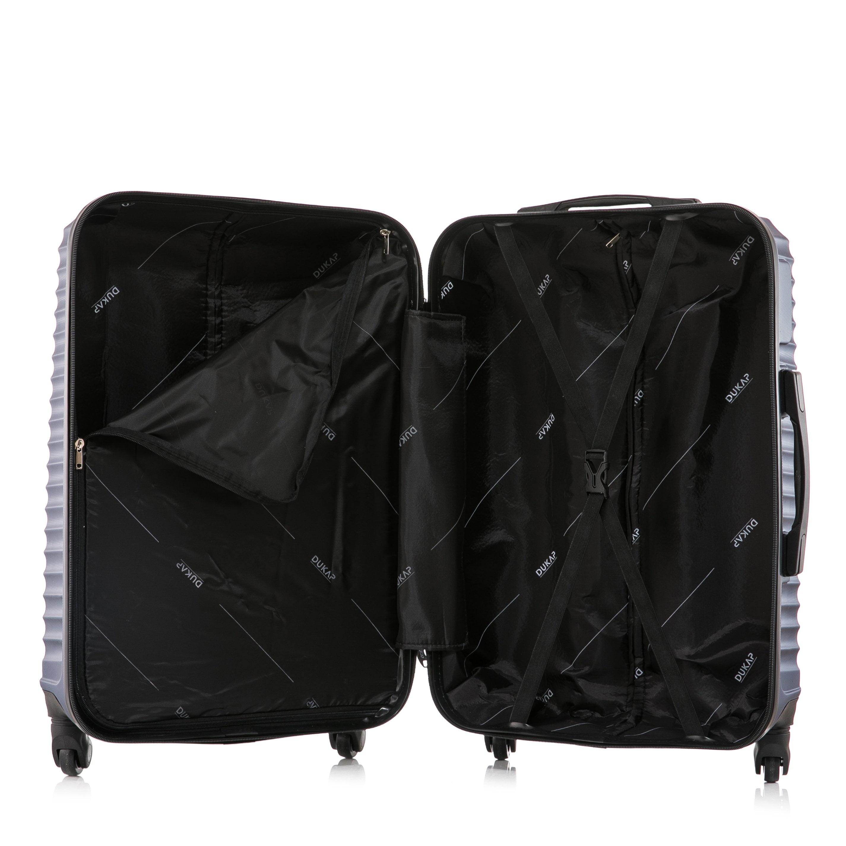STURDY AND LIGHTWEIGHT: The lightweight shell of the travel suitcase makes this hard luggage easy to carry anywhere, It only weighs 5.73, 6.83, and 8.59 pounds respectively and is your perfect companion for any trip DURABLE AND TOUGH: The hard-flex body with the micro-diamond finish on the travel 3 piece set hard suitcase makes them durable, strong, and stylish, with a scratch and water-resistant surface ORGANIZED AND SPACIOUS: The 20, 24, 28 inch hardside luggage set is perfect for short and long trips, The suitcase set meets all the standards for most domestic and international flights across the world MANEUVERABLE AND CONTROLED: The trolley of the 3 pieces set suitcase has a push-button which makes the hardshell luggage easy to handle. The GEL handles provide a comfortable lifting HASSLE FREE TRIP: The 4 spinner luggage wheels from rolling luggage are silent with a 360° movement and max stability, DUKAP 3 Piece Set suitcase will make you travel with comfort and style