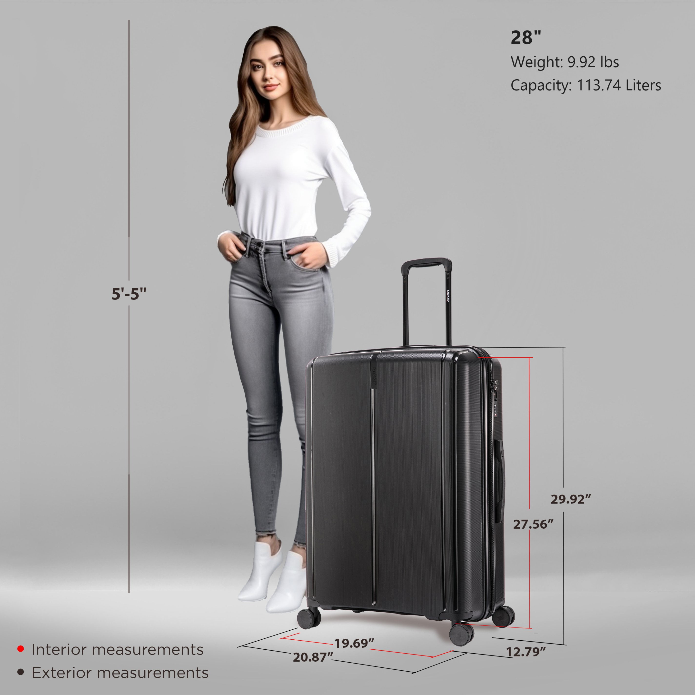 STURDY AND LIGHTWEIGHT: The lightweight shell of the travel suitcase makes this hard luggage easy to carry anywhere, It only weighs 11 pounds and is your perfect companion for any trip DURABLE AND TOUGH: The hard-flex body with the micro-diamond finish on the extra large checked bag hard suitcase makes it durable, strong, and stylish, with a scratch and water-resistant surface ORGANIZED AND SPACIOUS: The 32-inch hardside extra-large checked suitcase luggage bag is perfect for long trips, The extra-large checked luggage meets all the standards for most domestic and international flights across the world MANEUVERABLE AND CONTROLED: The trolley of the extra large checked suitcase has a push-button which makes the hardshell luggage easy to handle. The GEL handles provide a comfortable lifting HASSLE FREE TRIP: The 4 spinner luggage wheels from rolling luggage are silent with a 360° movement and max stability, DUKAP extra-large suitcase will make you travel with comfort and style