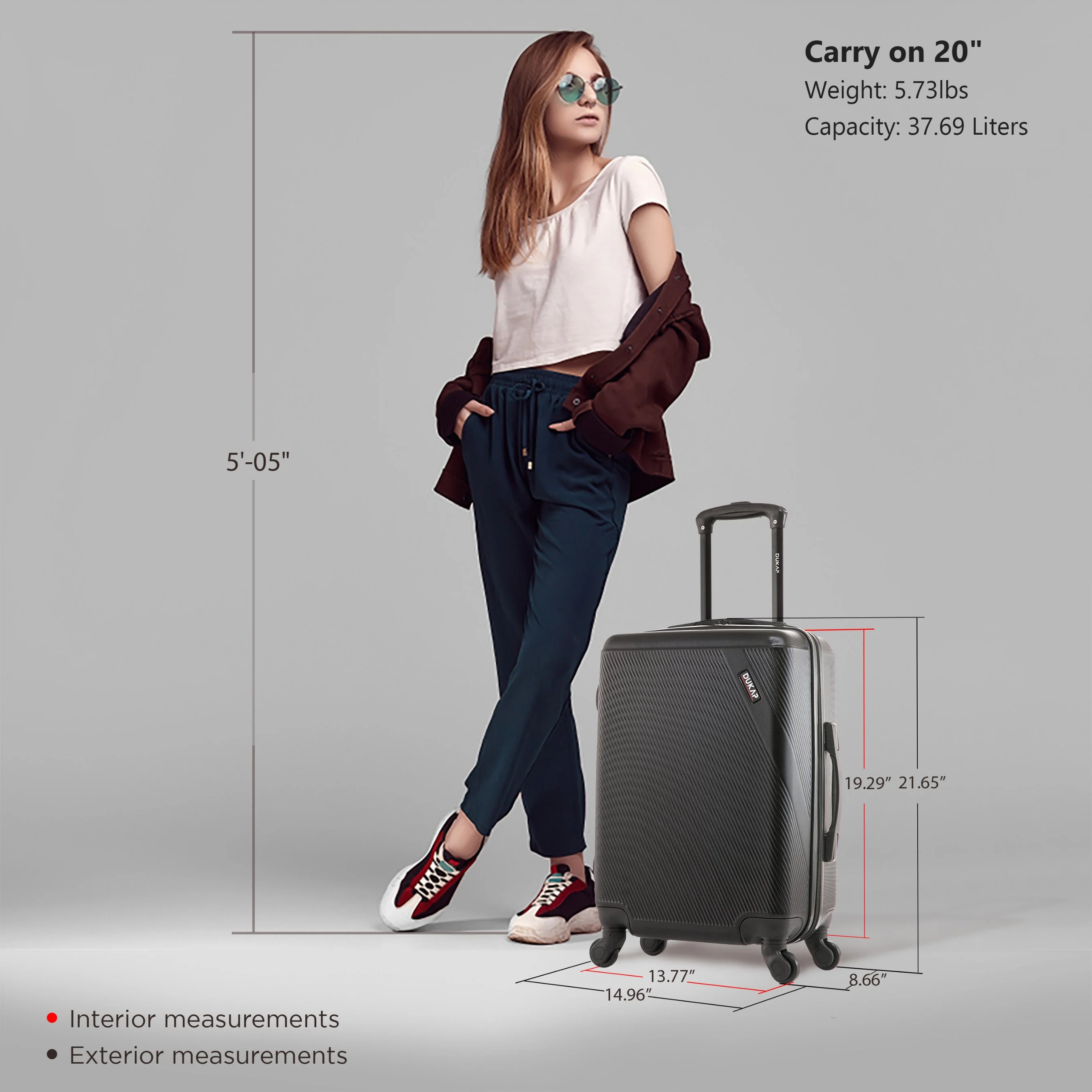 STURDY AND LIGHTWEIGHT: The lightweight shell of the travel suitcase makes this hard luggage easy to carry anywhere, It only weighs 5.73 pounds and is your perfect companion for any trip DURABLE AND TOUGH: The hard-flex body with the micro-diamond finish on the carry-on bag hard suitcase makes it durable, strong, and stylish, with a scratch and water-resistant surface ORGANIZED AND SPACIOUS: The 20-inch hardside carry-on suitcase luggage bag is perfect for traveling with it on the plane, The carry-on luggage meets all the standards for most domestic and international flights across the world MANEUVERABLE AND CONTROLED: The trolley of the carry-on suitcase has a push-button which makes the hardshell luggage easy to handle. The GEL handles provide a comfortable lifting HASSLE FREE TRIP: The 4 spinner luggage wheels from rolling luggage are silent with a 360° movement and max stability, DUKAP carry on suitcase will make you travel with comfort and style
