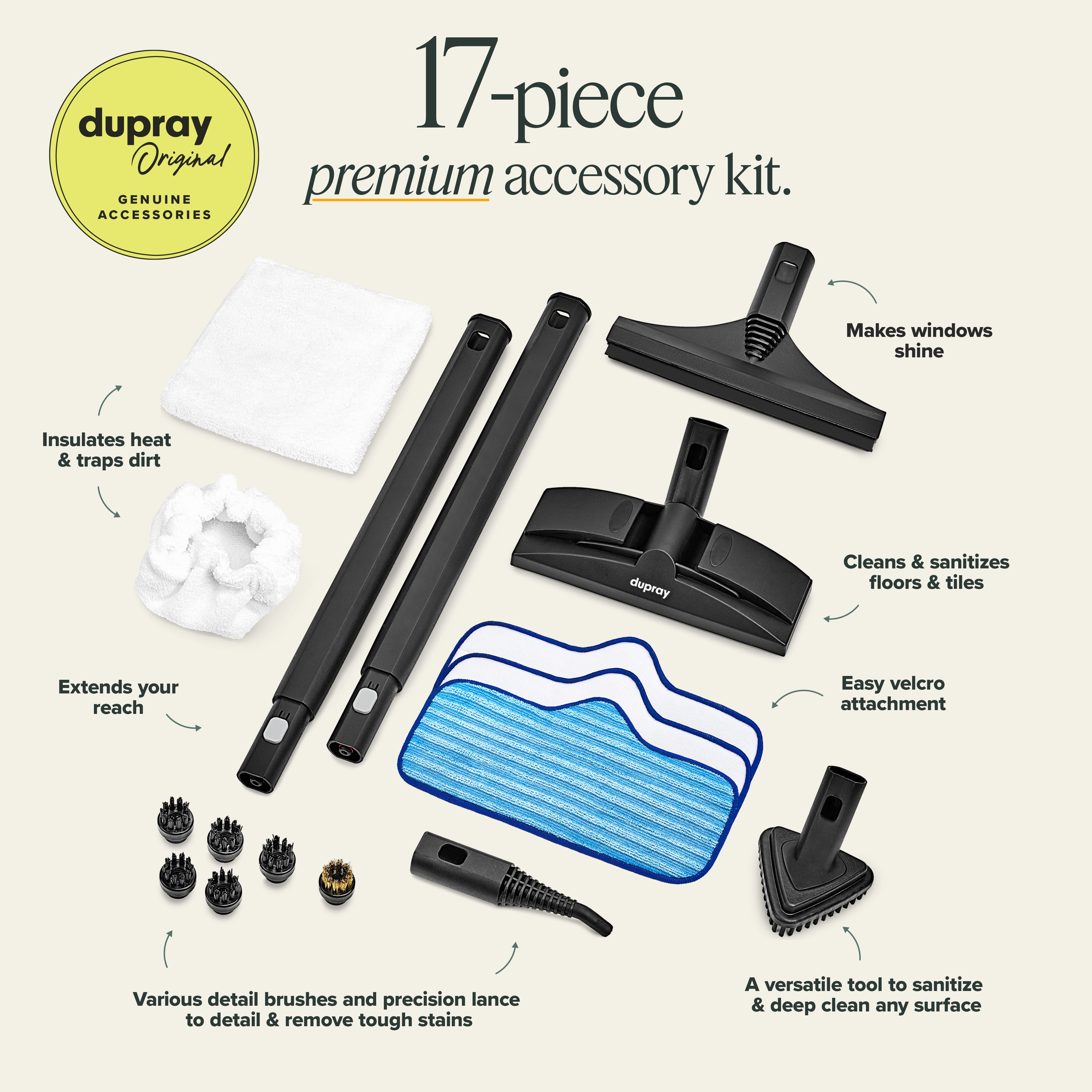 Dupray Neat Steam Cleaner 17-Piece Kit – Multi-Purpose Cleaner for Fabrics, Floors, Grout, Kitchens, and Bathrooms