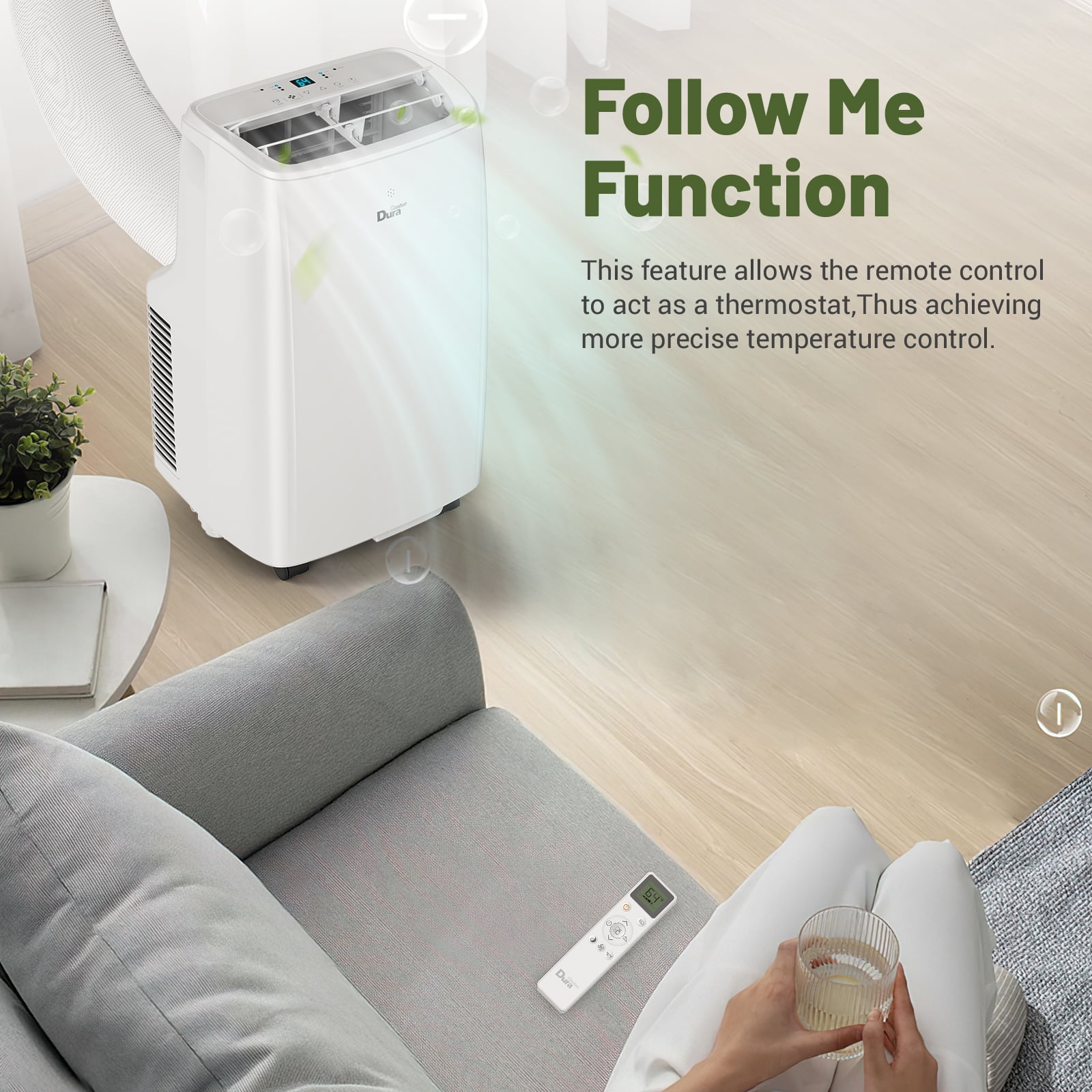 R32 New Eco-Friendly Refrigerant – We use R32 new eco-friendly refrigerant, which does not contain fluorine and does not produce ozone. Compared with air conditioners using refrigerant R-22, it can reduce power consumption by about 10%. In addition, R-32 has a global warming potential (GWP) that is one-third lower than R-22 and R-410A THE ENVIRONMENT YOU NEED, AT YOUR FINGERTIPS – Convert every place you go to with a comforting and chilly ambience with our portable home AC. With 1190W rated power and 11000 BTU (ASHRAE) / 7,250 BTU (SACC) cooling power, the cold air can cover a room up to 300 sq ft!, saving time and money while you enjoy the temperatures you need. EFFORTLESS OPERATION – Enjoy the simplicity and comfort of digital controls. The portable AC features an easy-to-read LED display and includes a compact remote control (batteries included) to easily set the time, temperature, and mode, from across the room.With a 24-hour adjustable timer, you can set the air conditioner to cool your room to a temperature between 64°F-90°F, and you can choose from 3 modes: cooling, dehumidification, and fan. AUTO EVAPORATION TECHNOLOGY – This technology works by drawing in warm air from the room, passing it over a wet cooling pad, and then releasing the cooled air back into the room. The water from the cooling pad is then recycled and reused, making the system highly efficient. The Auto Evaporation Technology also eliminates the need for drainage and the need to empty a condensate tank. This makes the portable air conditioner more convenient and easier to use. AFTER-SALES WARRANT- All of DuraComfort Portable Air Conditioner Units are covered with 30-Days Money Back, 1 Year Warranty and lifetime expert tech support, UL safety certified and color packaging for advanced product protection during delivery, so you can rest assured to buy our air conditioners. Specifications Rated Cooling Input Power: 1190W SACC (Btu/h): 7250BTU ASHRAE Cooling Capacity(Btu): 11000BTU Rated Voltage /Frequency: 115V/60Hz Noise Level: <53dB Temp. Setting (°F): 64–90°F (18–32°C) Electric Cord length: 5.1 fts Gross Weight: 56.5lbs. Product Dimensions: 15.3"x14.0"x24.8" LxWxH Suitable Area: 300 sq.ft 1 x Potable Air Conditioner 1 x Remote control 1 x Instructions 3 x Window seal plates 1 x Exhaust duct connector 1 x Exhaust duct 2x Acoustic Foam