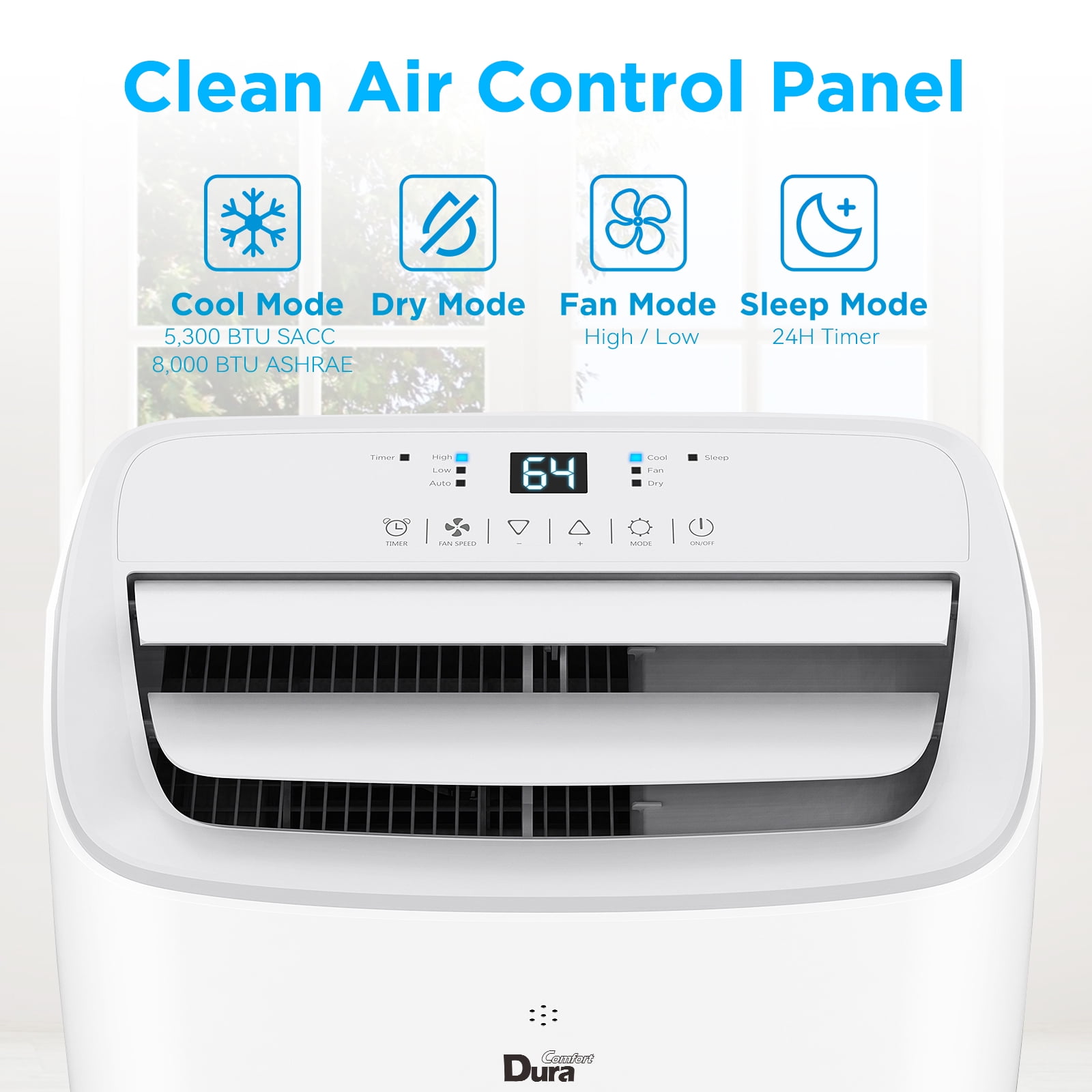 DuraComfort Portable Air Conditioner, 5,300 BTU Dual Motor, for Rooms up to 240 sq ft, Cooling, Dehumidifier, Fan(8000BTU ASHRAE)