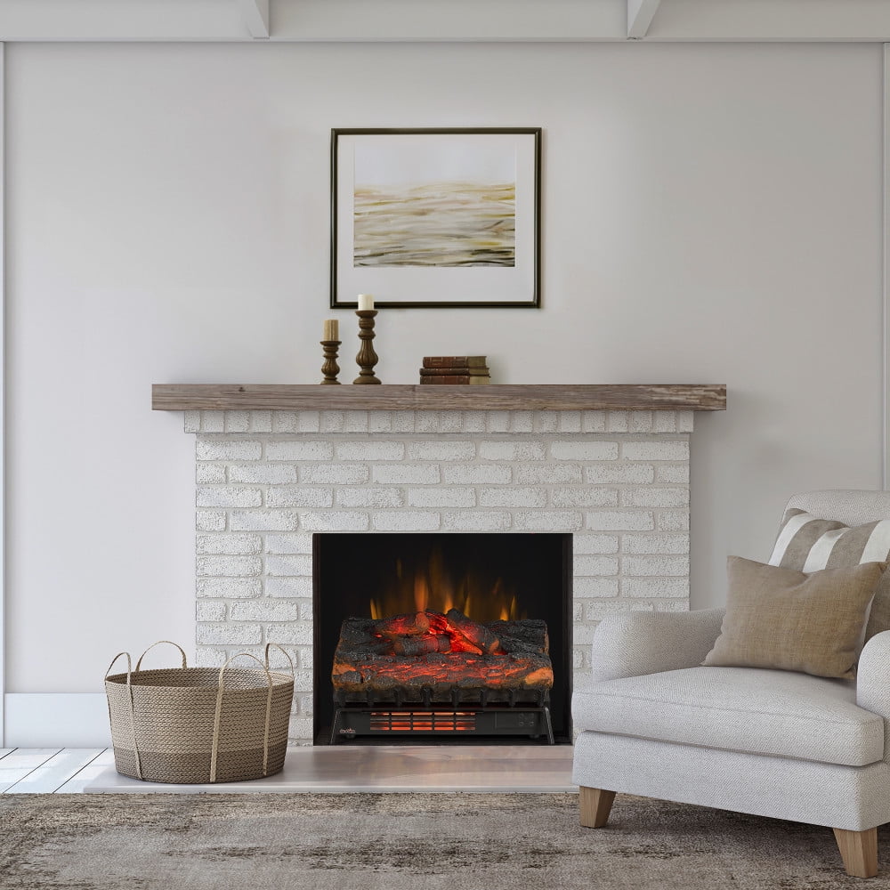 Place this Duraflame® Infrared Quartz Electric Log Set Heater (DFI056) into an existing fireplace and watch the dancing flames project onto the back for a beautiful display. The realistic rustic pine log set and ember bed sit in a fire grate and feature a rolling flame effect that works with or without heat. Flame effect is adjustable with five brightness settings. Provides up to 1,000 square feet of toasty supplemental heat using 1500W. Control it from anywhere in the room using the included remote control (includes 2 AAA batteries). The product measures 21.3″ W x 11.1″ D x 12.2″ H and weighs 19.36 lbs.