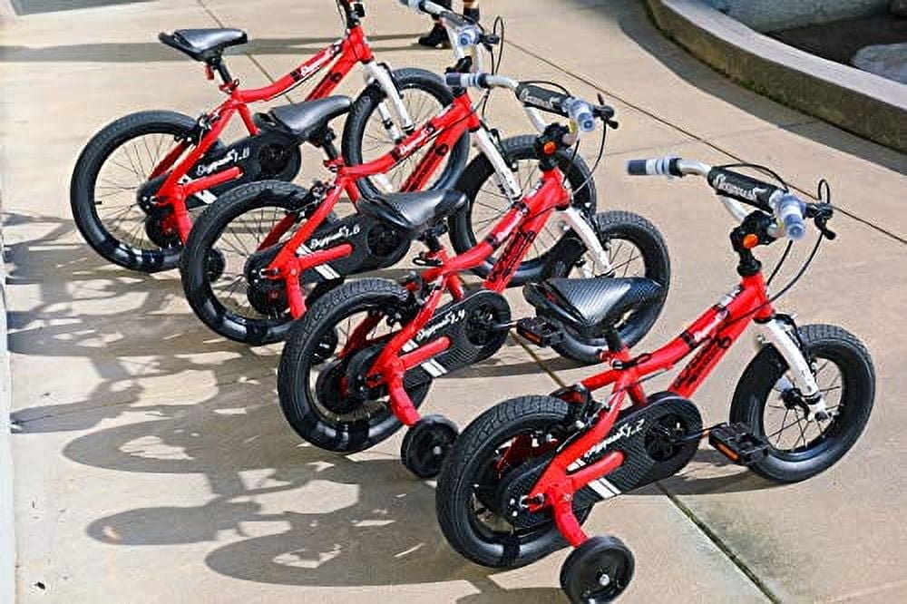 Duzy Customs 14″ Kids Bike – Retro-inspired design with durable BMX-style steel frame for ages 4–7 Quick Assembly – Easy-to-build setup gets kids riding faster with minimal tools required Adjustable Training Wheels – Supports beginner riders as they gain confidence and balance Safe Stopping Power – Equipped with rear coaster brake and front alloy caliper brake for reliable control