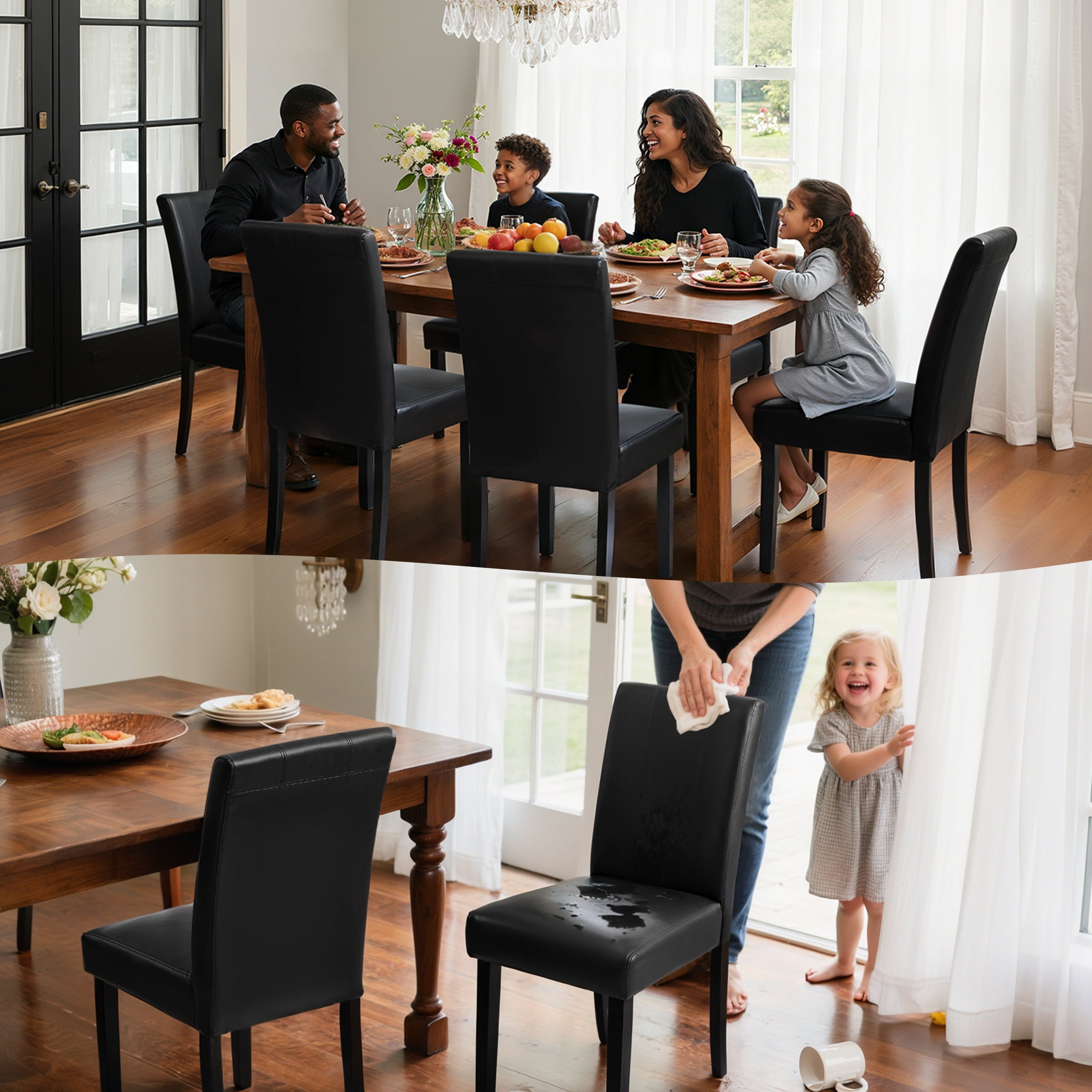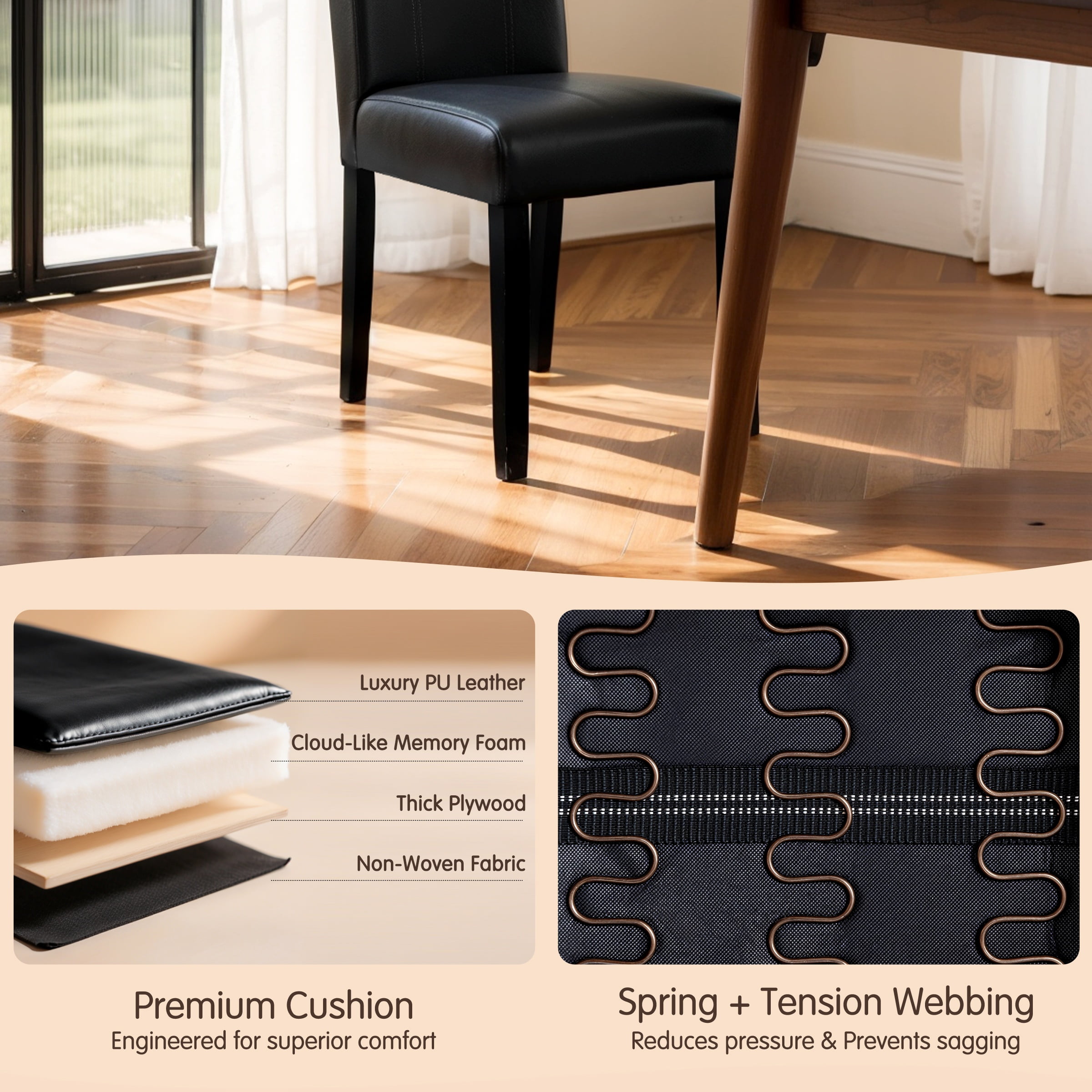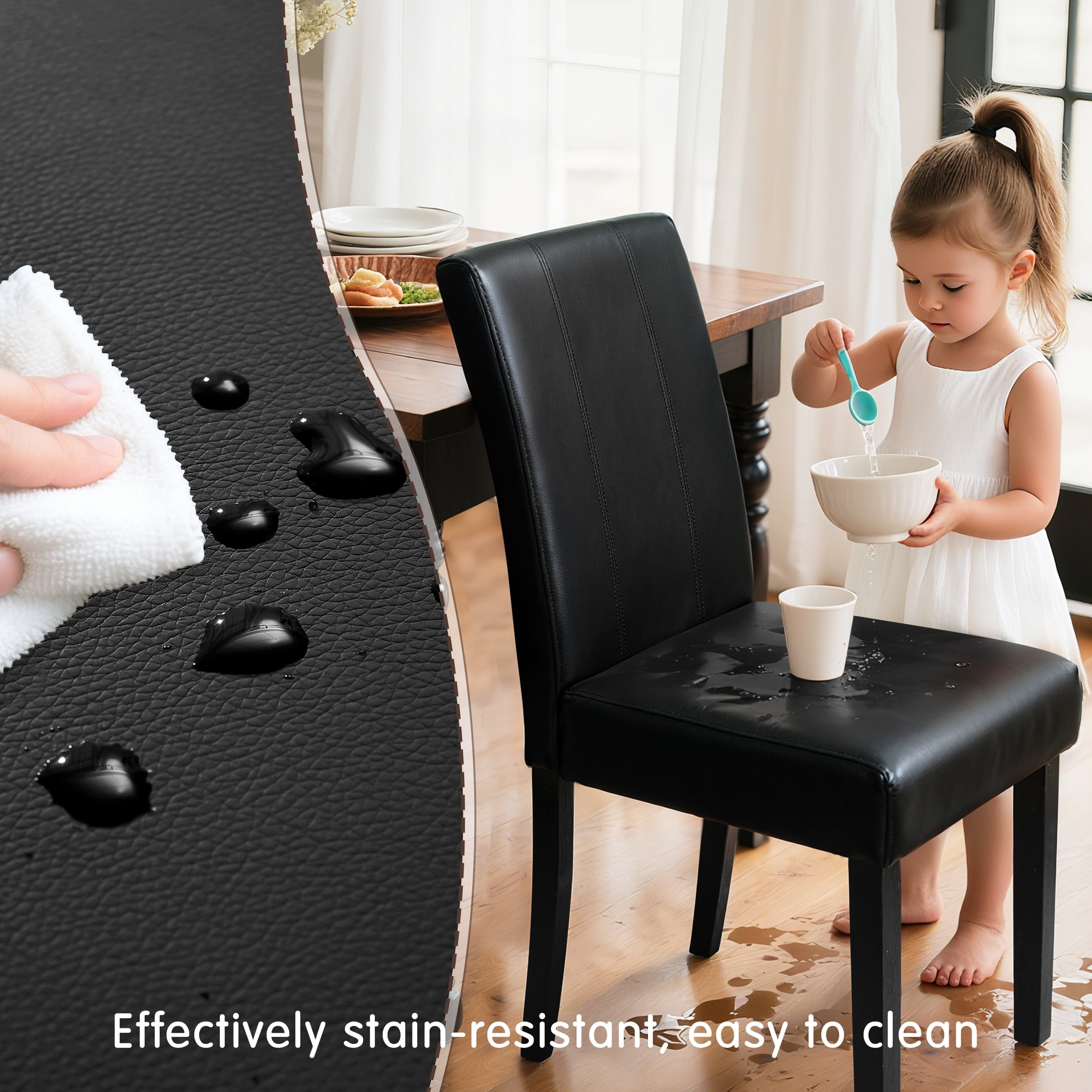 DyFun Modern Upholstered Dining Chairs Set of 4, Faux Leather Parsons Chairs with Upgraded Cushion Comfort for Dining Room, Black