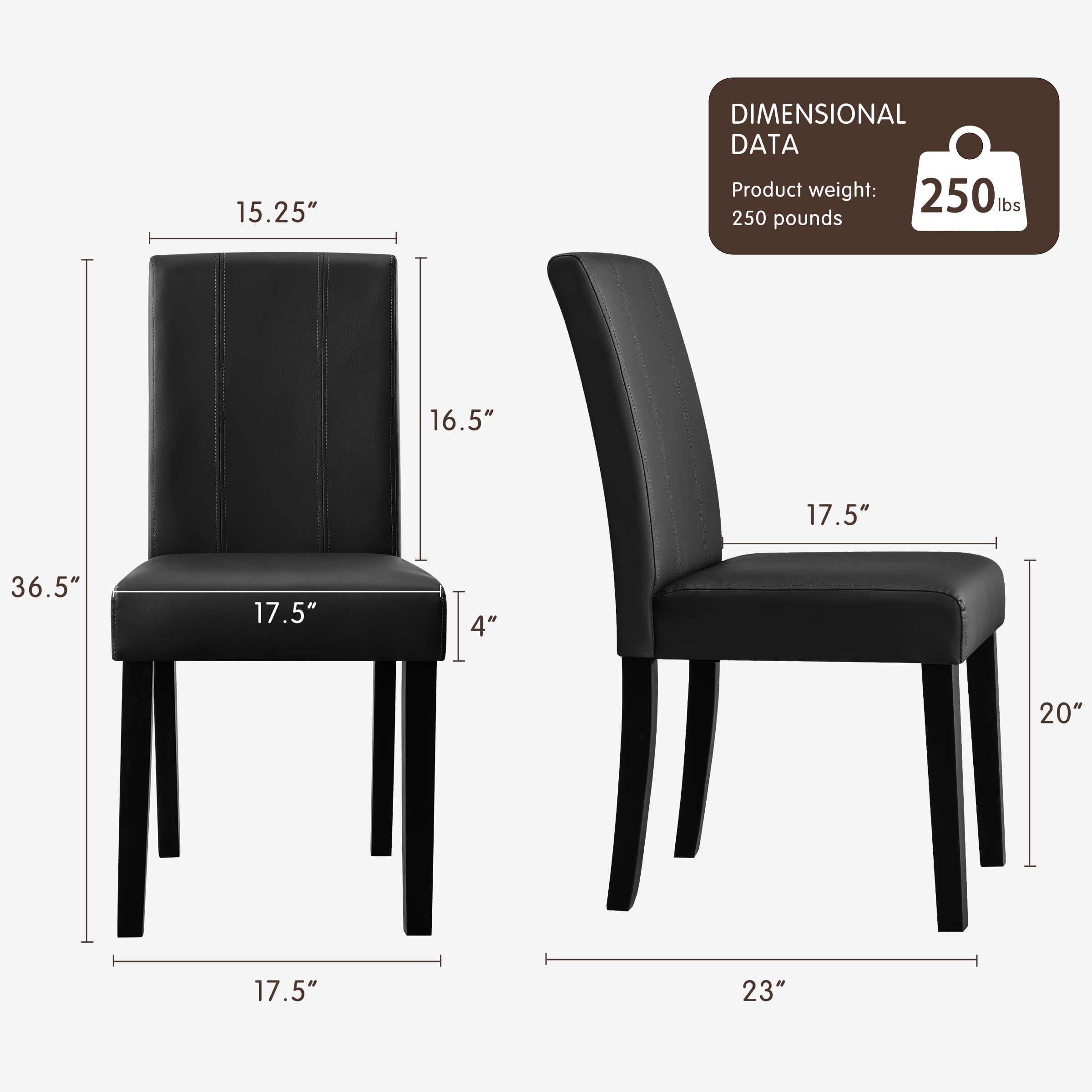 Bring timeless style and comfort to your dining space with the DyFun Modern Parsons Dining Chairs. Designed with a clean armless silhouette and upholstered in matte textured faux leather, these chairs blend effortlessly into modern, minimalist, or transitional interiors. The padded seat and slightly curved back offer everyday comfort, while the espresso-finished solid wood legs provide lasting support and visual warmth. Whether you’re enjoying a quiet dinner at home or hosting guests, these dining chairs provide both function and flair. Available in Black, Brown, Gray, and Ivory, and offered in convenient sets of 2, 4, or 6 — it’s easy to find the perfect fit for your home. Quick 5-Minute Setup:Assemble solo in minutes with the included hardware and instructions — no tools or extra hands needed. Enjoy your new chairs the same day they arrive Supportive Comfort for Everyday Dining:High-density foam cushions offer the ideal balance of comfort and support. Perfect for family meals, work-from-home sessions, or hosting friends Water-Resistant Matte Leather Finish:Upholstered in textured matte PU leather that’s easy to clean and built to last. Resists spills, stains, and daily wear — just wipe and go. Versatile Modern Style:The armless parsons leather chair with sleek stitching blends effortlessly with dining room, kitchen, or office settings — from modern to transitional spaces Sturdy Espresso Wood Base:Crafted with solid espresso-finish wood legs that add a warm contrast and reliable stability. Built to hold up to 250 lbs with ease
