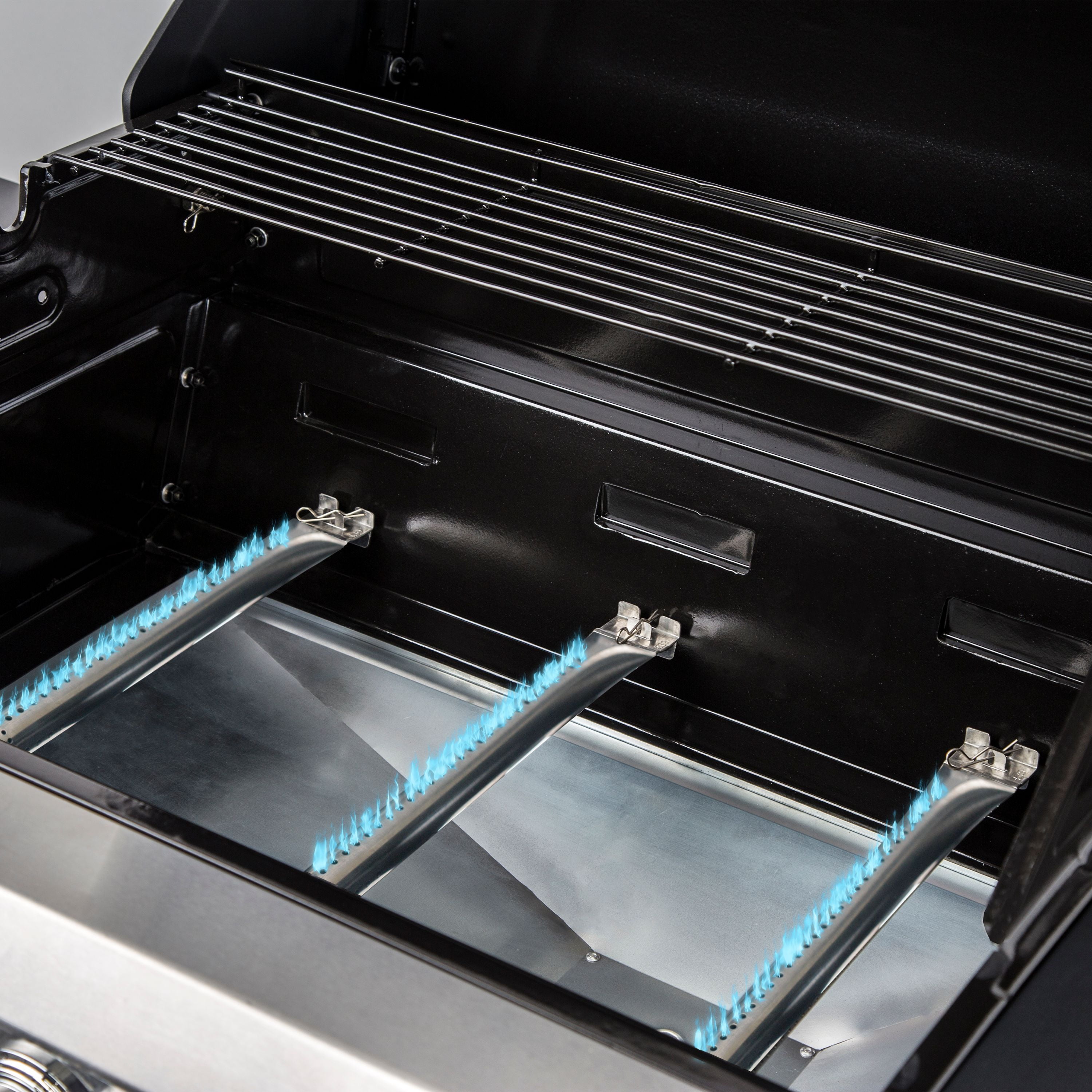 425 Primary square inches of cooking space accommodates up to 18 burgers Includes 542 total square inches of cooking space for cooking veggies Integrated warming rack let’s you keep the quicker cooking food the right temperature EquiHeat technology powers even heat distribution with three stainless steel tube burners, delivering 36,000 total BTUs Gloss porcelain-enameled wire cooking grates provide the ideal surface for retaining and transferring heat directly to food Caster Wheels allow this portable gas grill to be easily moved or stored away Power up the grill hassle-free with the integrated ignition system Uses a 20 lb. propane tank (not included) Protect your grill with a Dyna-Glo DG400C premium cover (sold separately) Red porcelain-coated steel lid with black end caps give this propane grill a sleek design For proper maintenance, regularly clean using only mild dish soap with hot water, nylon cleaning pad, and wire brush Shelves on either side making plating up a breeze