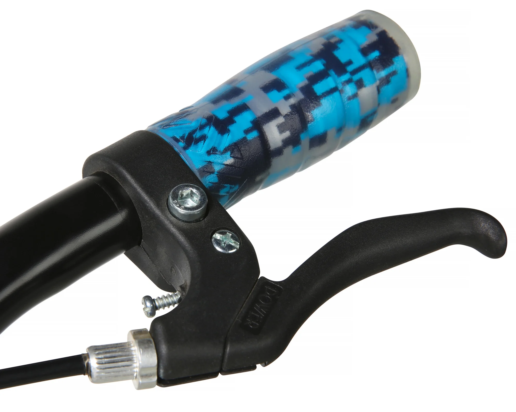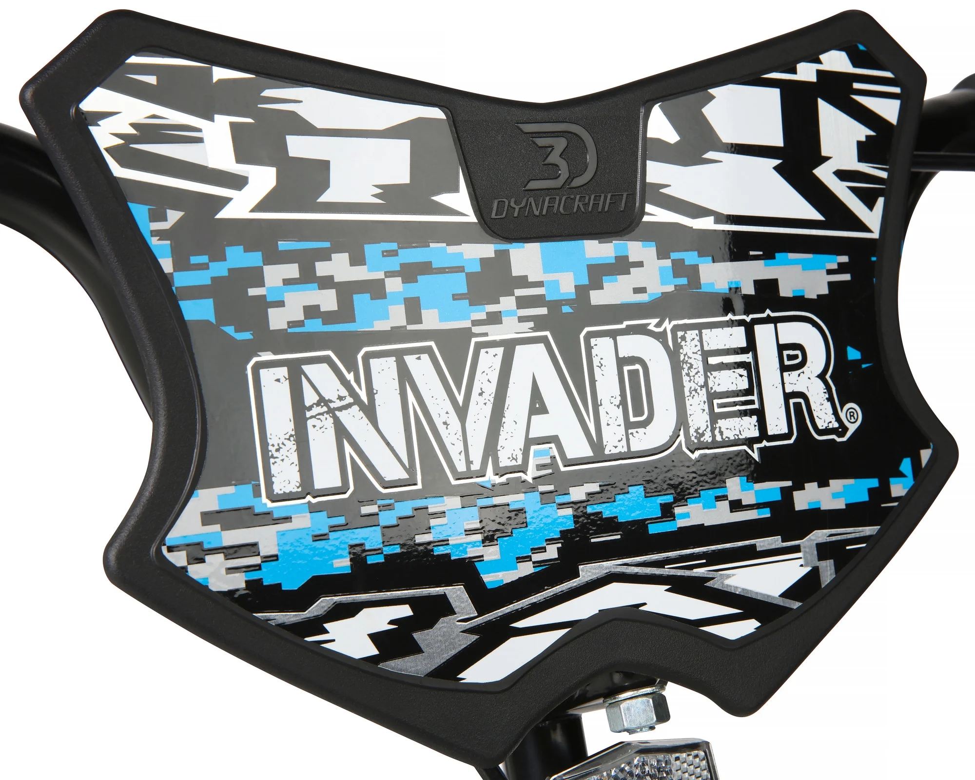 Take over the sidewalks in style with the sleek and bold Dynacraft Invader 16-inch Boys Bike. Featuring an eye-catching blue-and-black Digi-camo paint finish on the frame, handlebar grips, and training wheels, this bike is sure to turn heads. The Invader-branded handlebar shield adds an extra touch of coolness as your young one cruises down the sidewalk. With an adjustable seat post, this bike can grow with your child, while the adjustable/removable training wheels provide an added layer of comfort until they’re ready to ride solo. The rear coaster brake and front hand brake make stopping smooth and easy, ensuring your child’s safety and confidence. Get ready to command attention with the radical Dynacraft Invader 16-inch Boys Bike.