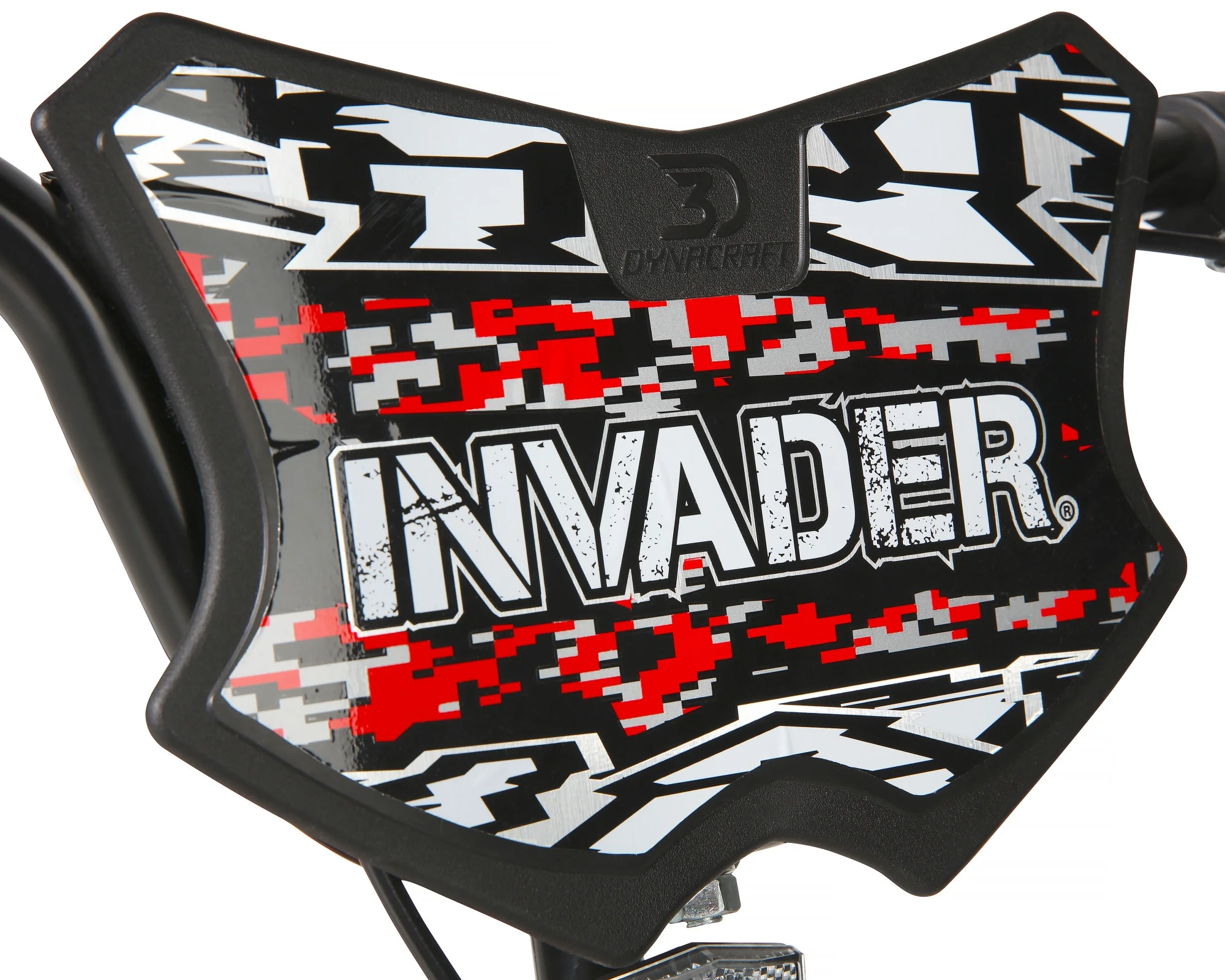 Take over the sidewalks in style with the sleek and bold Dynacraft Invader 16-inch Kids Bike. Featuring an eye-catching red-and-black Digi-camo paint finish on the frame, handlebar grips, and training wheels, this bike is sure to turn heads. The Invader-branded handlebar shield adds an extra touch of coolness as your young one cruises down the sidewalk. With an adjustable seat post, this bike can grow with your child, while the adjustable/removable training wheels provide an added layer of comfort until they’re ready to ride solo. The rear coaster brake and front hand brake make stopping smooth and easy, ensuring your child’s safety and confidence. Get ready to command attention with the radical Dynacraft Invader 16-inch Boys Bike.