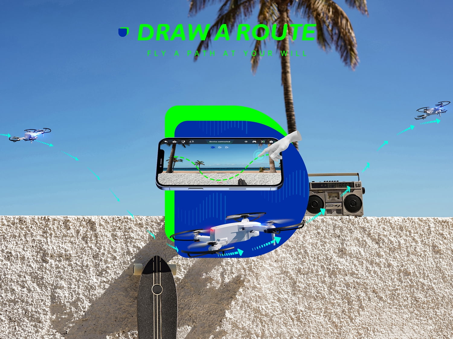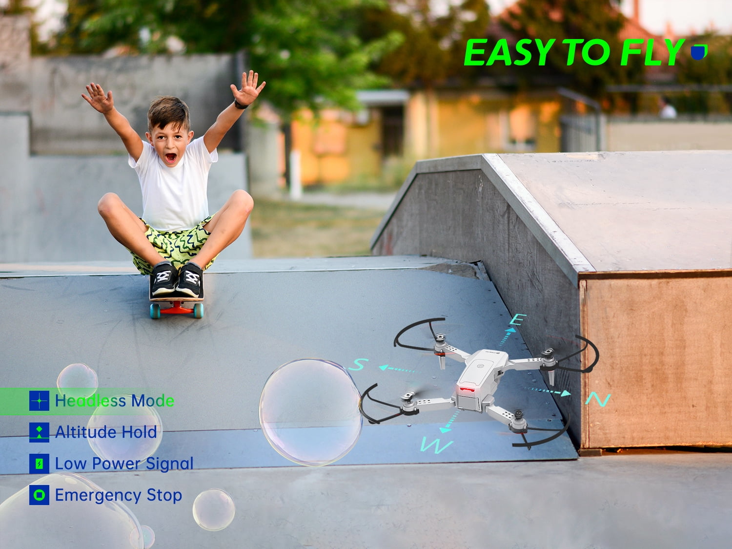 {HD Pictures & Videos and FPV Function} The mini foldable drone (RC Quadcopter) equipped with 1080P HD Camera, which captures high-quality video and clear aerial photos. You can watch a live video in your smart phone for beautiful scenery by Wi-Fi real-time transmission. {Intelligent Voice Control} Control your drone with simple voice commands like “take off”, “landing”, “left”, “right”, “forward”, “backward”, and gesture control allows you to pose to the camera to trigger phone taking and video recording. {Multiple Fun Flights} Dynalog DF100B is a versatile drone, can perform stunts like 360°flip, circle fly, and high-speed rotation, and you can also draw a path in your app interface, the drone will fly following the path accordingly, which is the newest technology. {Easy to Use} It has altitude hold mode, headless mode, throw flying function, one key start/landing/return, emergence stop and 3 speed mode adjustment, which is the best choice for kids and the beginners. {Foldable Design & Double Flight Time} Foldable & flexible blades make the drone small and portable; 2 modular batteries can support longer flight time for you and your family, which makes your flight more exciting and interesting.