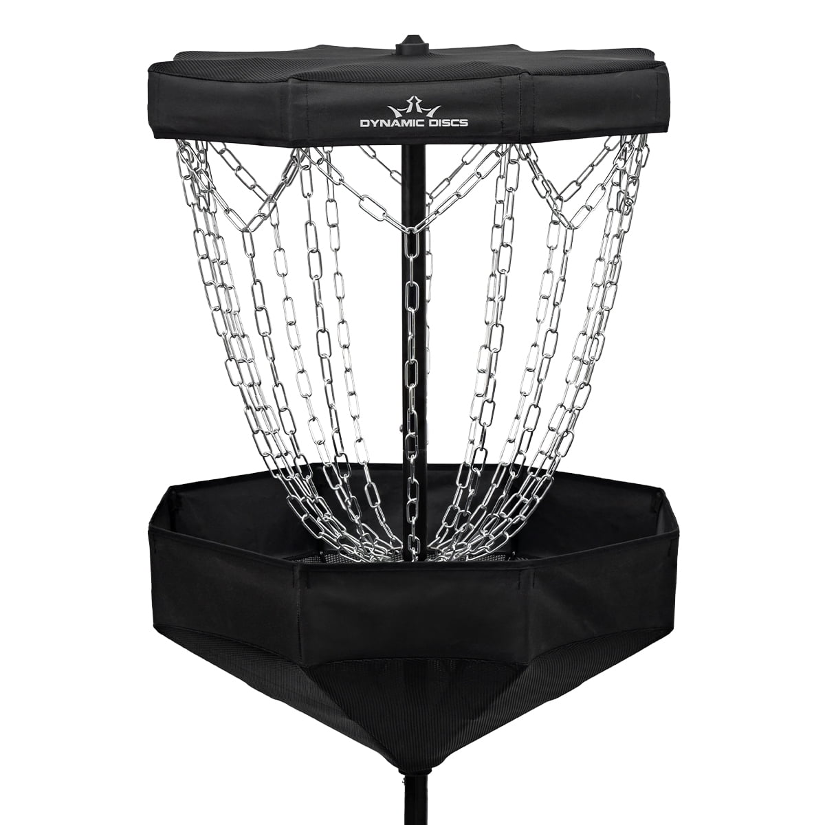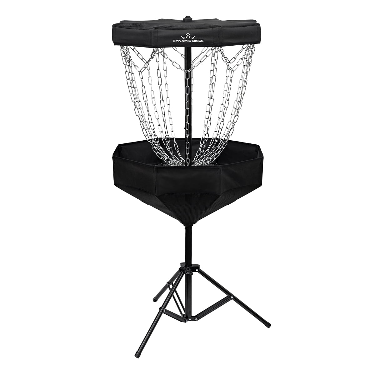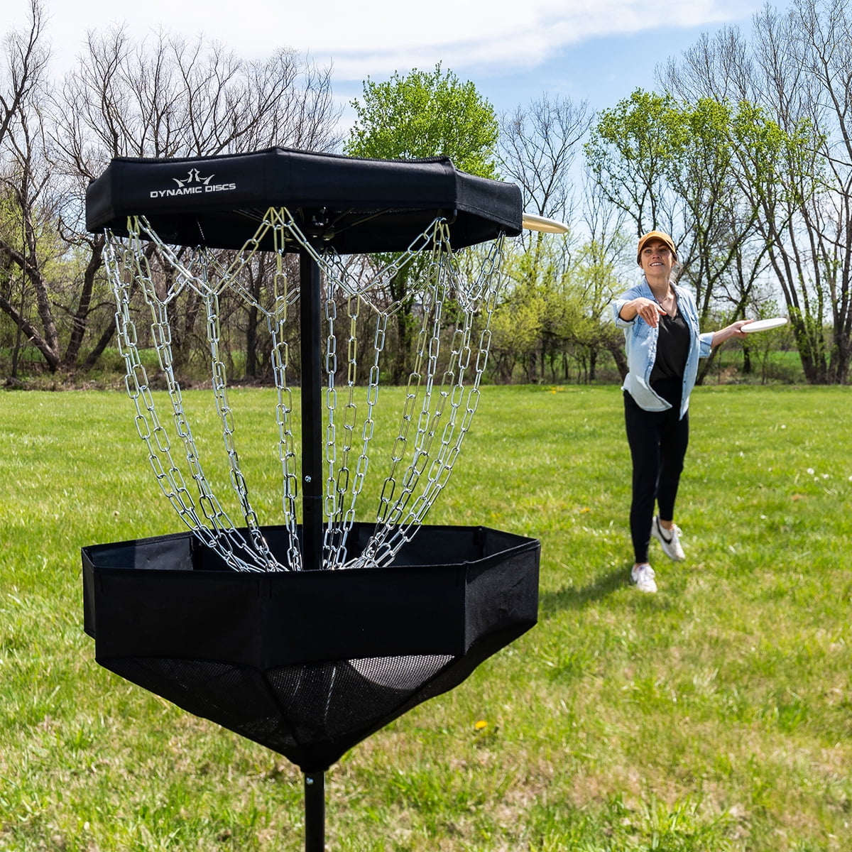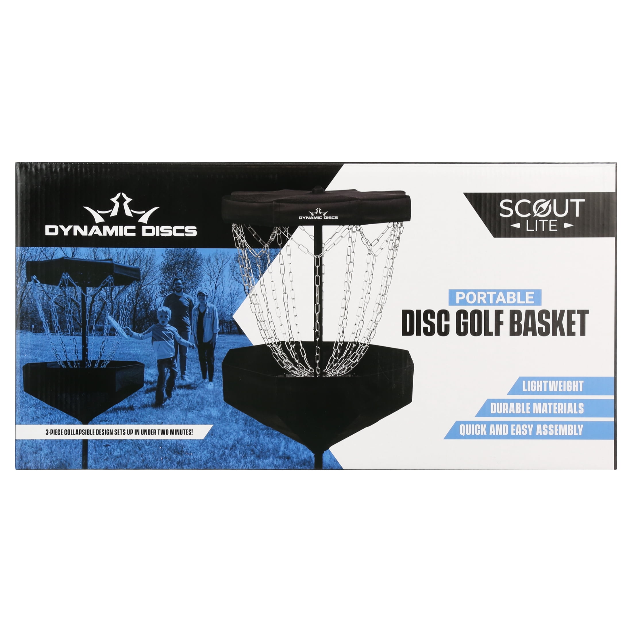 The Dynamic Discs Scout Disc Golf Basket is perfect for getting in a putting practice session anywhere you go! The tripod base and basket lock into place from a collapsed position for quick assembly, and disassembly is just as simple. This foldable disc golf target comes with a carrying bag so it can be easily stored wherever you go. It is also lightweight weighing 24 lbs so it can be easily moved from place to place without much effort. Sturdy construction and a sturdy base make it great for outdoor putting practice in most weather conditions. It is also perfect for indoor putting practice with a quick setup and cleanup process. 16 zinc-coated chains Canvas basket Collapsible tripod-style base Measures 55″ tall and 24″ wide assembled Measures 55″ tall and 12″ wide when not assembled Not designed for long-term outdoor use