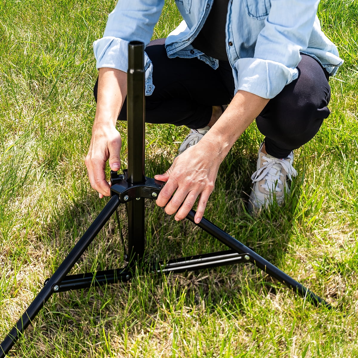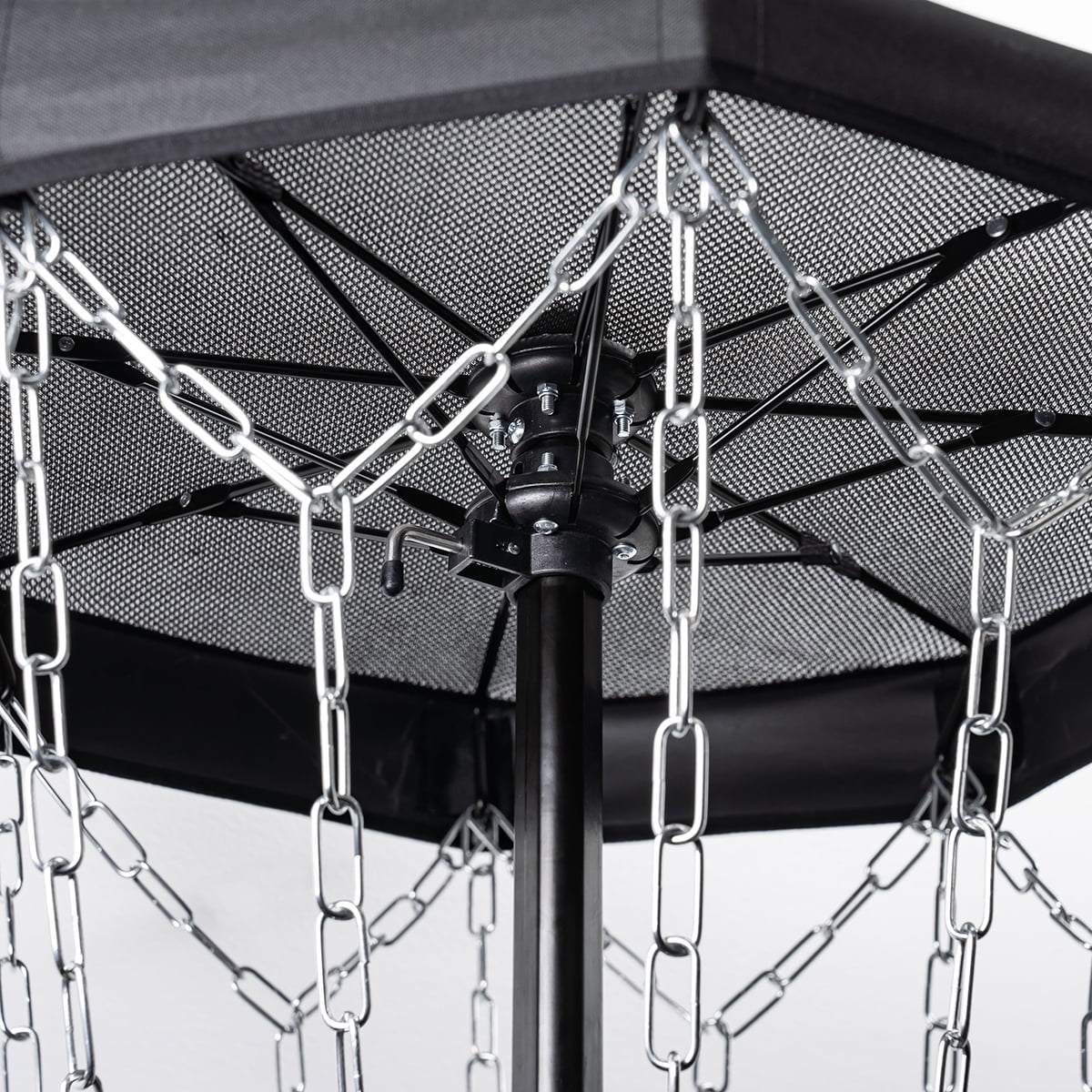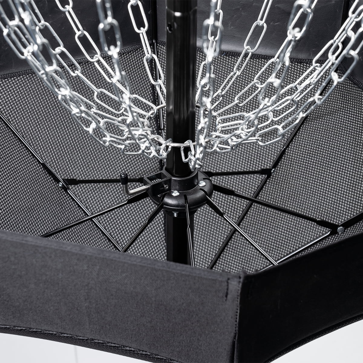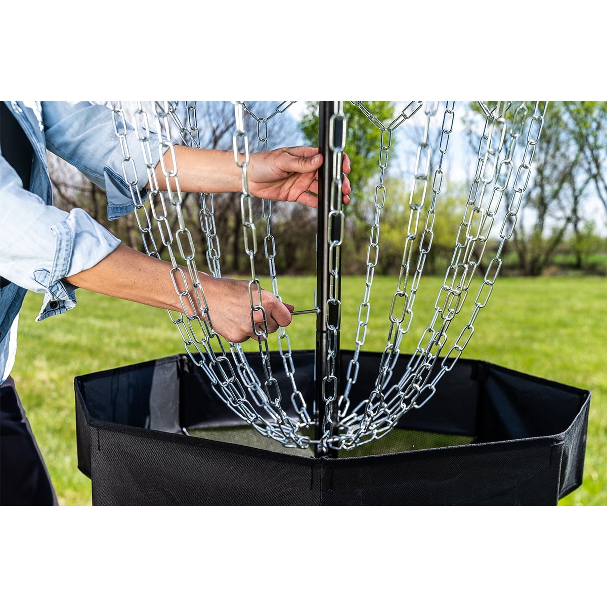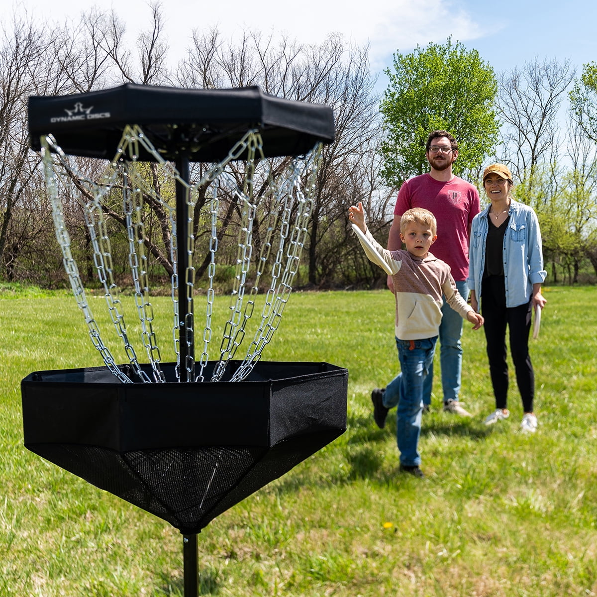 The Dynamic Discs Scout Disc Golf Basket is perfect for getting in a putting practice session anywhere you go! The tripod base and basket lock into place from a collapsed position for quick assembly, and disassembly is just as simple. This foldable disc golf target comes with a carrying bag so it can be easily stored wherever you go. It is also lightweight weighing 24 lbs so it can be easily moved from place to place without much effort. Sturdy construction and a sturdy base make it great for outdoor putting practice in most weather conditions. It is also perfect for indoor putting practice with a quick setup and cleanup process. 16 zinc-coated chains Canvas basket Collapsible tripod-style base Measures 55″ tall and 24″ wide assembled Measures 55″ tall and 12″ wide when not assembled Not designed for long-term outdoor use