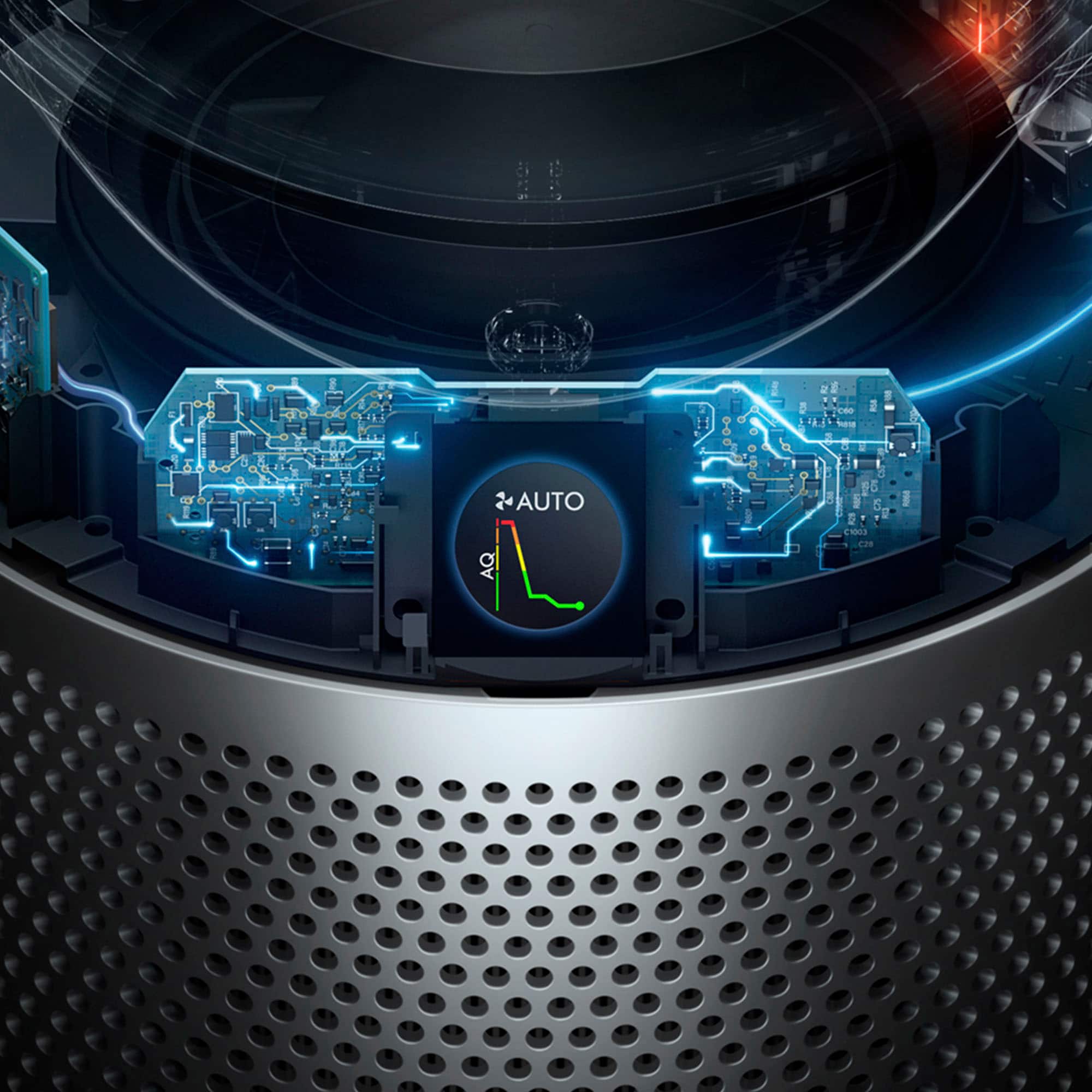 ¹Tested per Dyson internal test standards for whole-room air projection (TM-005021) and purification coverage (TM-003711)