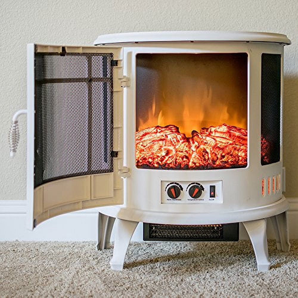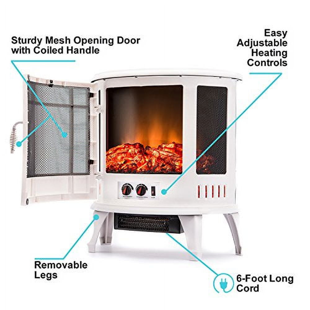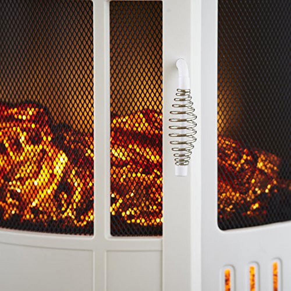 DESIGN | The classic design highlights the realistic wood burning effect and dancing flames. This hearth is lightweight, and stays cool-to-the-touch. Transporting from room-to-room is easy. This is a fashionable heating solution for any space. Perfect for your guest room, basement, garage, apartment, office, or motorhome/RV. Safe to set on all flooring types. FEATURES | A quiet, fan-forced heater has easy-to-adjust settings for even heat distribution. Enjoy the warm glow of the flames all year with the no-heat. Safety protection includes automatic shut-off to prevent overheating. Unit is odorless and smokeless. Safe for the elderly, kids, and pets. DECORATION | Dress your firebox up to reflect your personal style. All exterior faces stay cool, so it is a great way to display your seasonal décor and home accessories. ENERGY SAVINGS | This unit can reduce your electric bill by using over 90% less energy than gas. It heats up quickly, and has two heat setting options so there is no need to pay the high cost of heating your entire home. SPECIFICATIONS | Replaceable 40-watt bulbs (2). This 1500-watt unit comes with a 6-ft. long cord which plugs into any standard household outlet. Provides supplemental heat for up to 400 sq. ft. Opening mesh door. 5115 BTUs. Quick and easy assembly will get you warm and comfortable in minutes. 24.7″ (H) x 23.6″ (W) x 11.2″