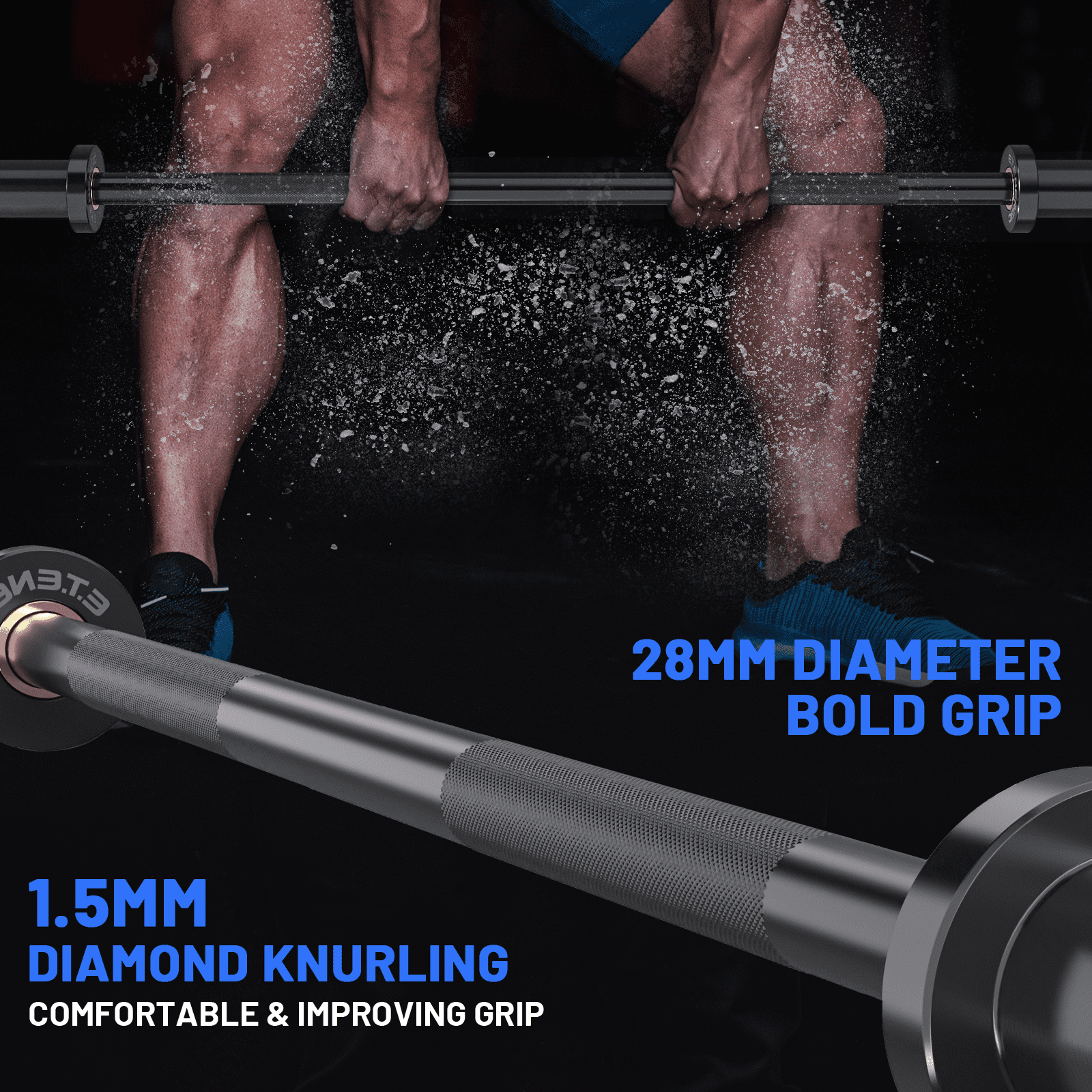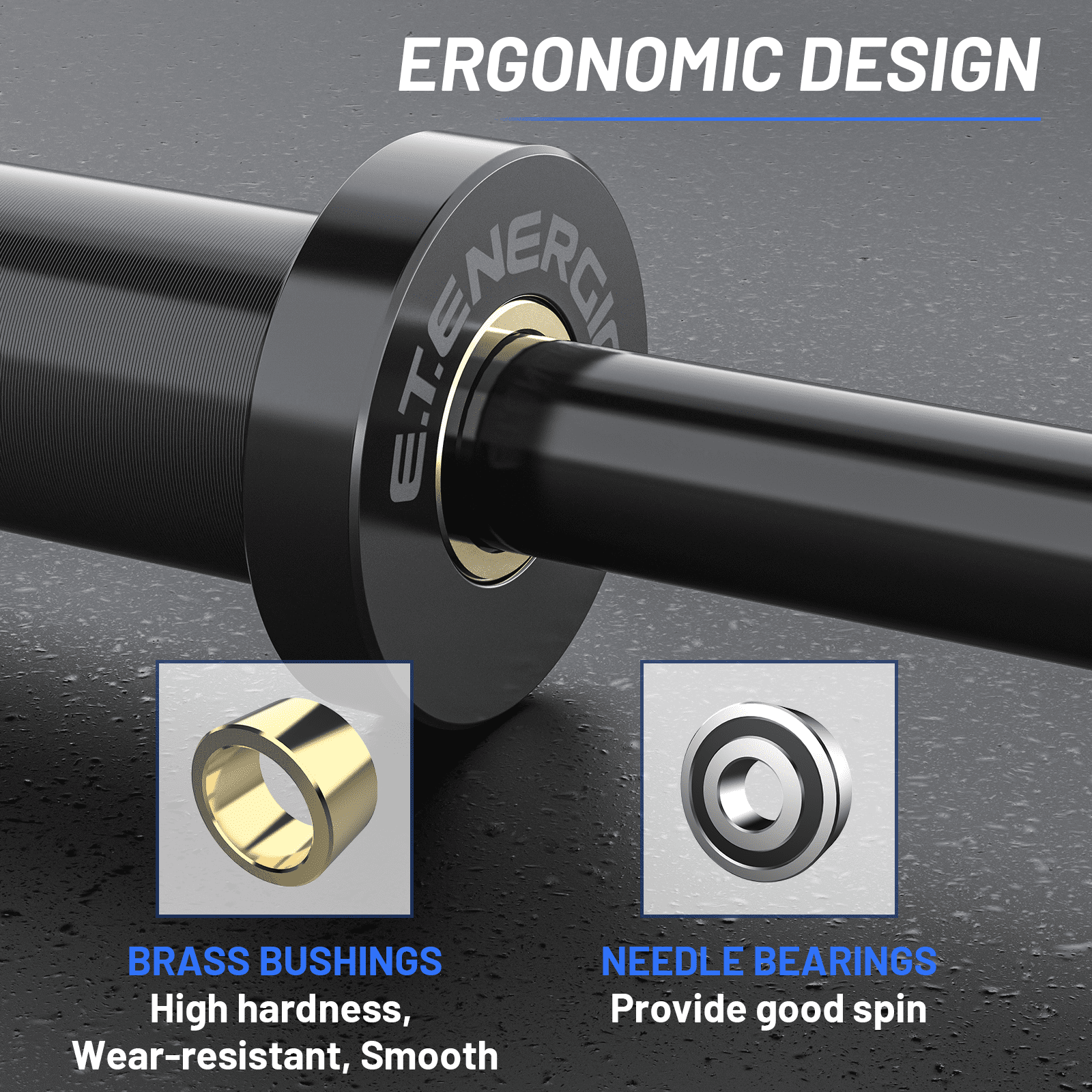 MATERIAL PREMIUM QUALITY: E.T.ETENERGIC bar is made of high-quality solid steel. The maximum load capacity can reach up to 500 lbs. Pure black electroplating matte coating to enhance the texture. PRODUCT MATCH: This barbell bar fits standard 2-inch weight plates. EXCELLENT WORKMANSHIP: Olympic bar bushings are friction welded, which is stronger than ordinary welded bushings. The barbell usually consists of bushings and bearings to provide moderate rotation and high-strength support, on the other hand, the bearings are designed to rotate fast, in line with the need for gripping and cleaning. SAFETY PERFORMANCE: The grip shaft uses diamond knurling to increase friction and improve the grip experience. The increased knurling design also effectively reduces wrist and forearm tension, increasing the safety of movement and ensuring comfort. PERFECT TRAINING: The barbell bar can meet all your training needs. This allows you to train your muscles for endurance, burn fat into toned lines, and enhance muscle strength; it also slows muscle aging and improves body coordination.